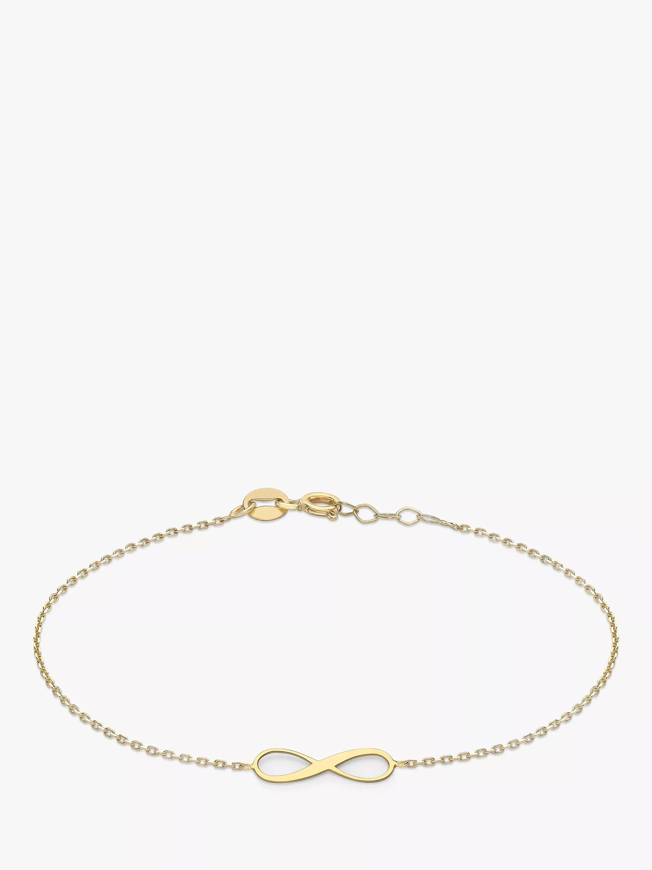 With a very fine chain and a recognisable infinity symbol, the piece can be worn either on its own or with other chain bracelets for bolder look. It fastens with a secure lobster clasp.