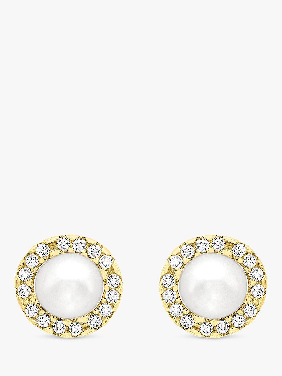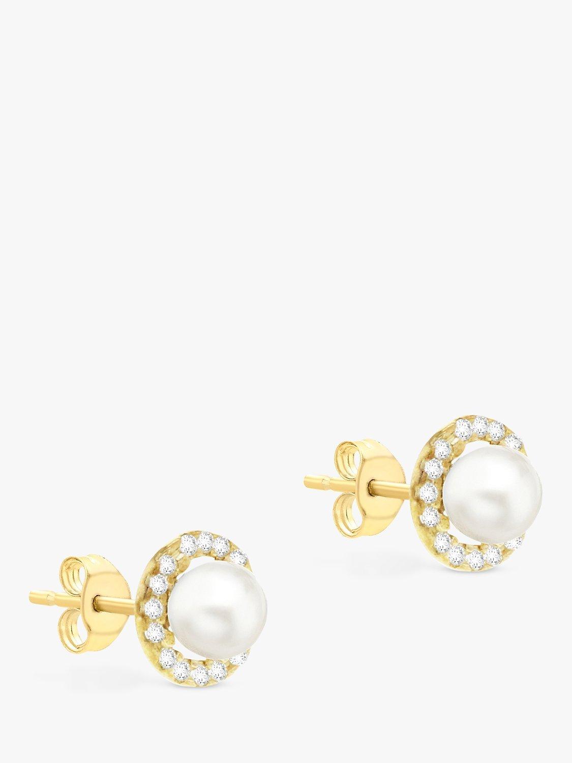 The perfect wear-forever studs, this pair of earrings from IBB sparkles with lustrous freshwater pearl and cubic zirconia and.