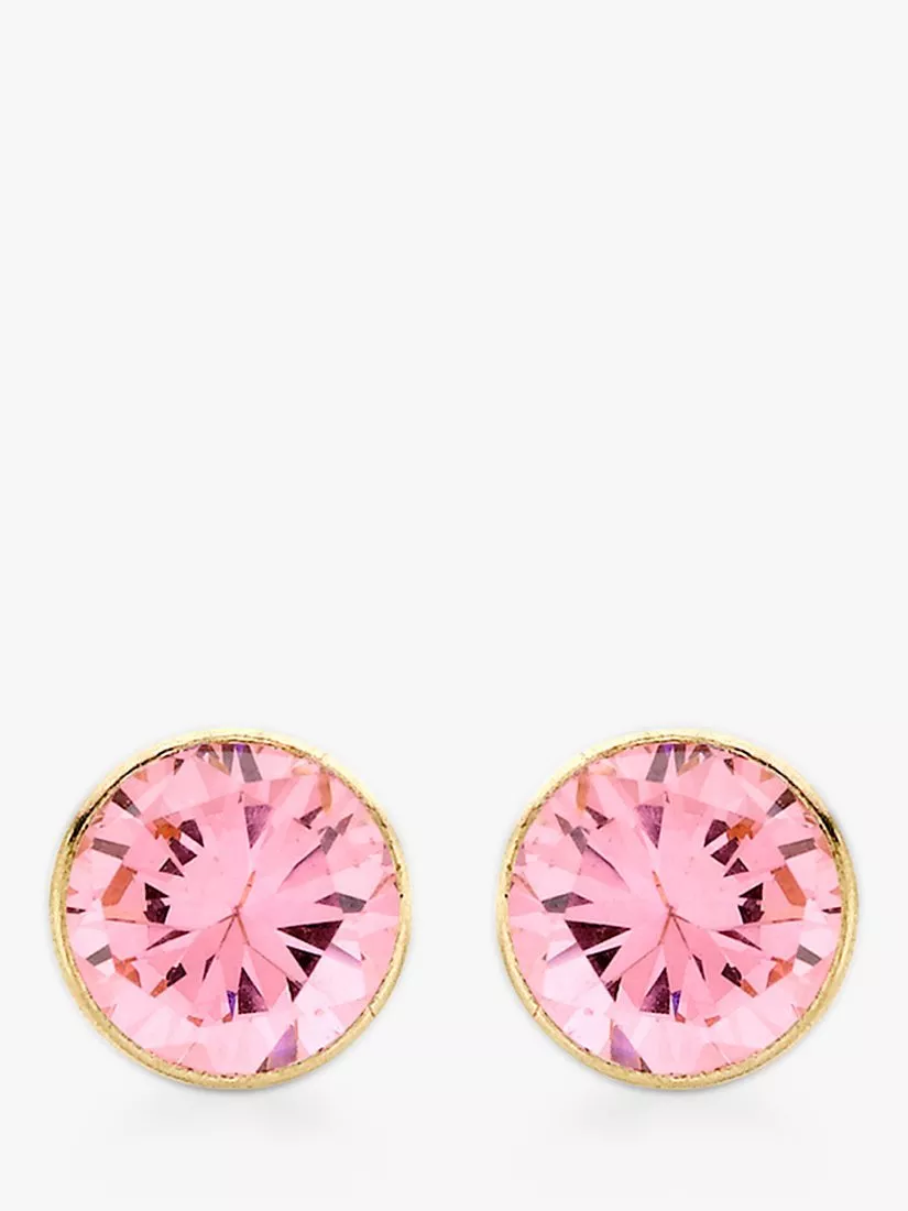 These beautiful earrings have a classic round frame and a feminine cubic zirconia stone in a pink tone.