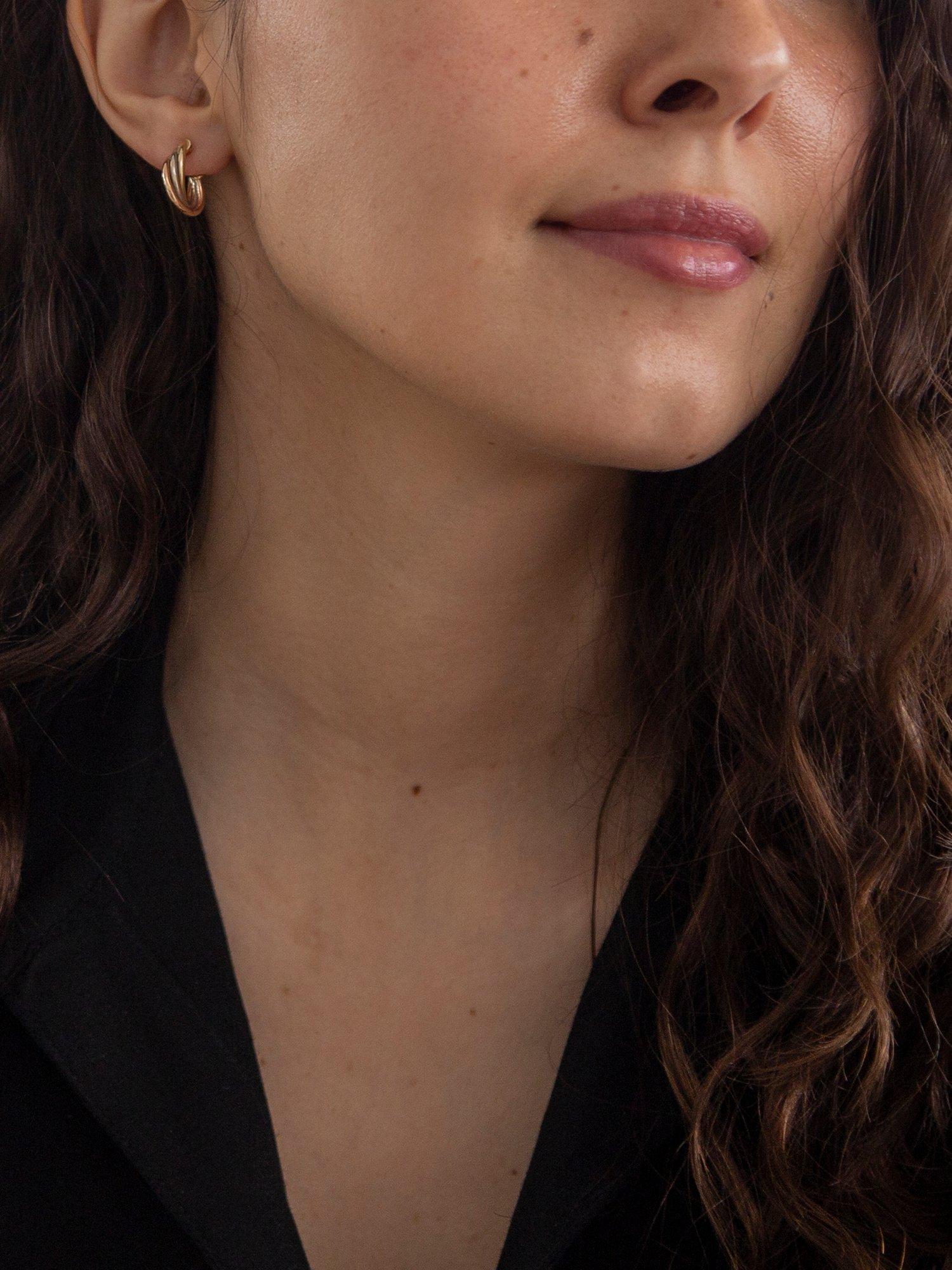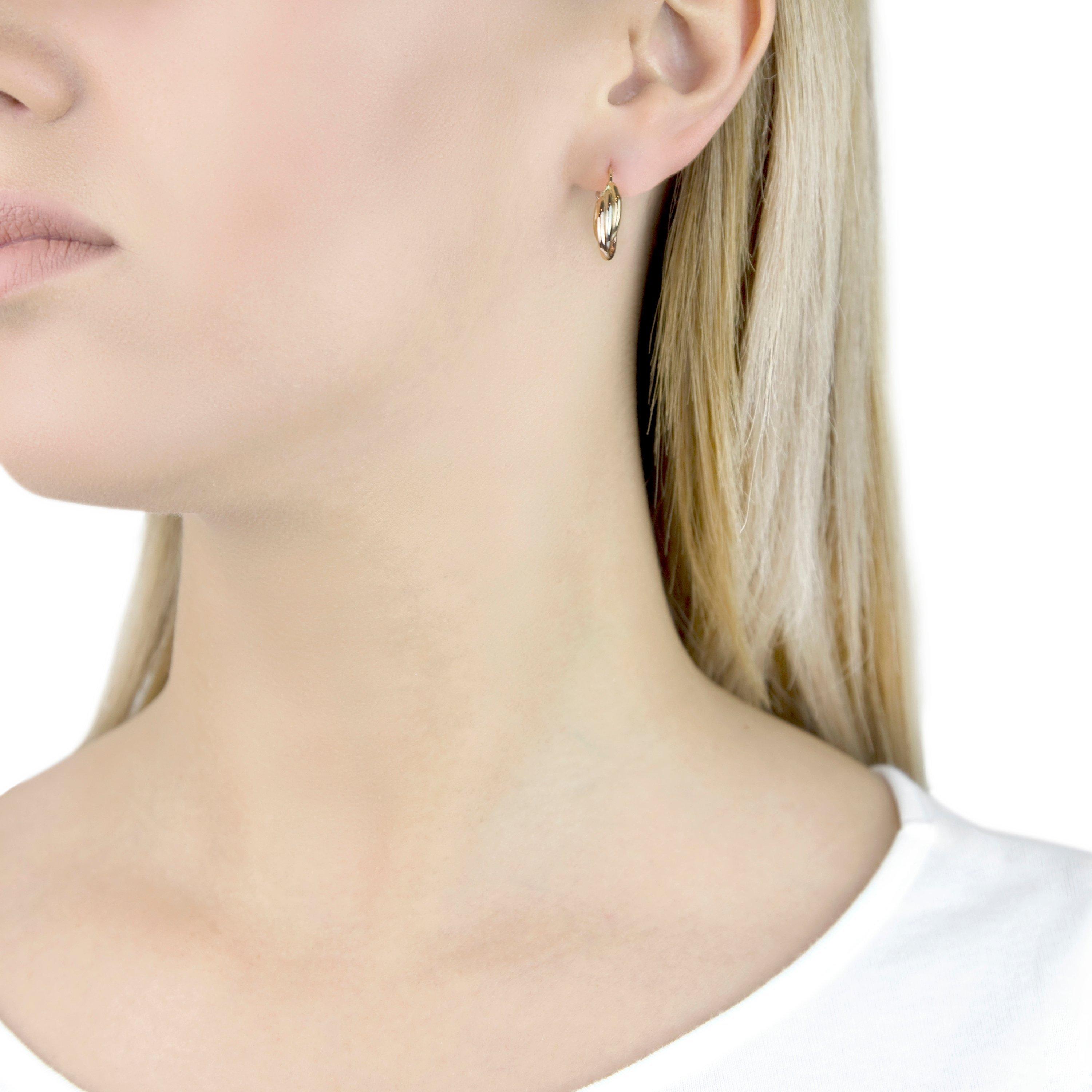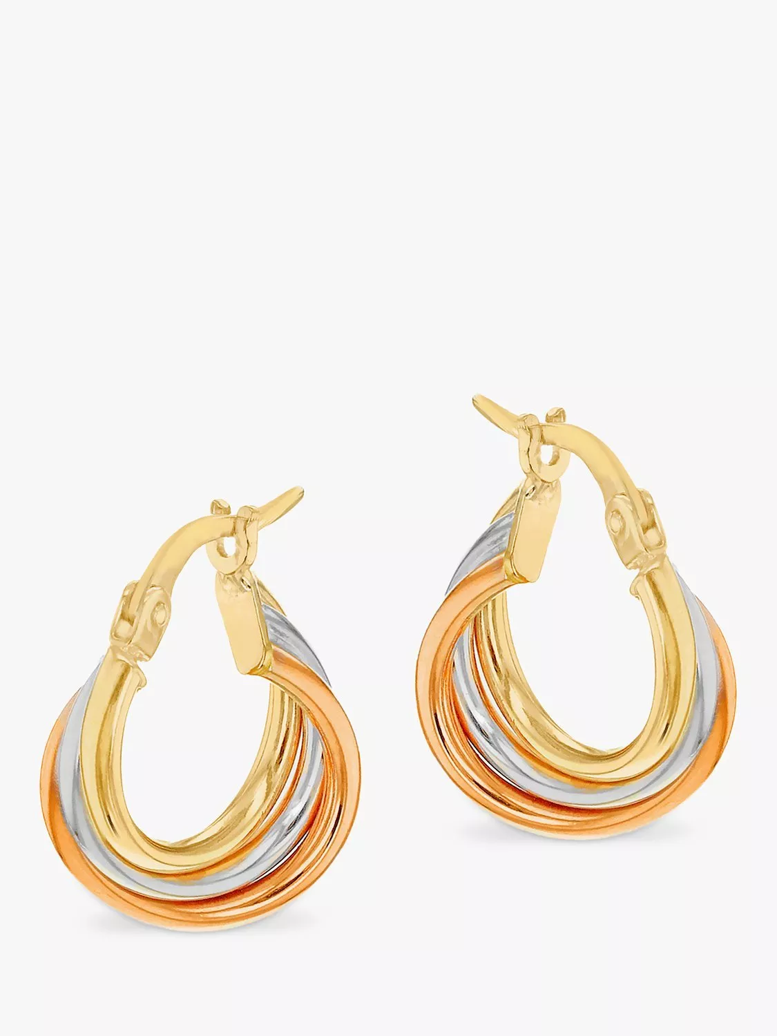 Russian style hoop earrings from John Lewis crafted from 3 tones of 9ct gold into a striking twisted hoop design with a hinged post.