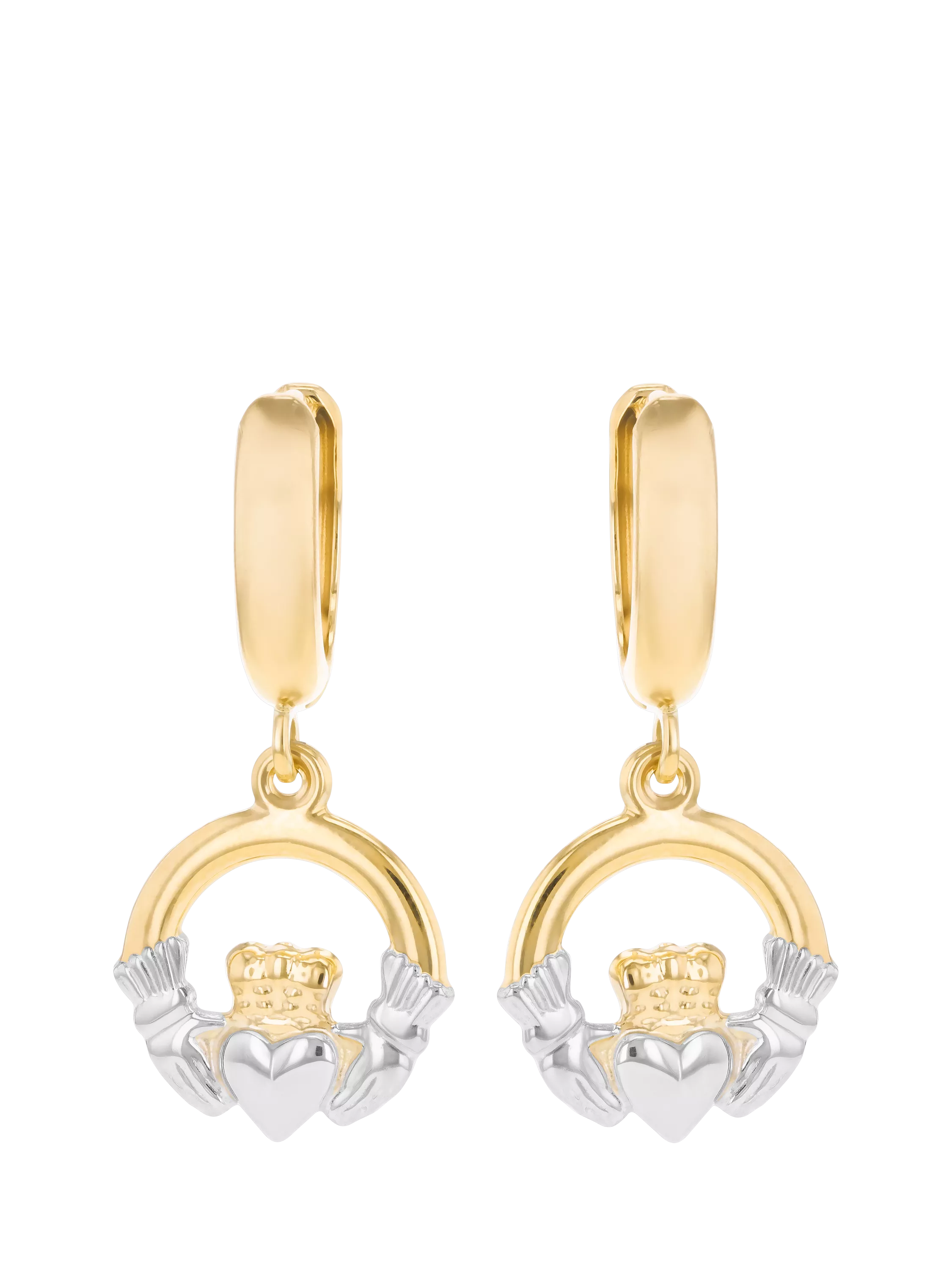 IBB9ct Hoop Claddagh Drop Earrings, Yellow Gold/ Multi
