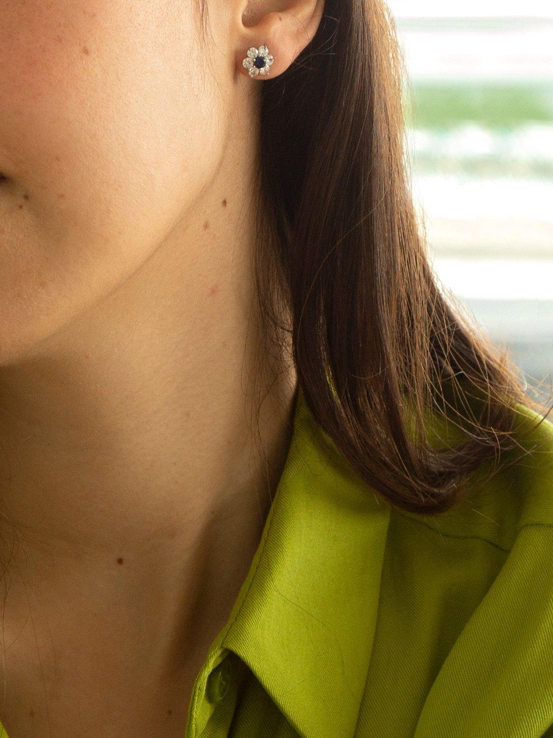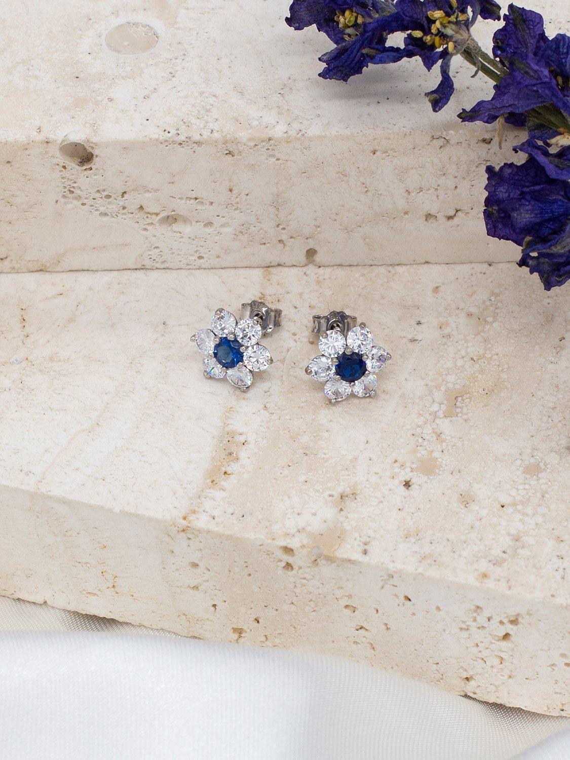 A beautiful pair of floral cubic zirconia stone stud earrings from IBB.