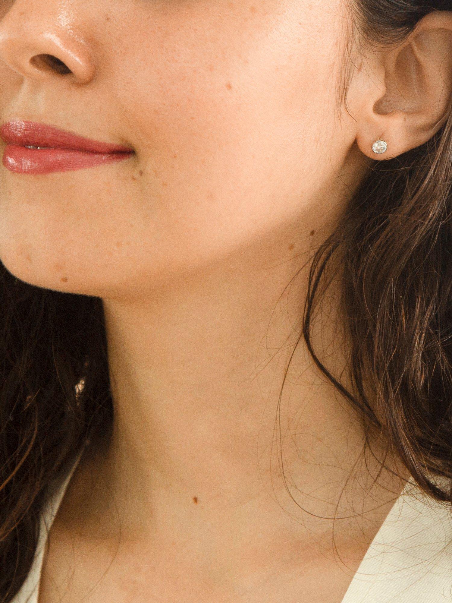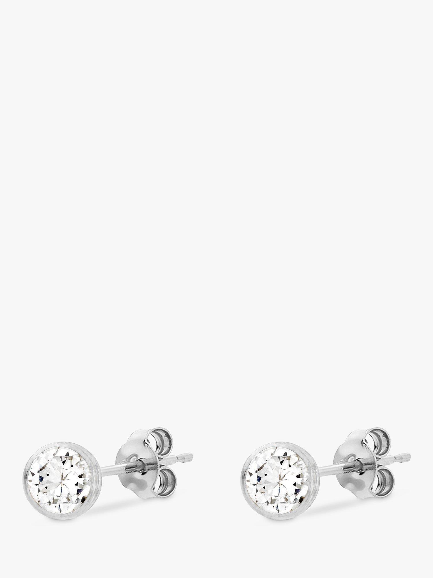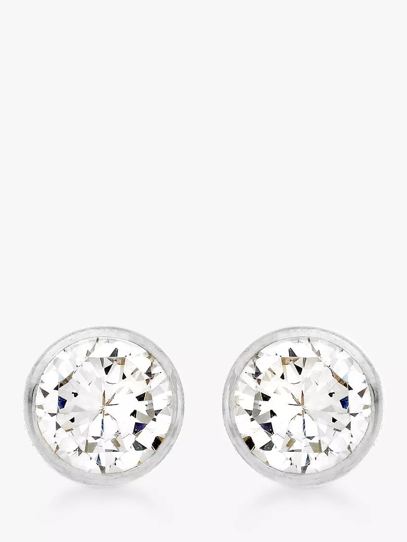 These chic earrings have a classic round white gold frame holding a sparkling cubic zirconia stone.