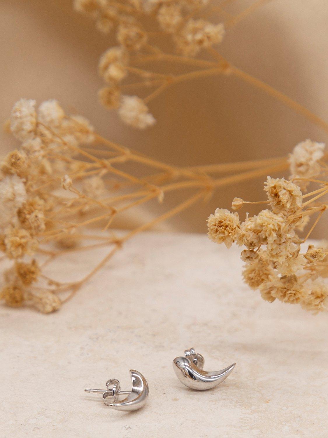 These stud earrings from IBB have been crafted from 9ct white gold and fashioned into a curving surface.