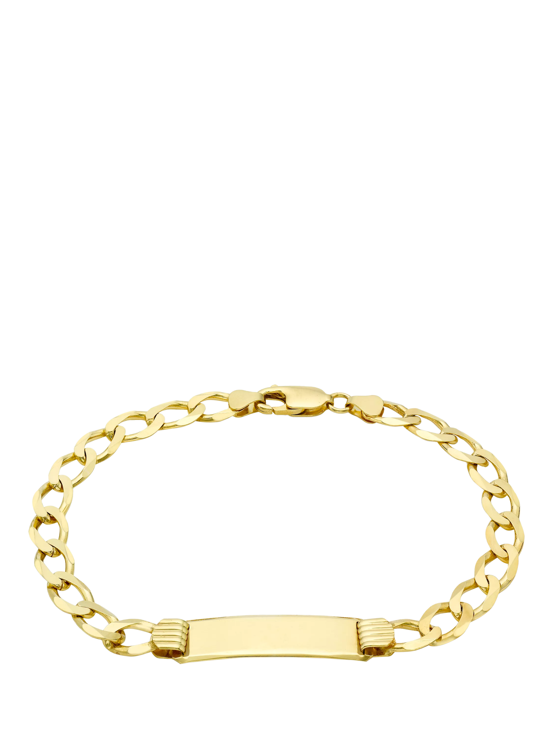 Opt for a classic look with the 9ct Yellow Gold Flat Diamond Cut Curb ID Bracelet, secured with a lobster clasp.