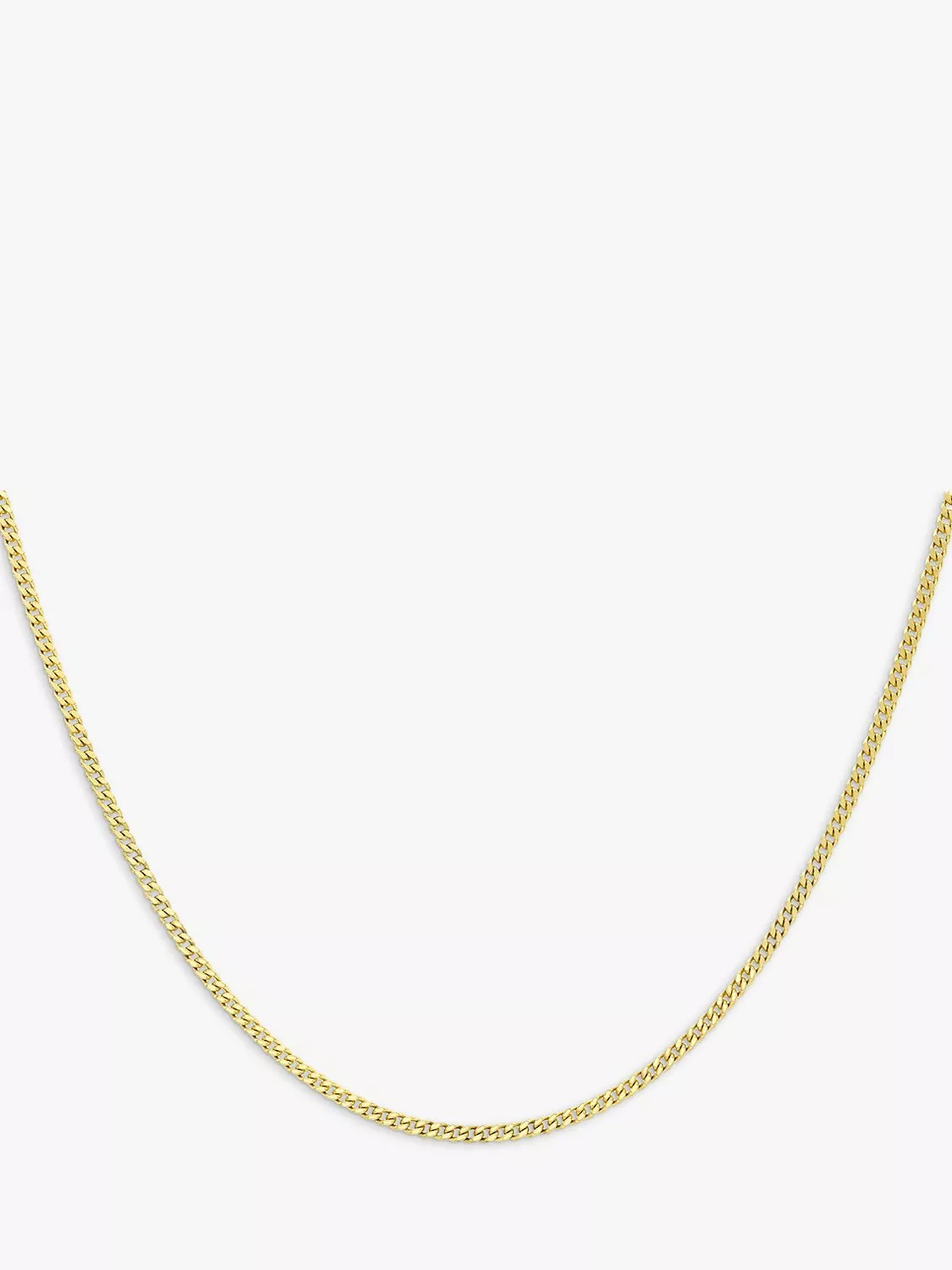 Made from 9ct yellow gold, this chain necklace has curb links for a timeless look. The style looks great on its own but can also be worn as part of a layered look. It is secured with a spring ring clasp and measures 18 inches in length.