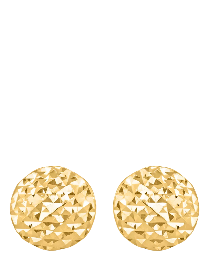 The button stud earrings are made from 9ct yellow gold and have been elevated with a diamond-cut pyramid pattern for textured appeal. Secured with post fittings, they are for pierced ears only.