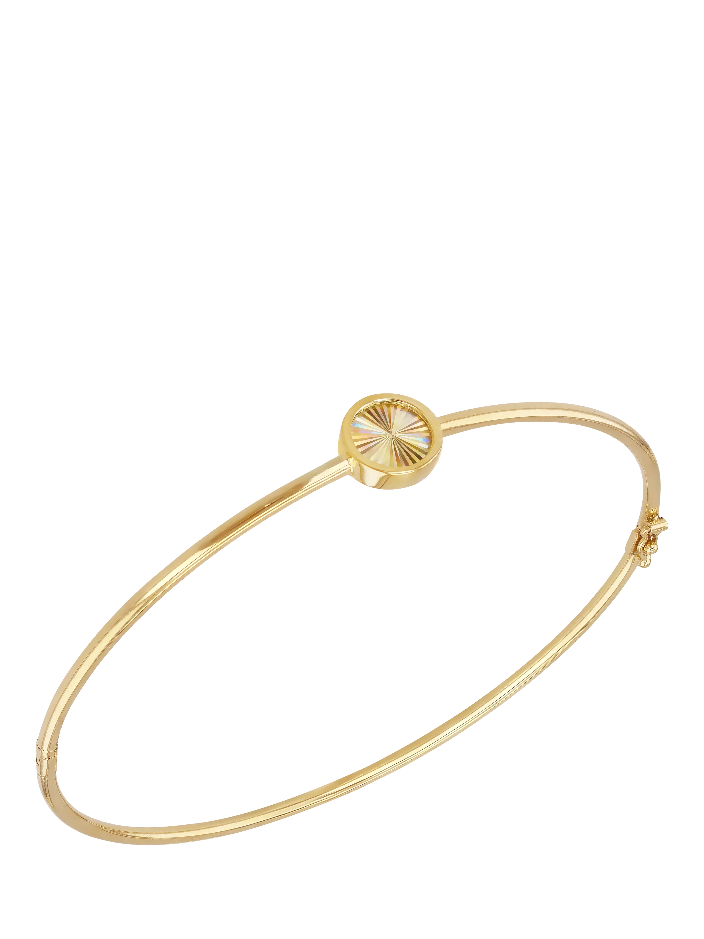 Slipping on anywhere from your wrist to your upper arm, this 9ct gold bangle from IBB features a rainbow circle charm and a classic clasp.