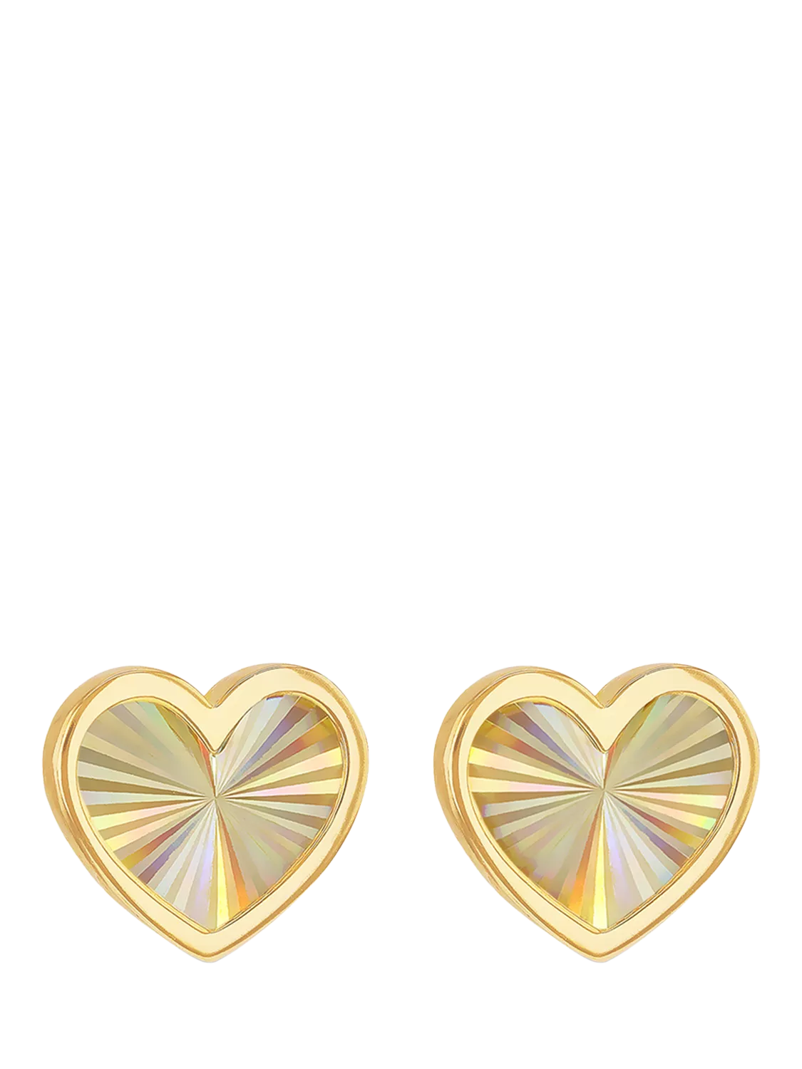 A pair of 9ct gold earrings, offering subtle shine and everyday comfort in a rainbow heart stud. Suitable for pierced ears only.