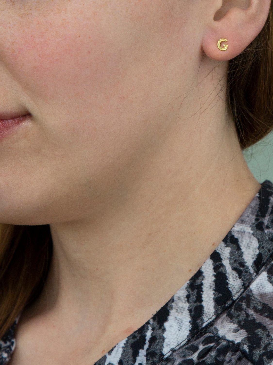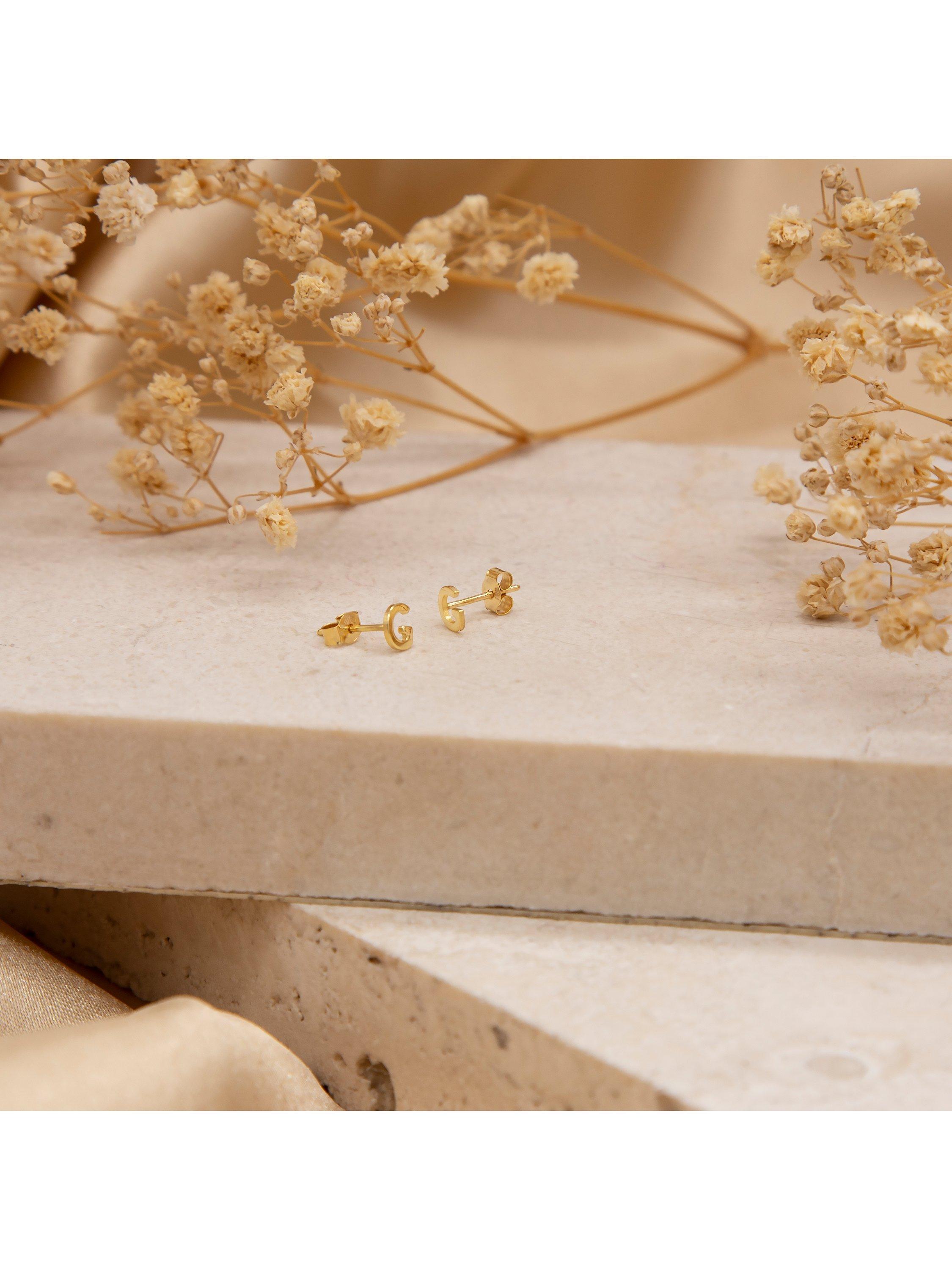 Crafted from 9ct solid yellow gold, these stud earrings feature a polished finish and an initial letter for a personalised touch. Suitable for pierced ears only.