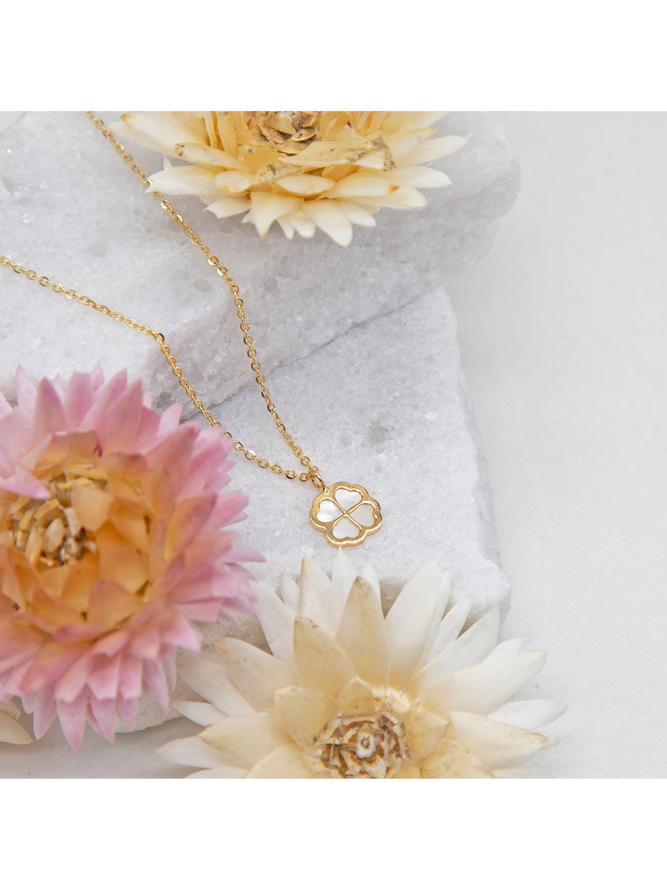 Set in 9ct gold, this clover pendant neckline by IBB brings iridescent Mother of Pearl centre stage. Designed for you to make every outfit a reflection of your unique style and individuality, it also benefits from a classic lobster claw clasp for a secure fit.