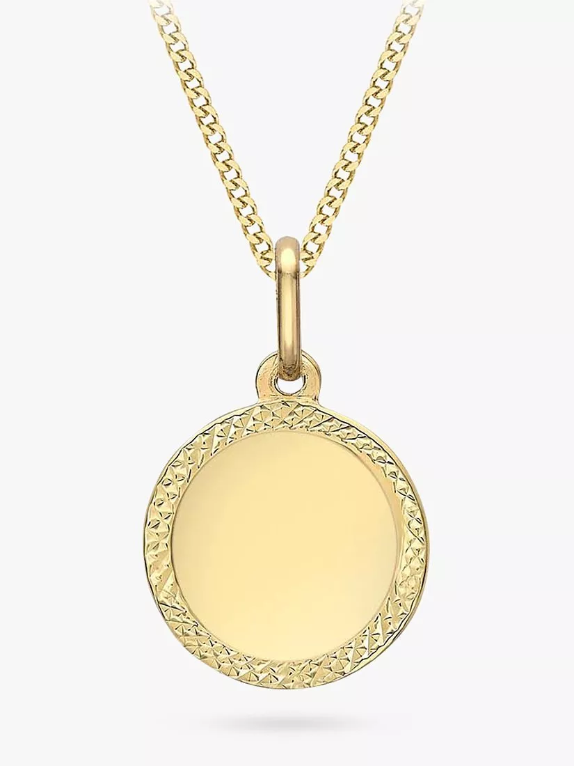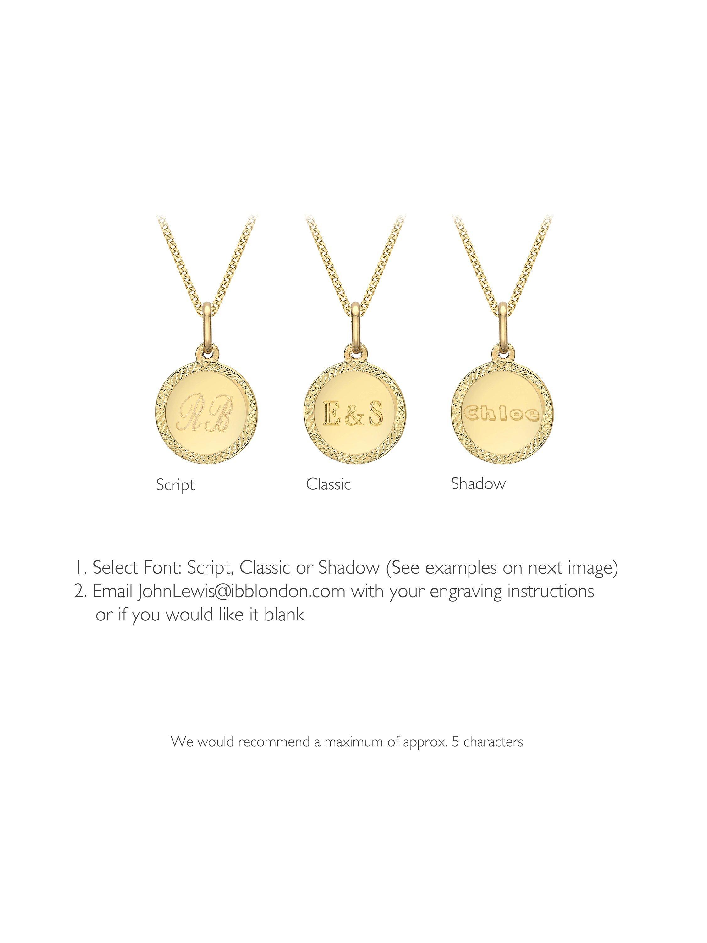 A small, simply designed disc hangs from this adjustable pendant necklace from IBB, made from solid 9ct yellow gold. Add a personalised name, initials or symbol and it's a perfect way to show someone how much you care.