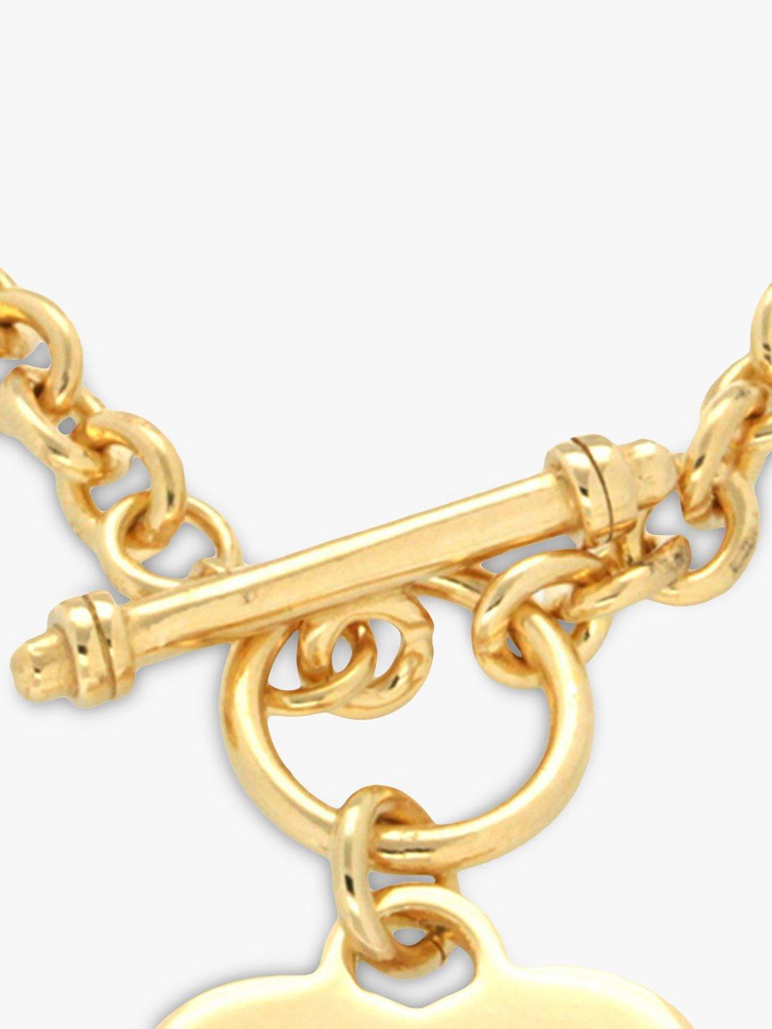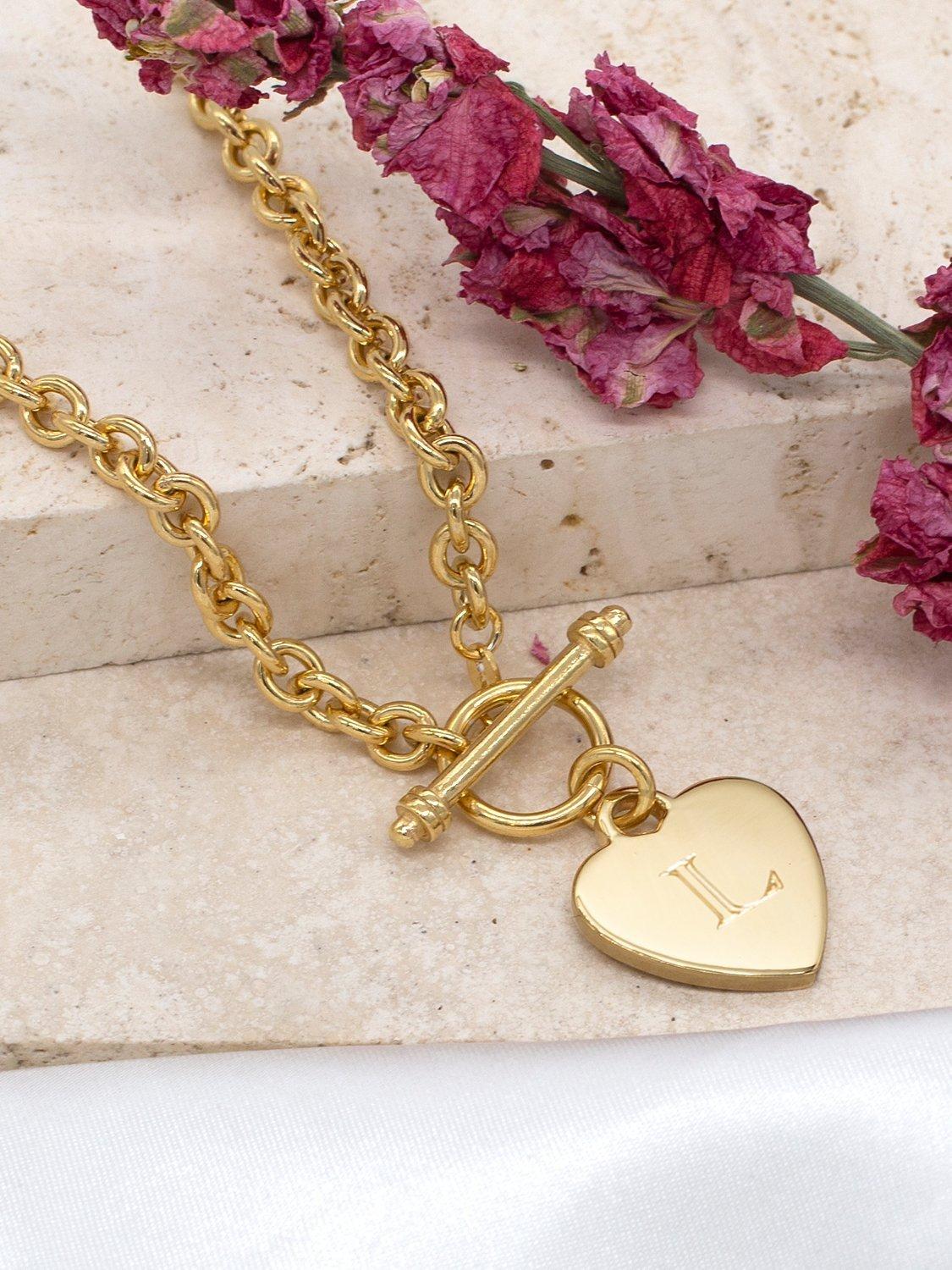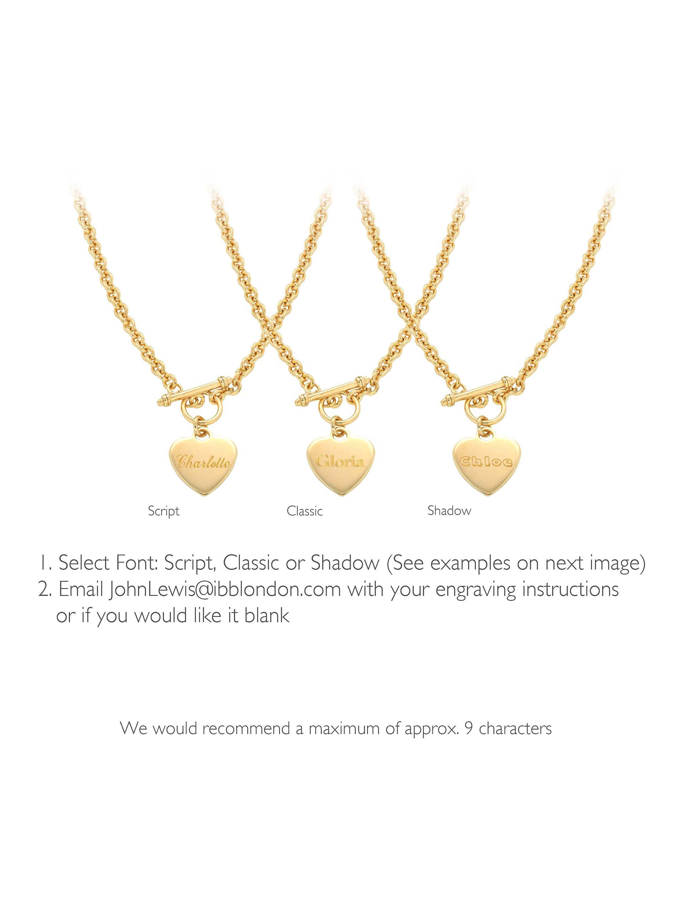 Made from plated solid sterling silver, this pretty linked chain is secured with a toggle clasp and features a cute, engravable heart charm. The pendant can carry a personal message of up to 7 characters in a choice of fonts.