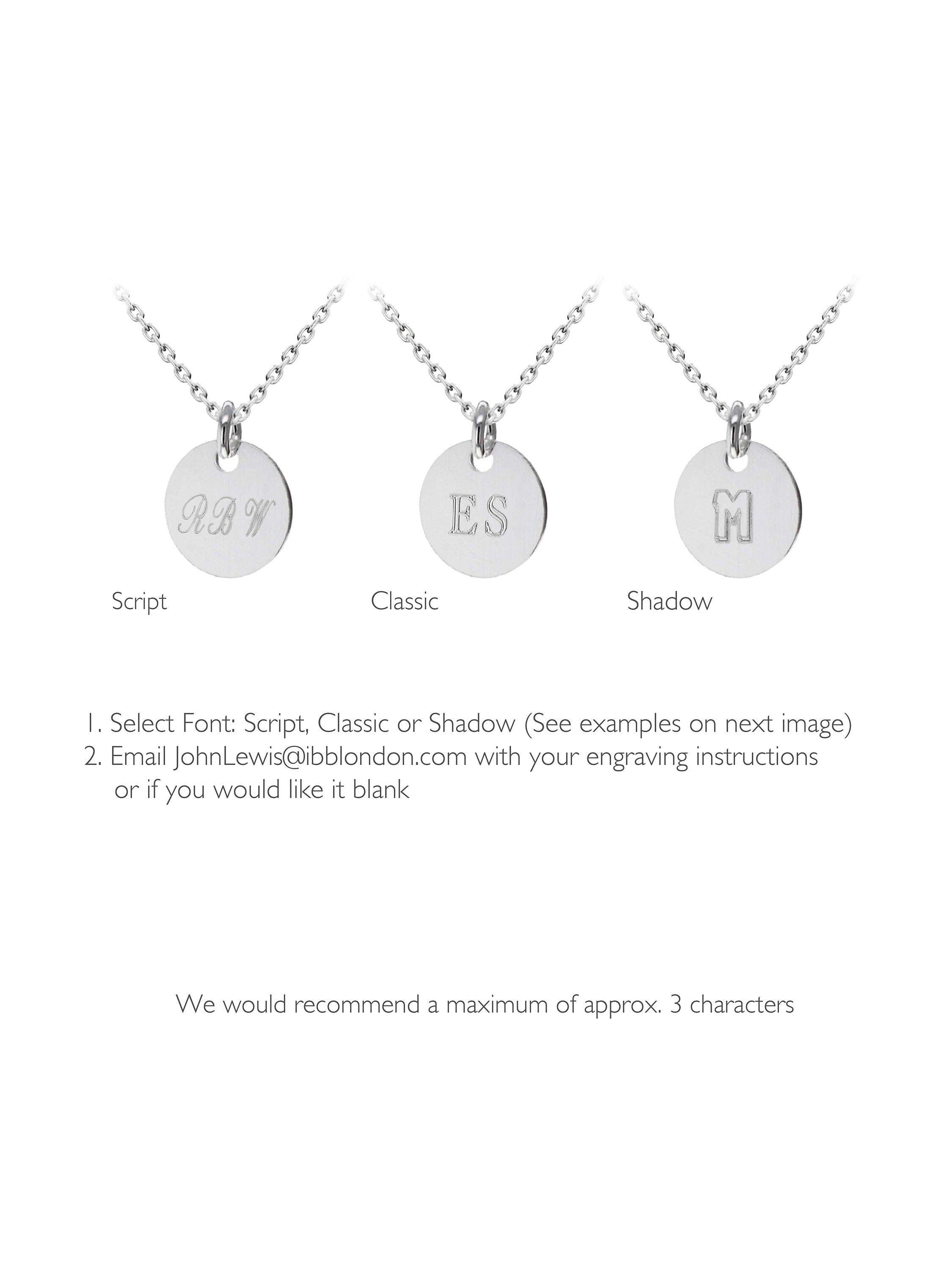 Show someone special how much you care with this personalised pendant necklace from IBB. Solid sterling silver is shaped into a small disc that you can personalise with initials in a choice of three fonts.
