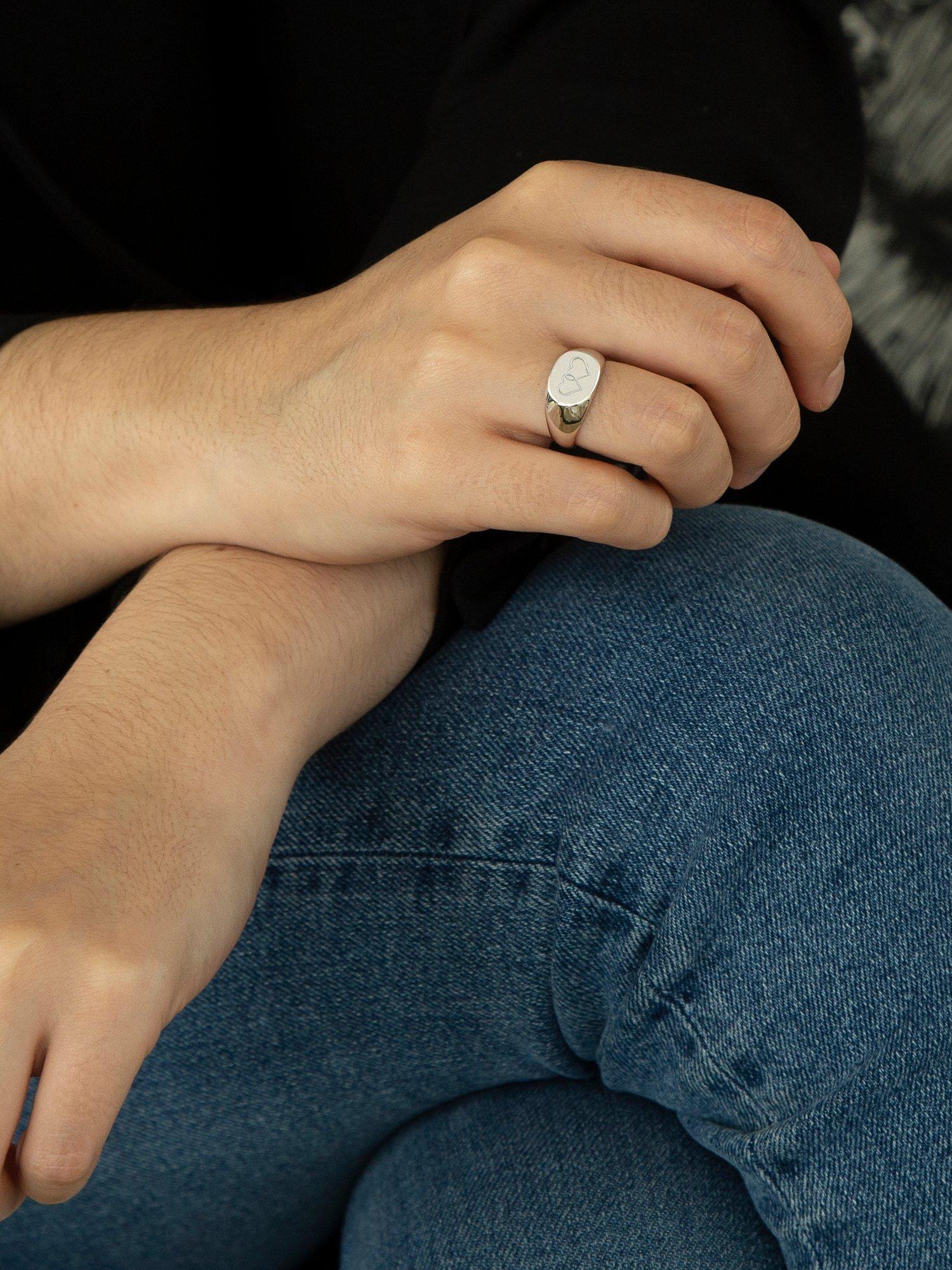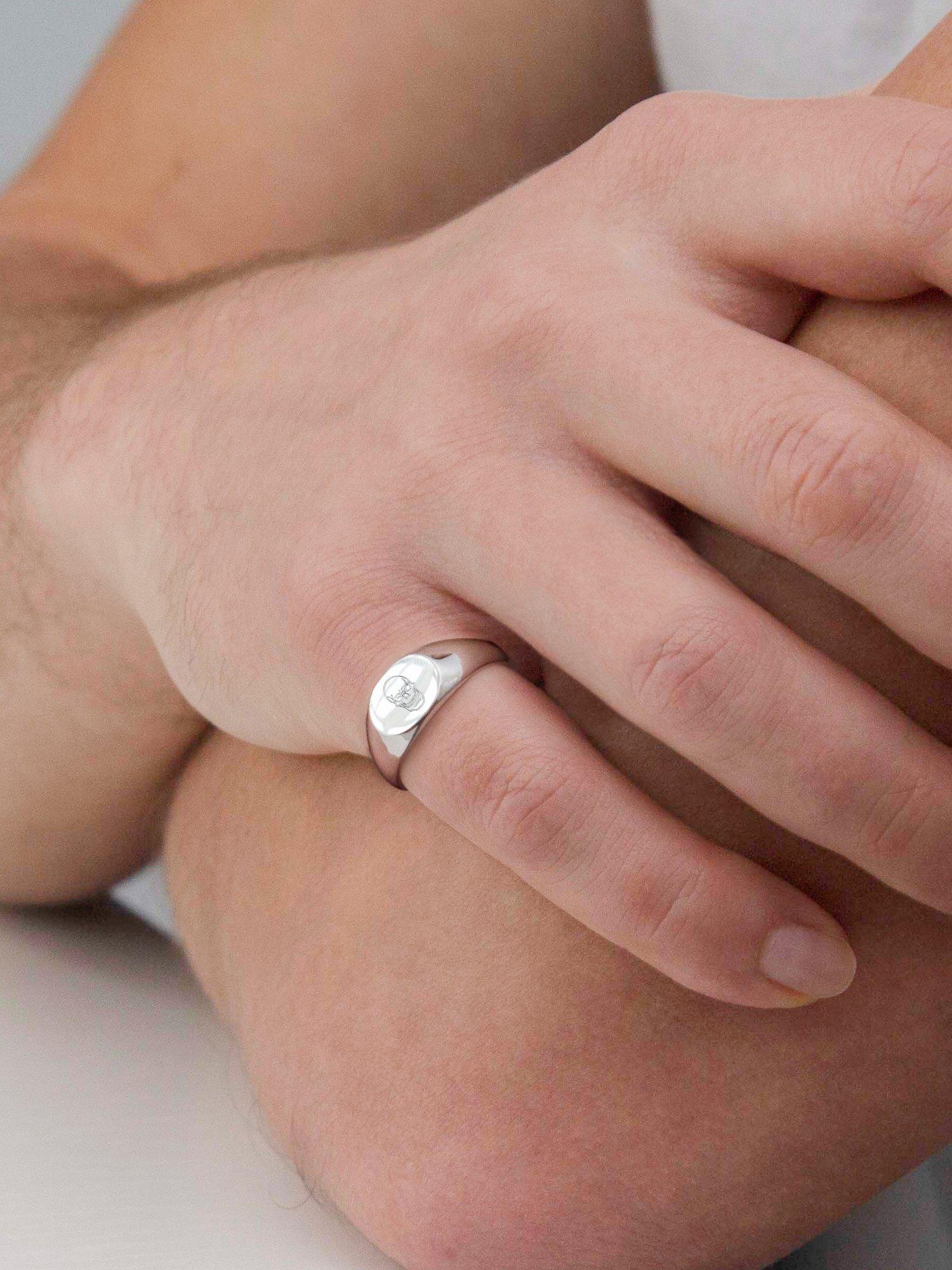 In solid silver, the piece comes in an oval shape. The ring can be engraved with up to 6 characters, including letters in a choice of styles or symbols.