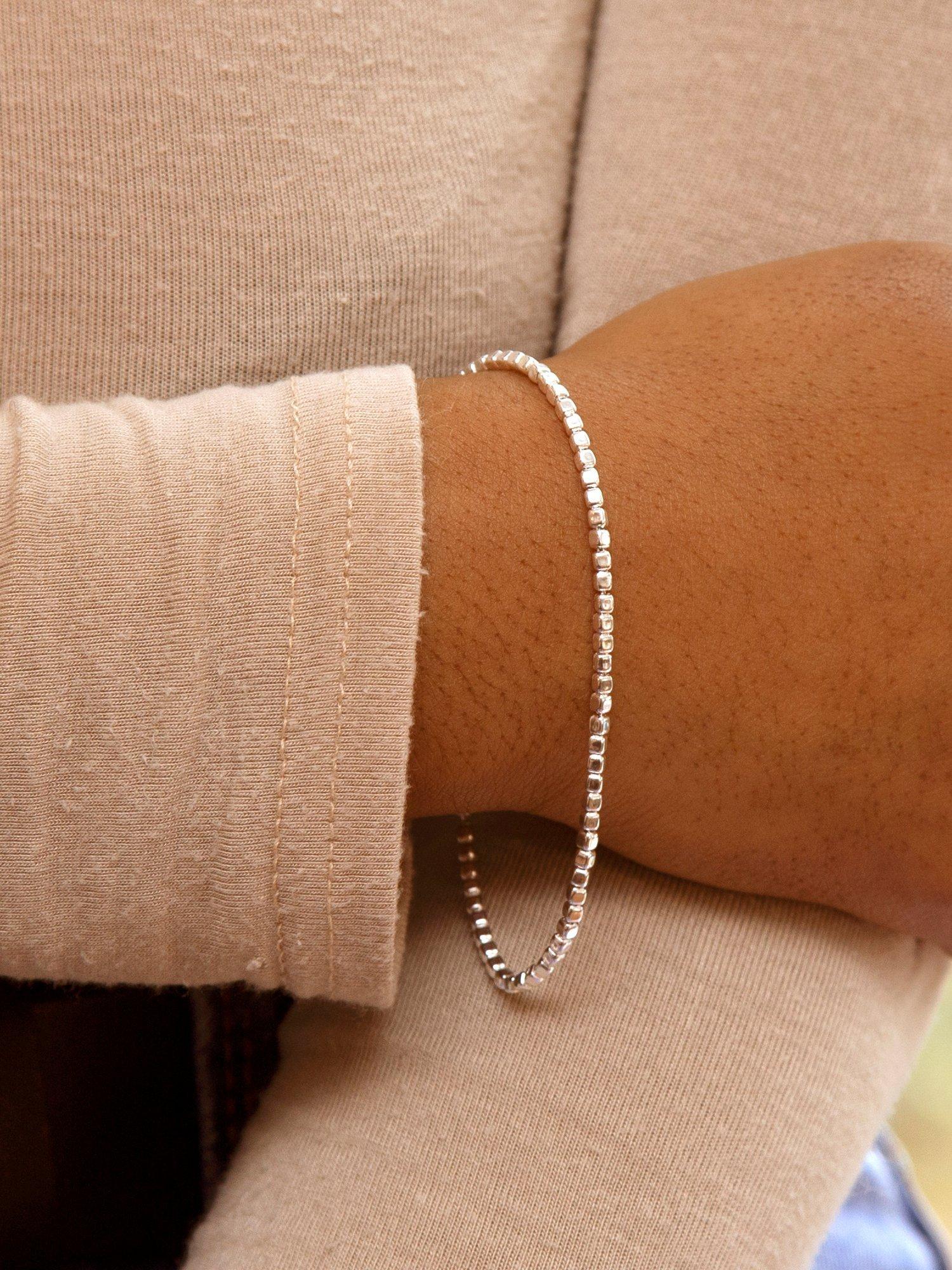 This IBB square bead bracelet offers you a secure fit with its lobster claw fastening and a sleek look in sterling silver. Designed for daily comfort and easy style.