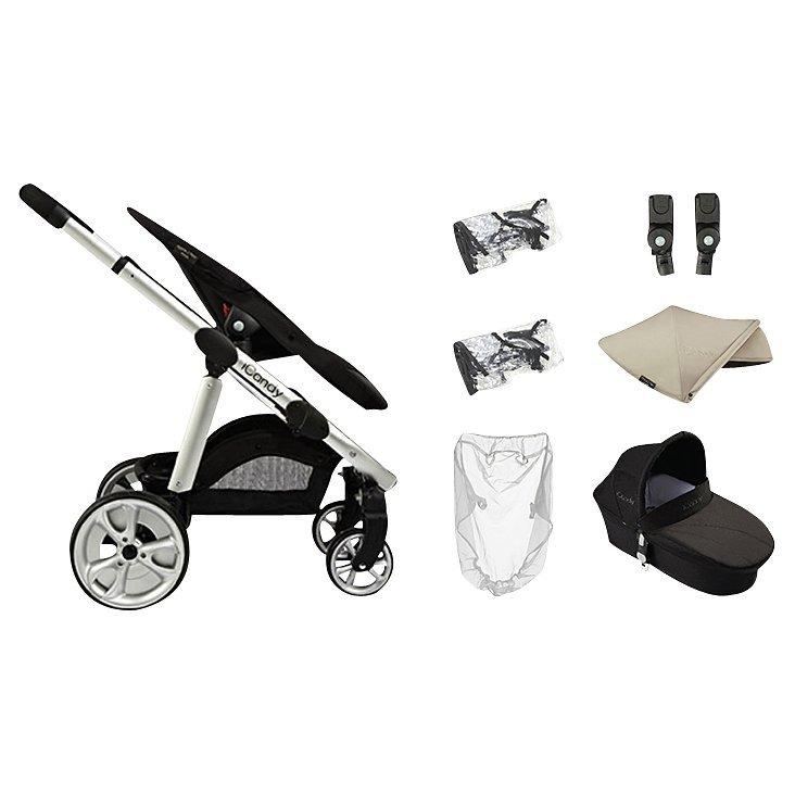 The iCandy anniversary package for the Apple 2 pushchair, includes the Apple 2 Pear pushchair, carrycot, flavour pack, car seat adaptors, 2 mosquito nets and 2 raincovers.