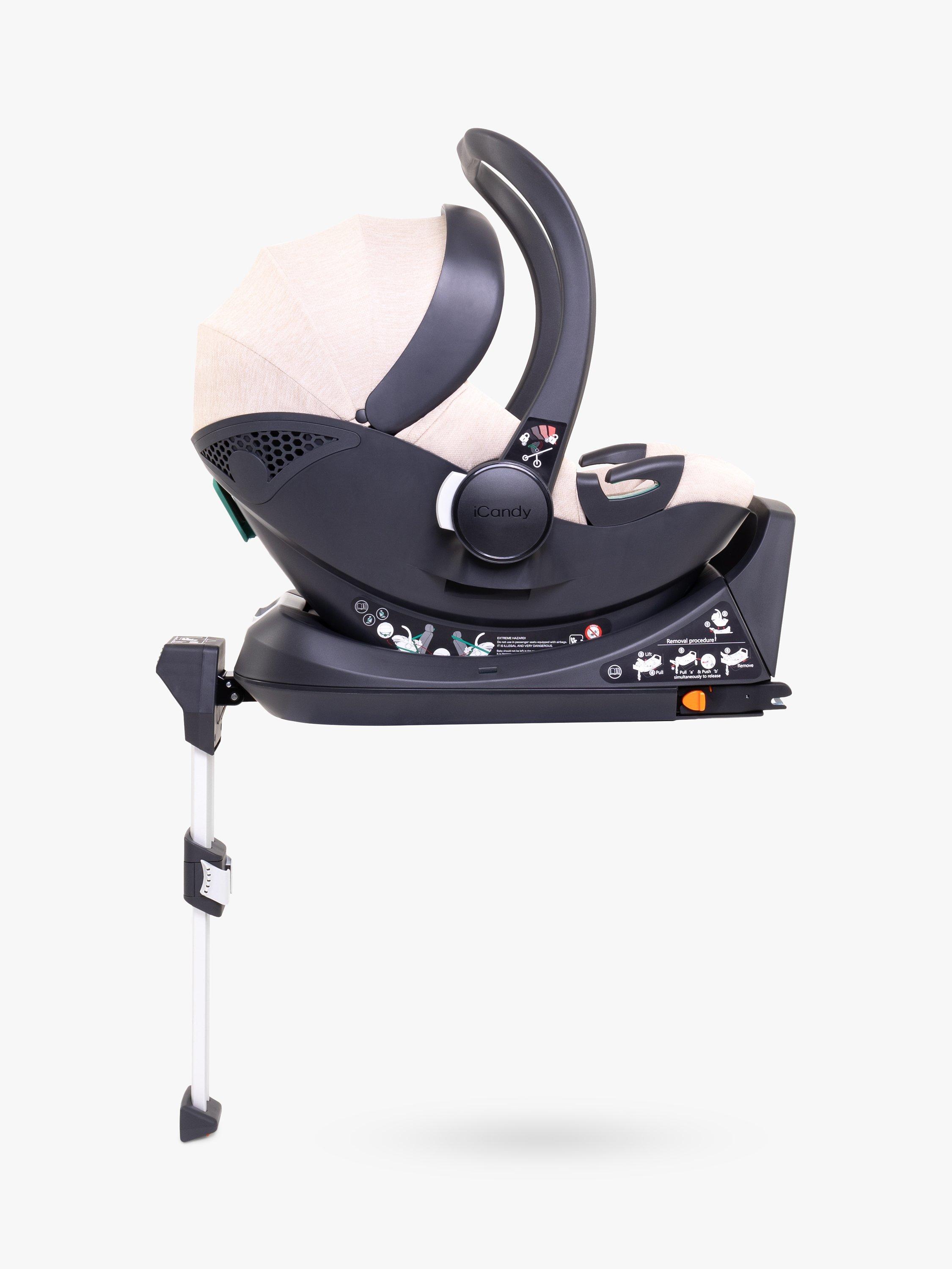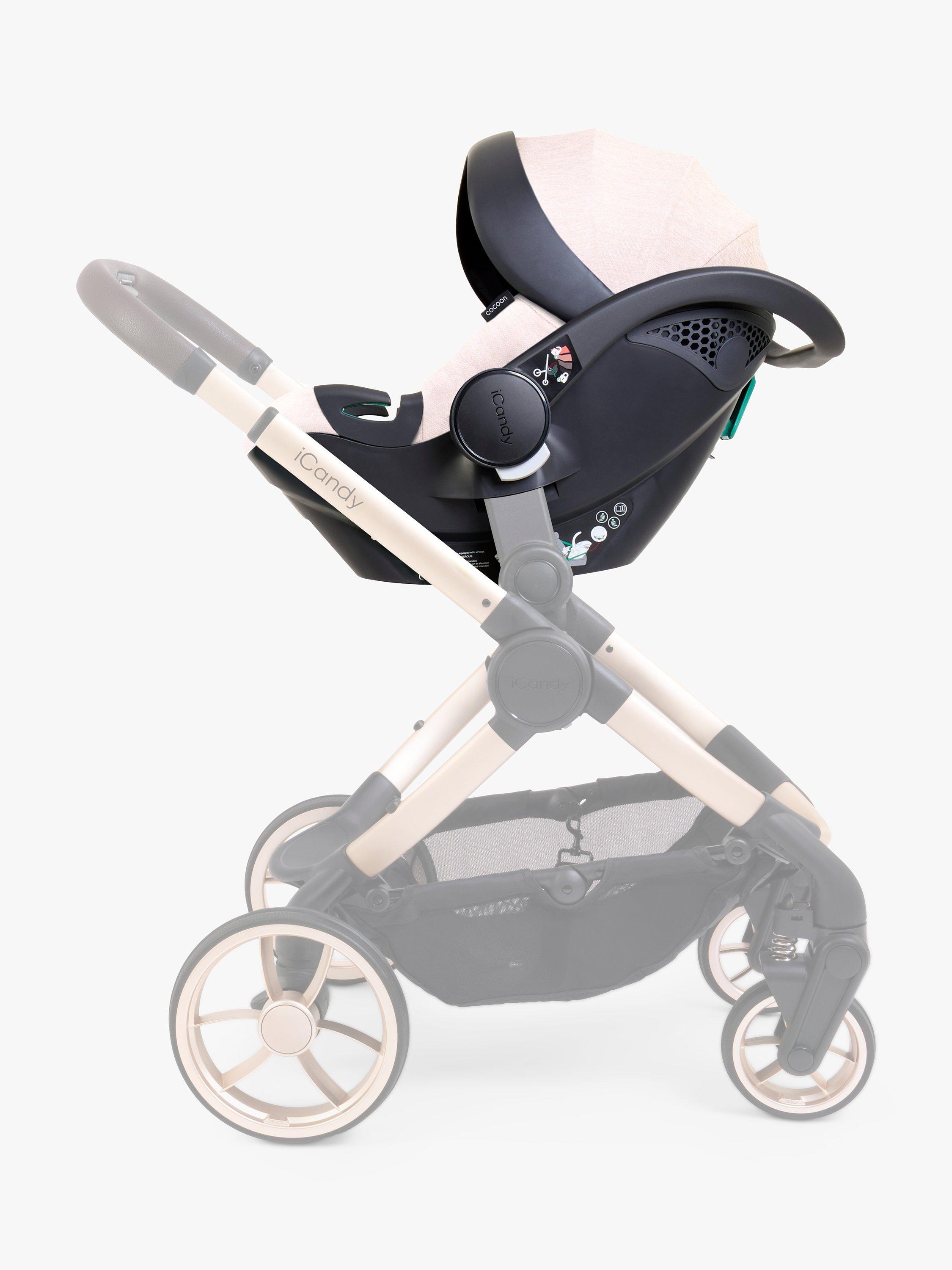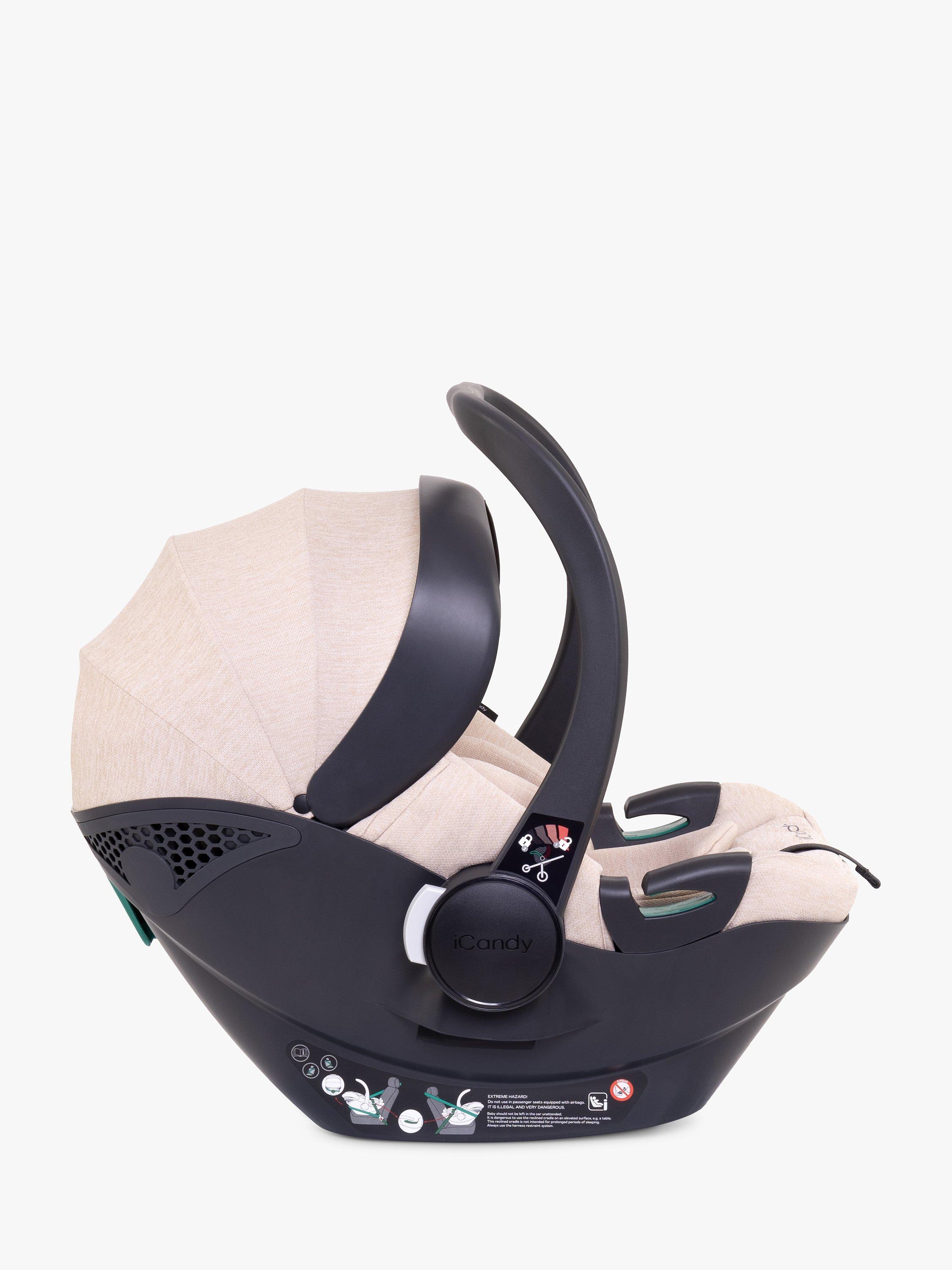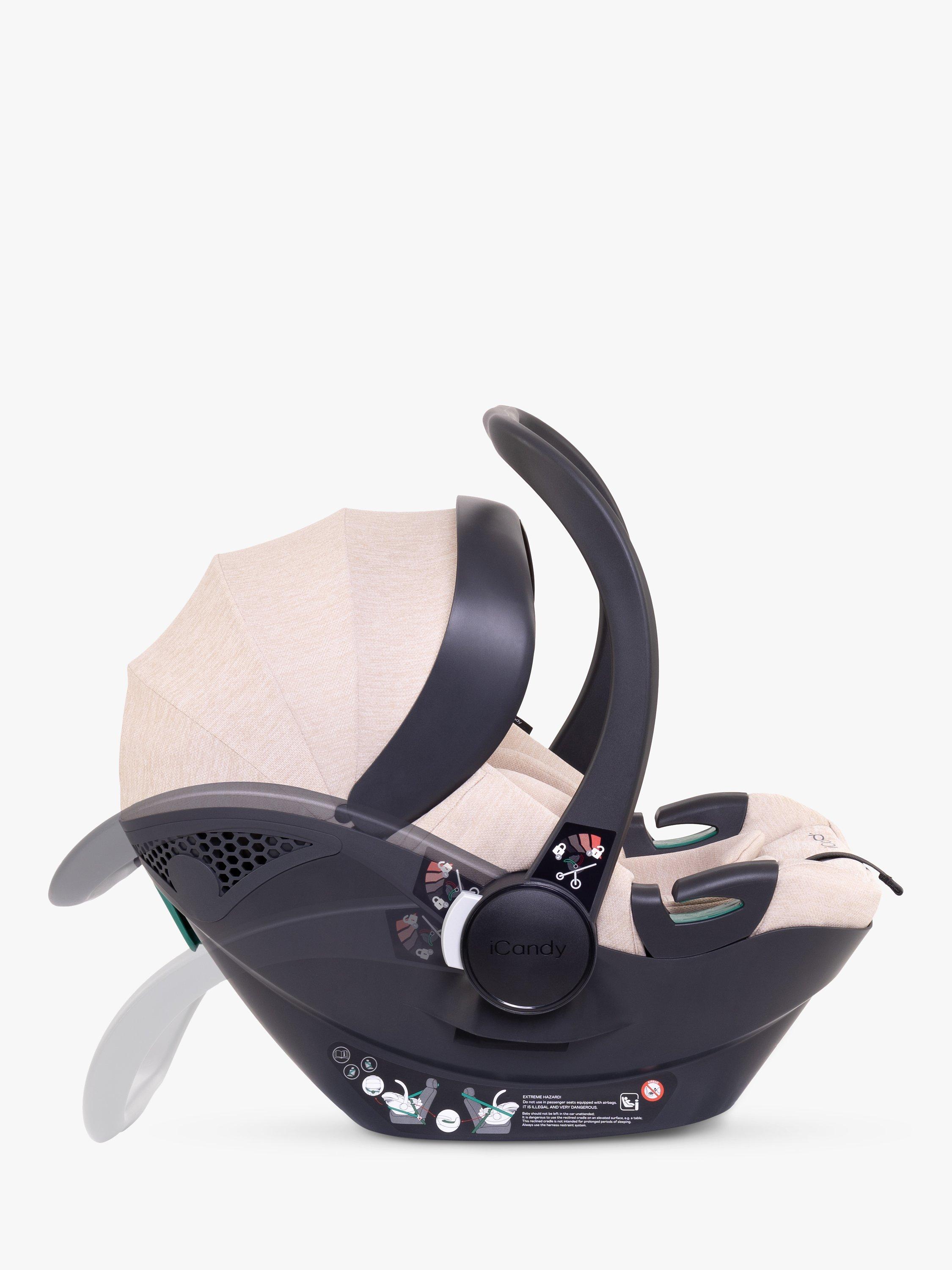 Introducing the iCandy Cocoon car seat - the car seat ADAC-rated for top safety and is suitable for both seat belt and ISOFIX installation with the bases included. It is designed for babies from birth to 15 months with a unique handle design for a secure connection. The seat comes with UV-resistant SPF 50+ fabrics and a multi-position canopy for sunny-day protection.