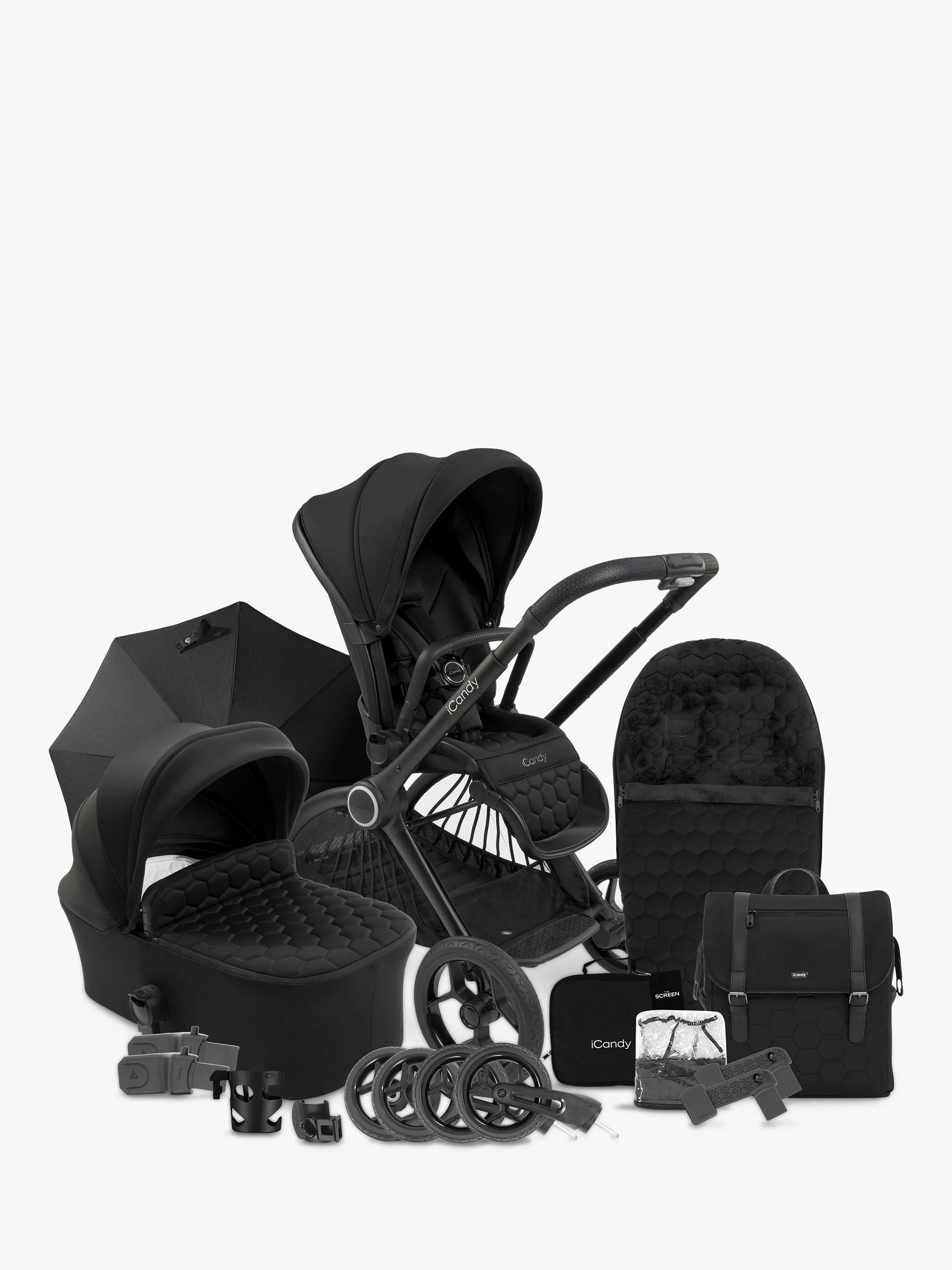 iCandyCore Pushchair, Carrycot, Footmuff & Accessories Complete Bundle, Jet Black