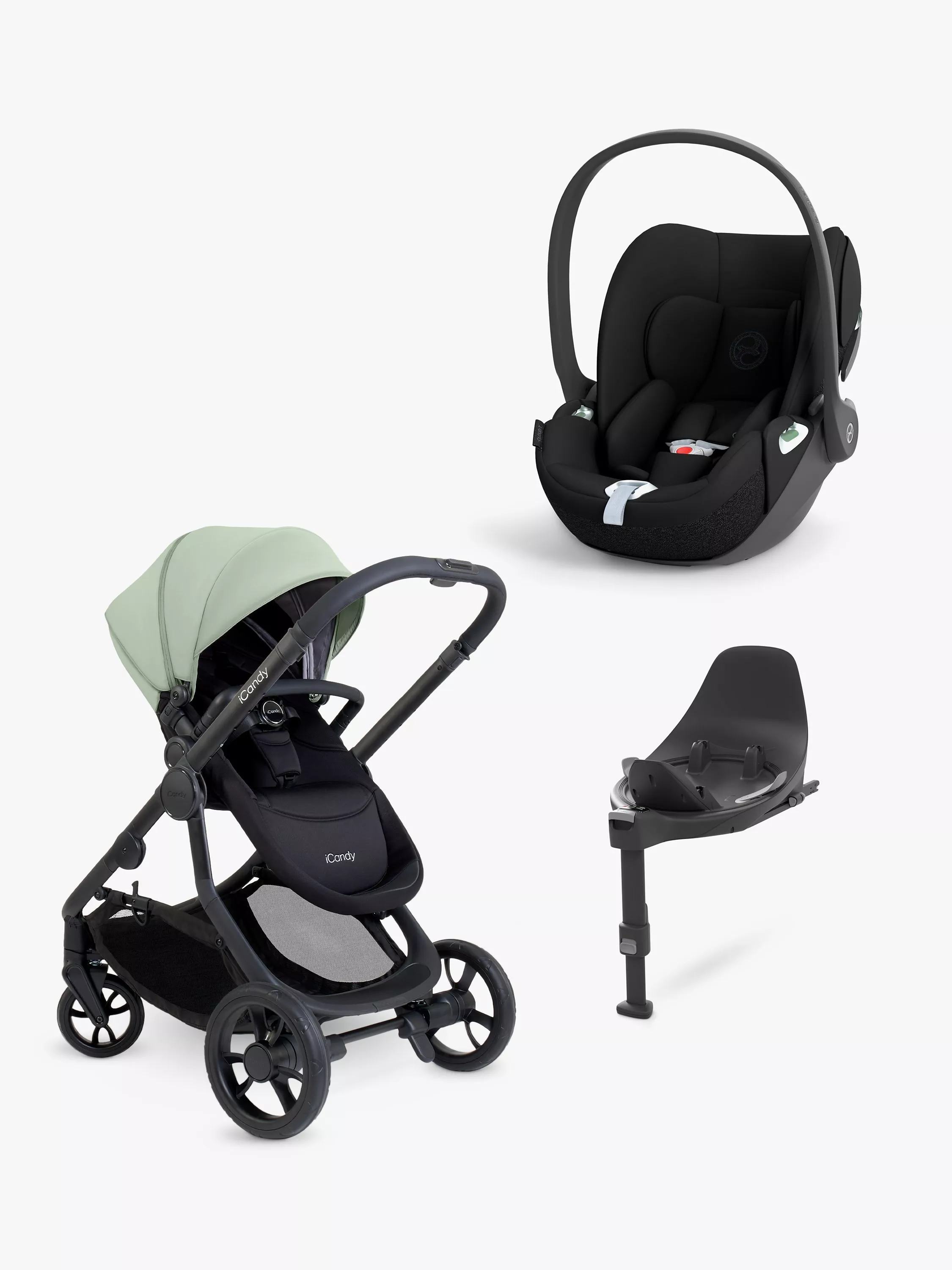iCandyOrange 4 Pushchair with Cybex Cloud T i-Size Rotating Baby Car Seat and Base T Rotating ISOFIX Base Bundle, Pistachio/Sepia Black