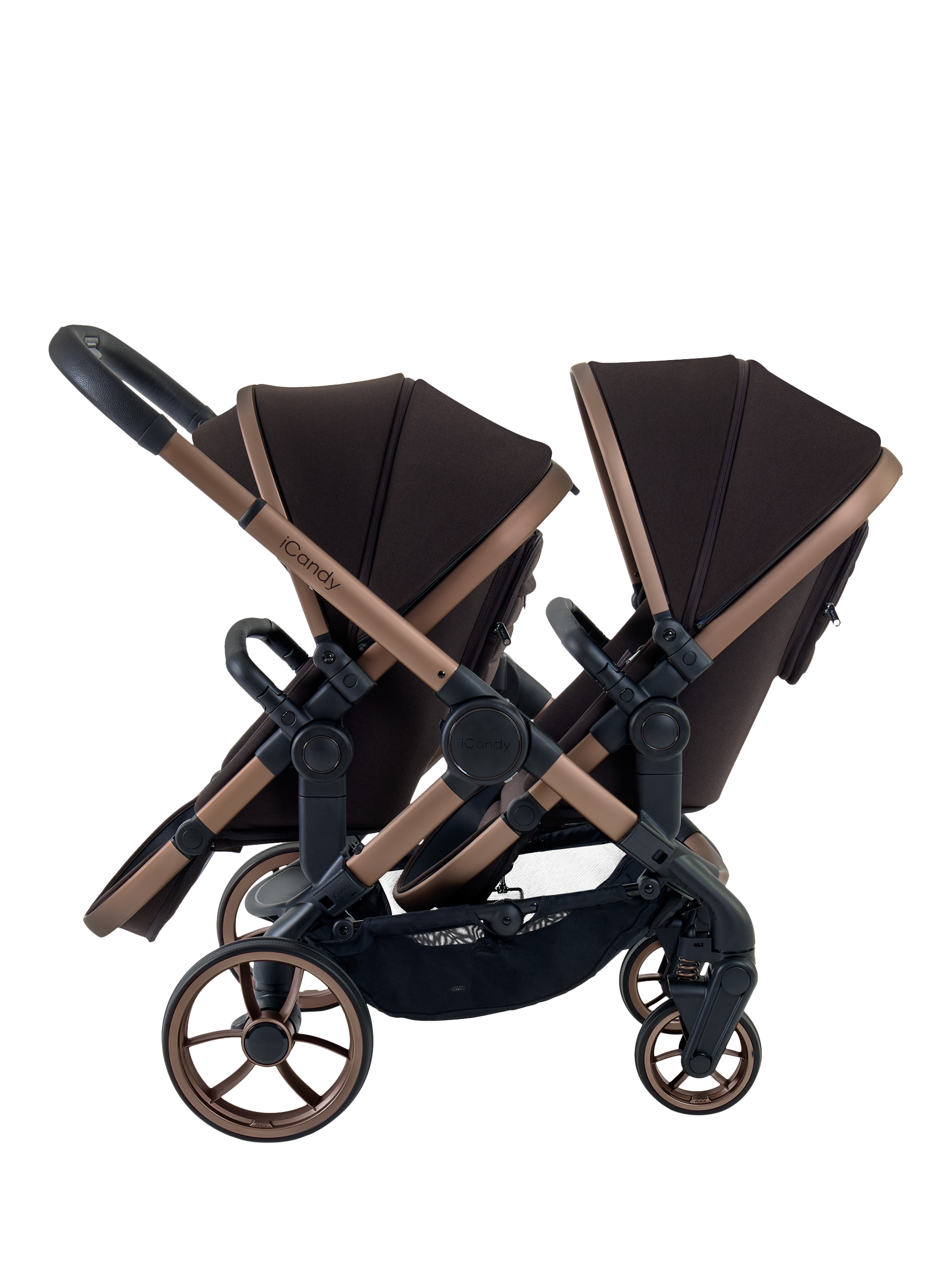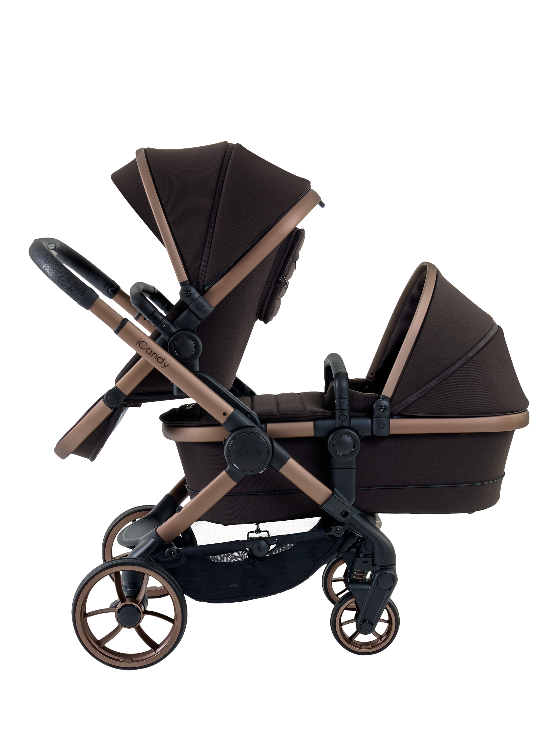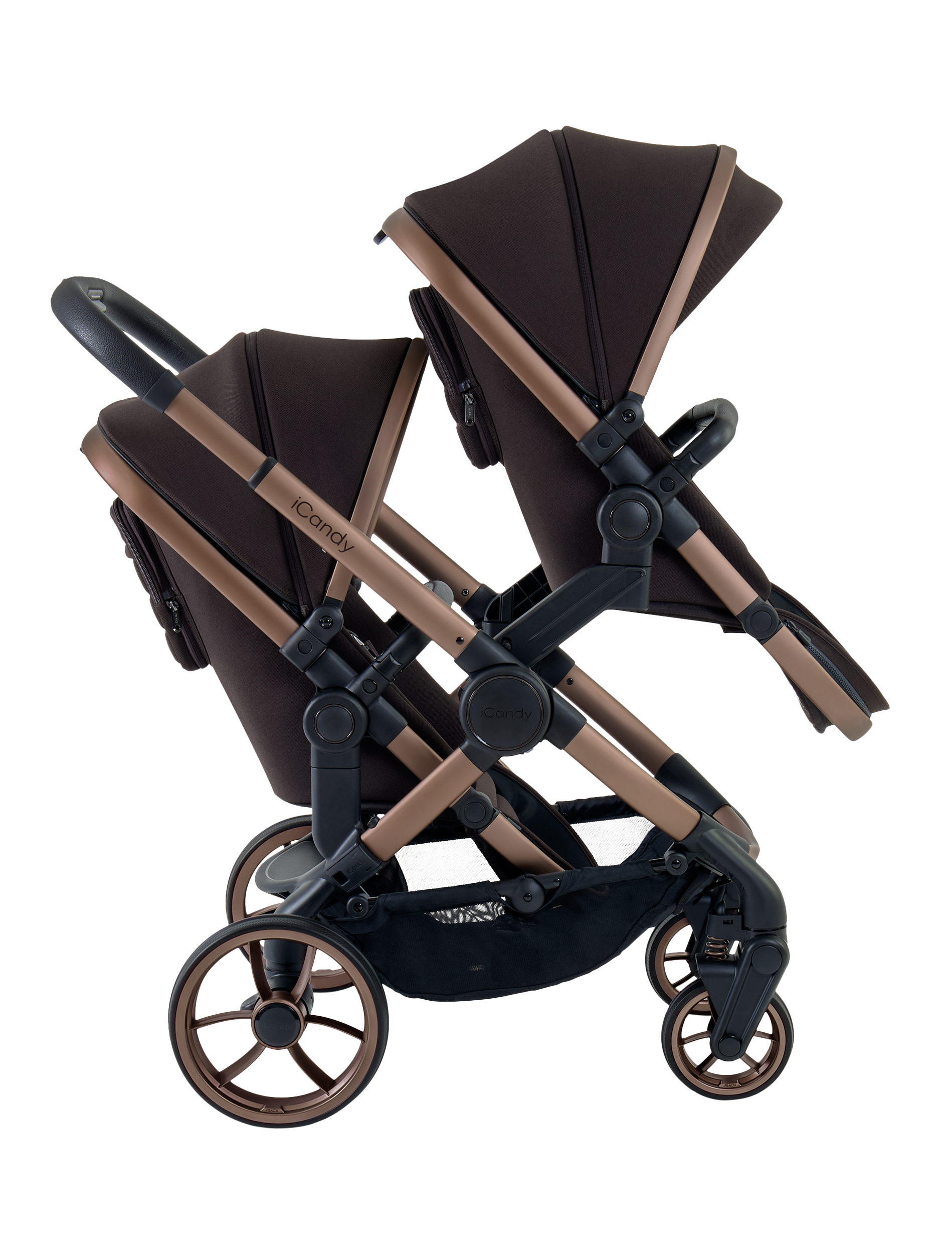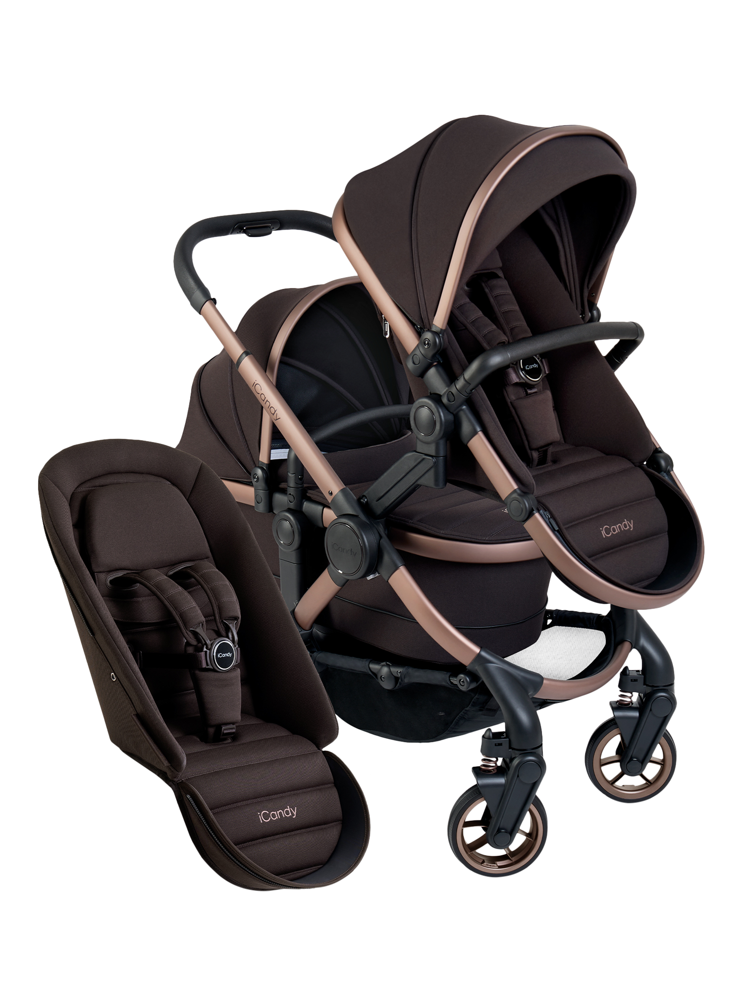 Great for growing families, the iCandy Peach Double is a sophisticated travel system that takes baby and toddler from birth to 25kg. It easily converts from single to double within a single footprint. It allows parents to use it with a Carrycot or Infant Carrier for a baby and a Seat Unit for a toddler. As Baby grows it easily converts to take two seat units in a range of configurations.