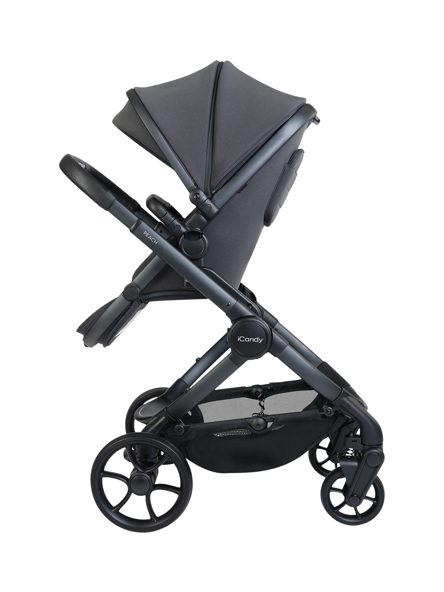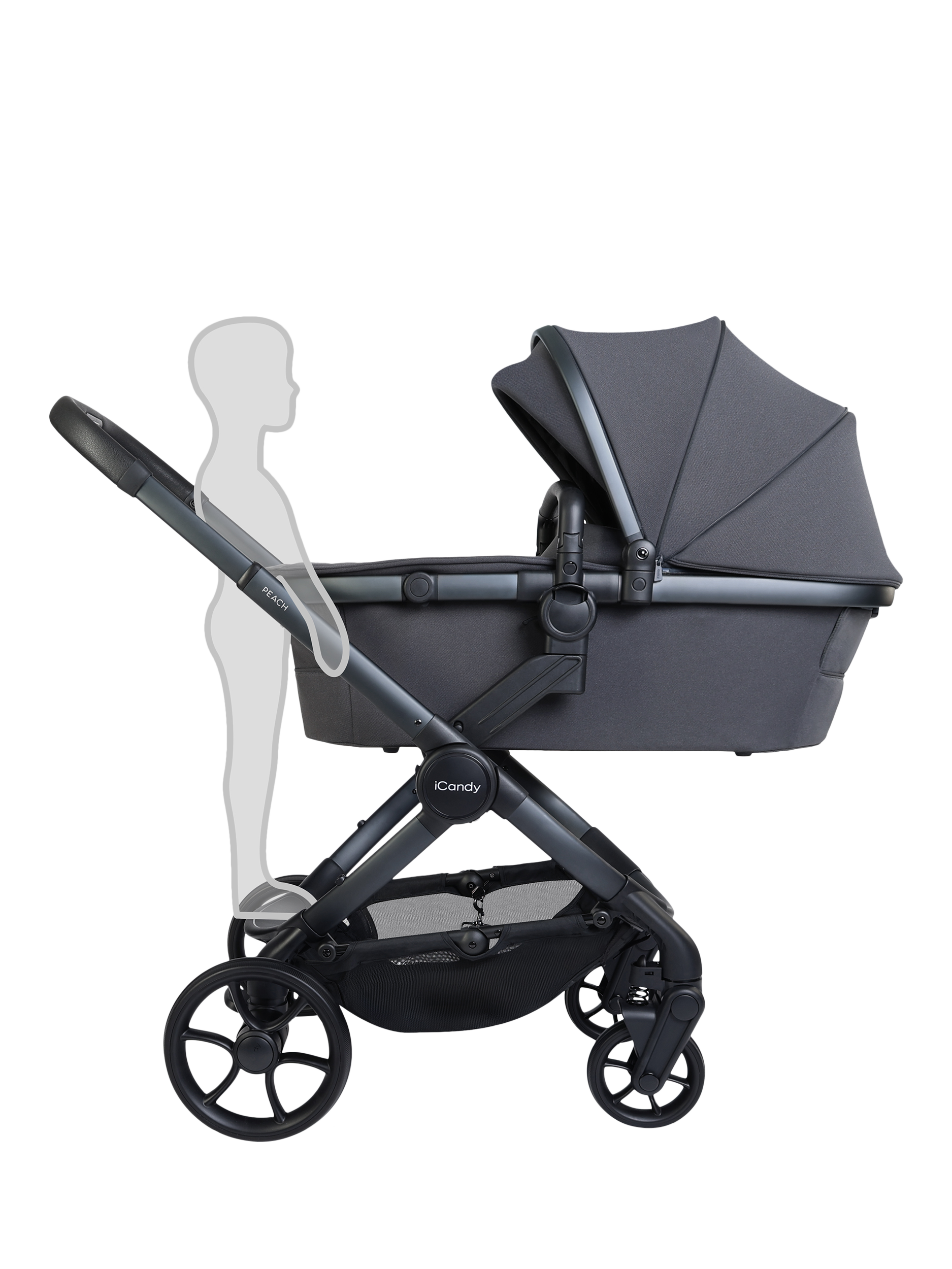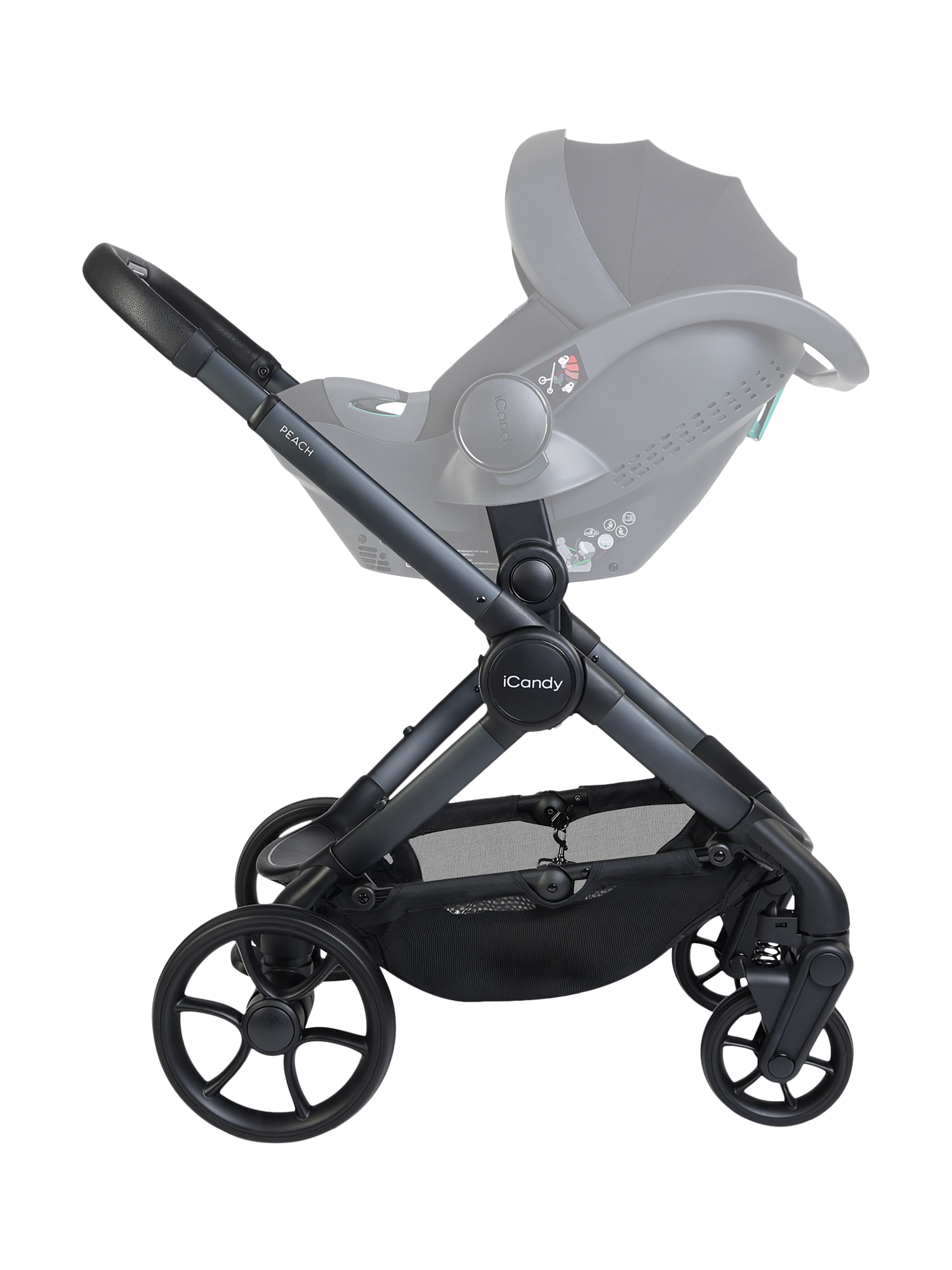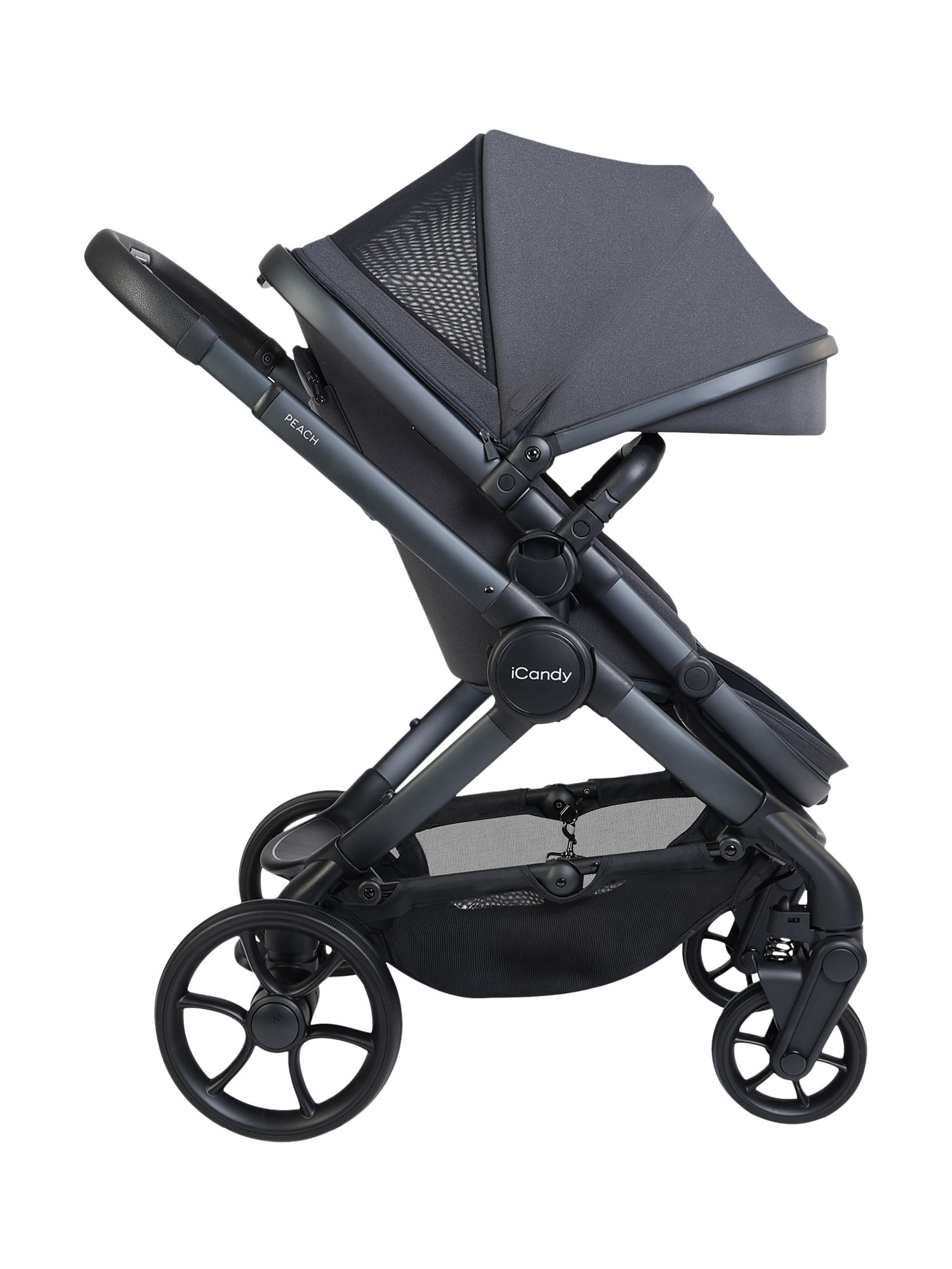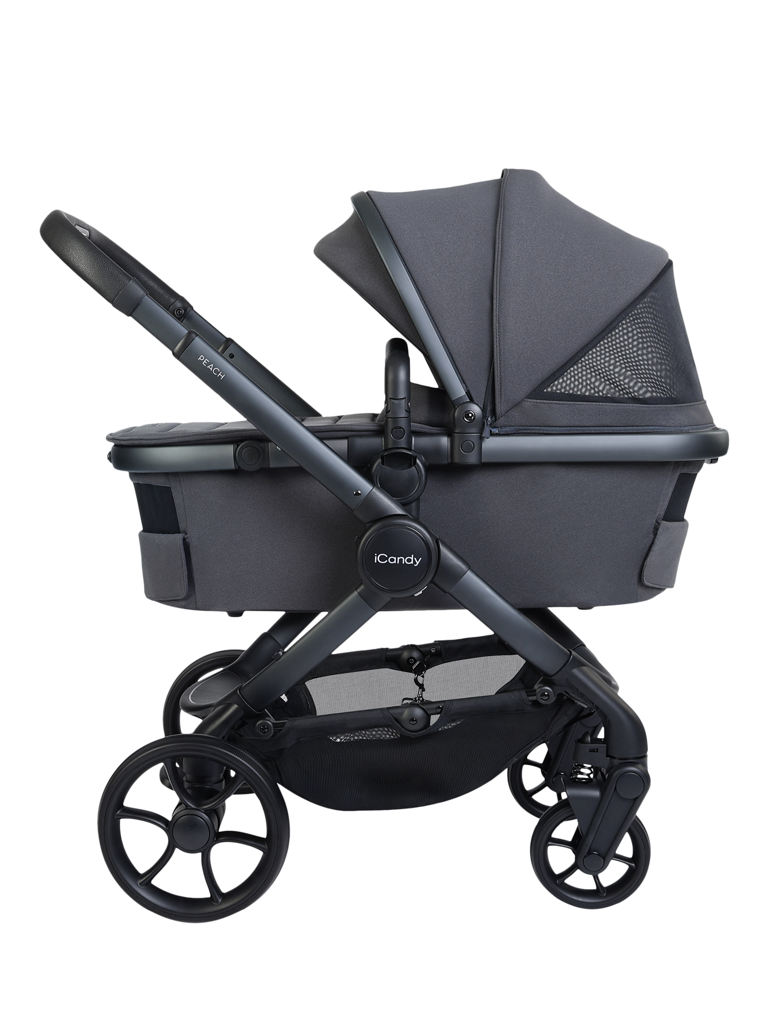 Peach 8 features a collapsible, highly ventilated carrycot (over double the airflow compared to Peach 7) approved by The Lullaby Trust for permanent overnight sleeping, enhanced suspension, single-to-double or twin conversion, one-handed fold and recline, integrated Ride-on Board, 10kg basket and iCandy MiStand compatibility.