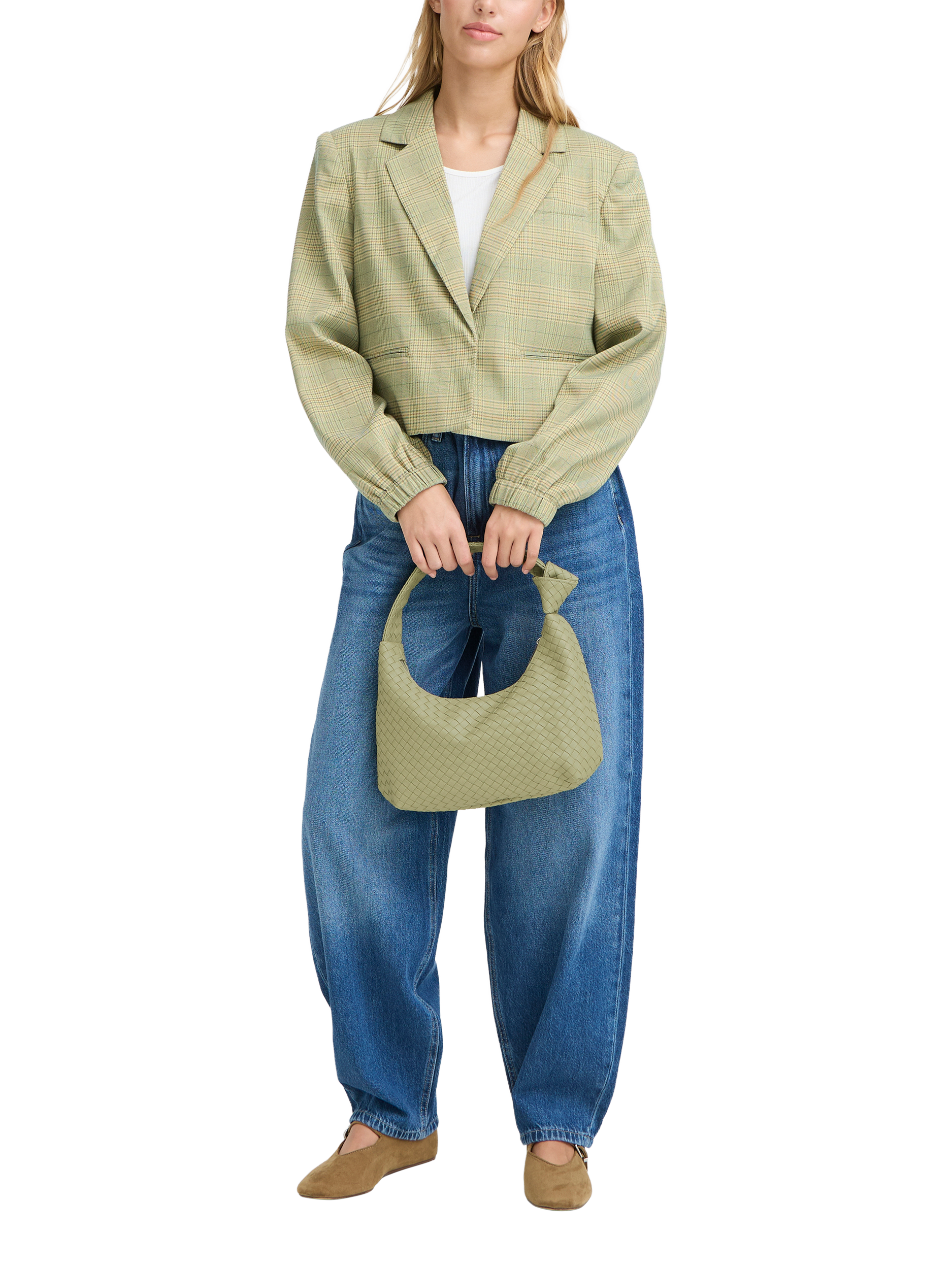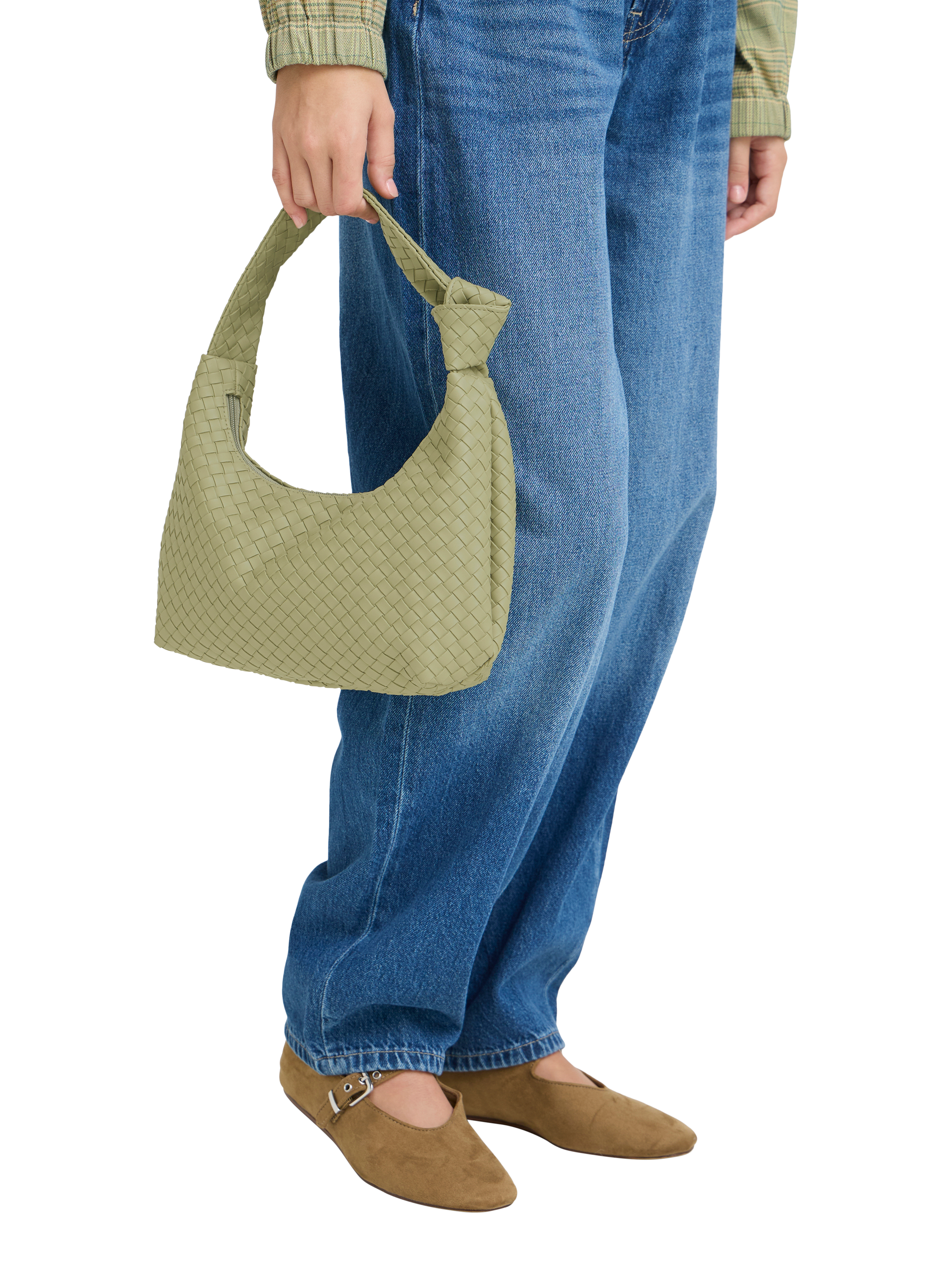This woven textured shoulder bag keeps essentials close and offers easy zip access. Light to carry and comfortable with a knot detail strap, it suits your everyday plans while always looking sharp.