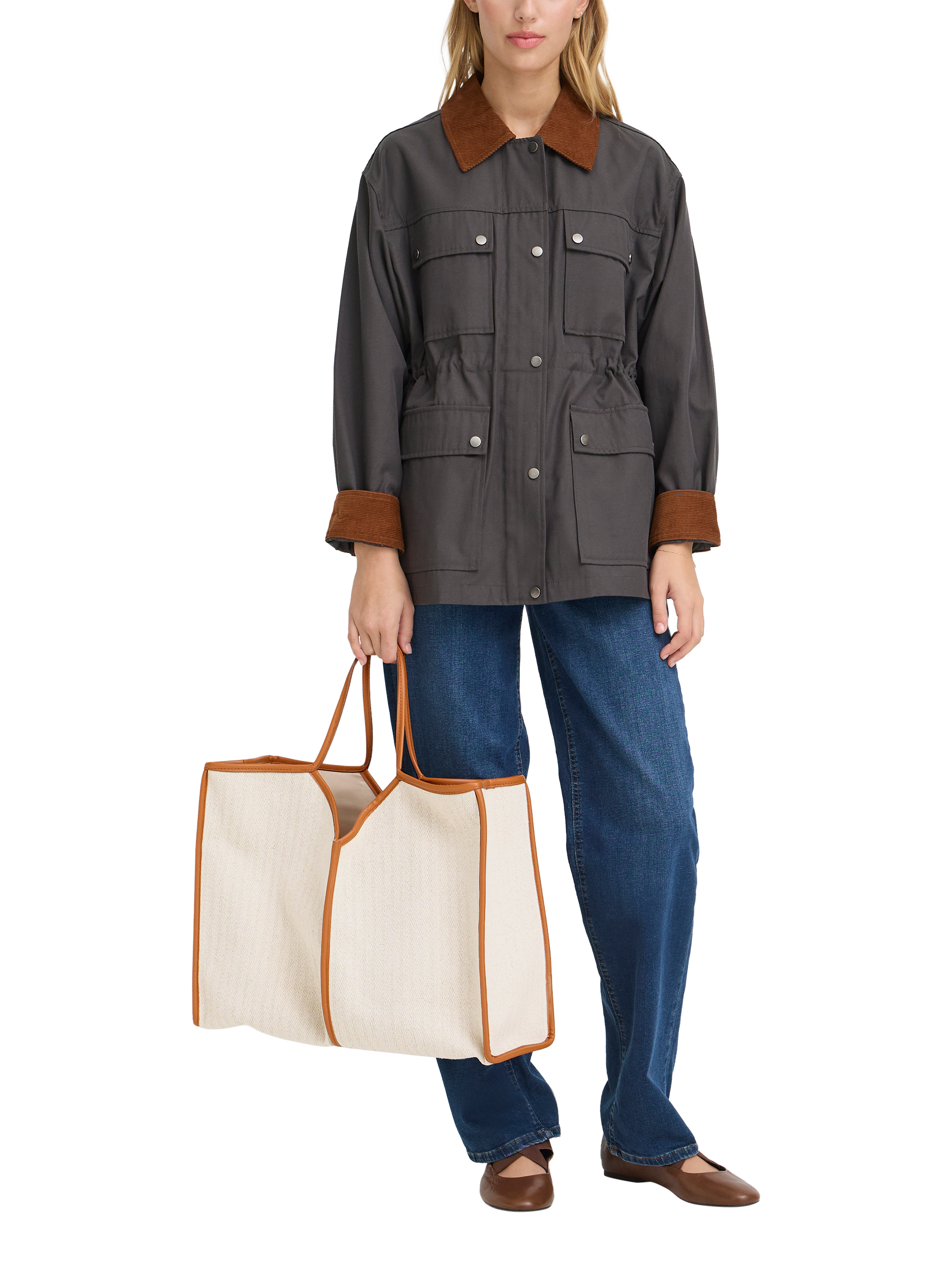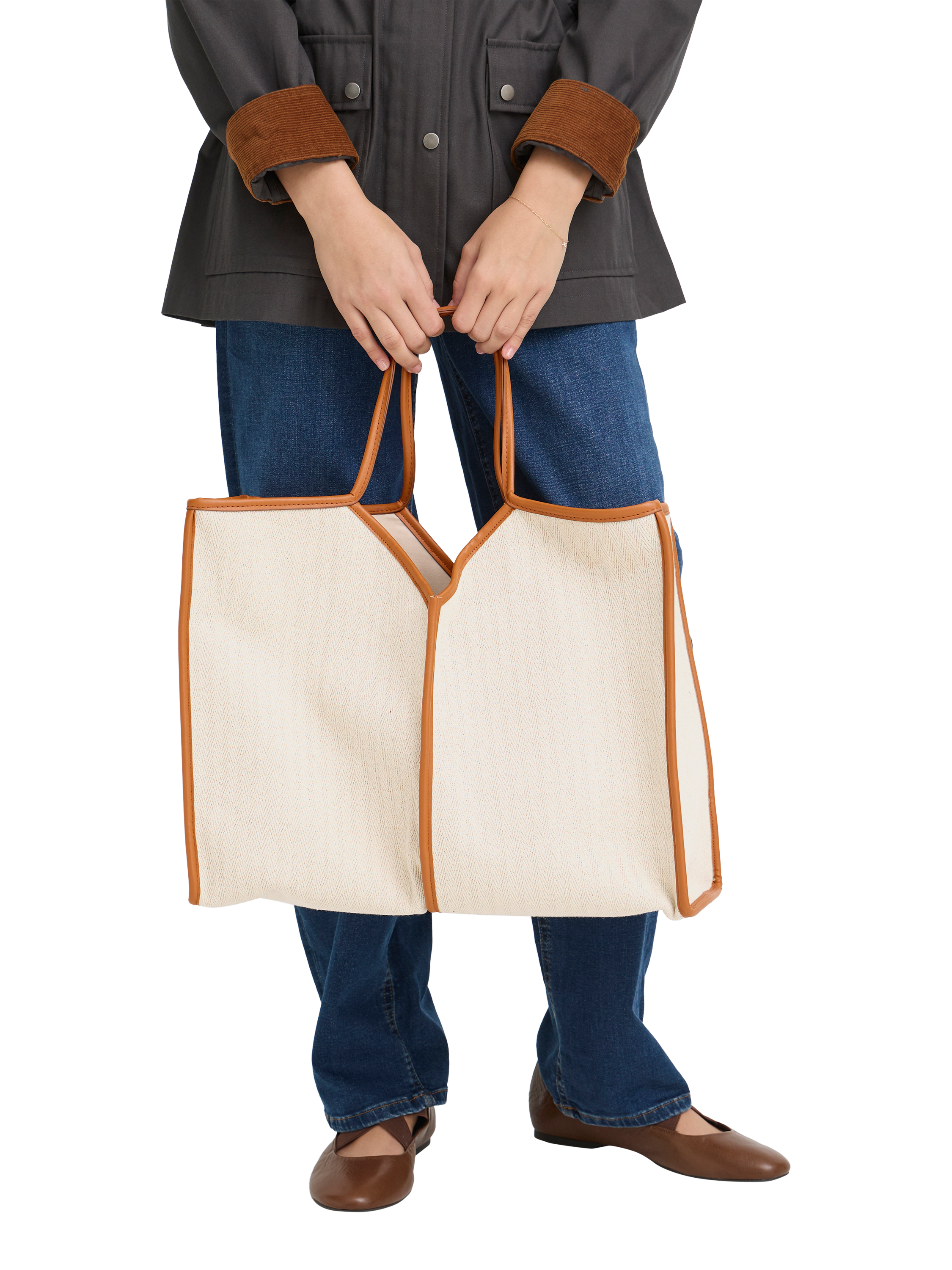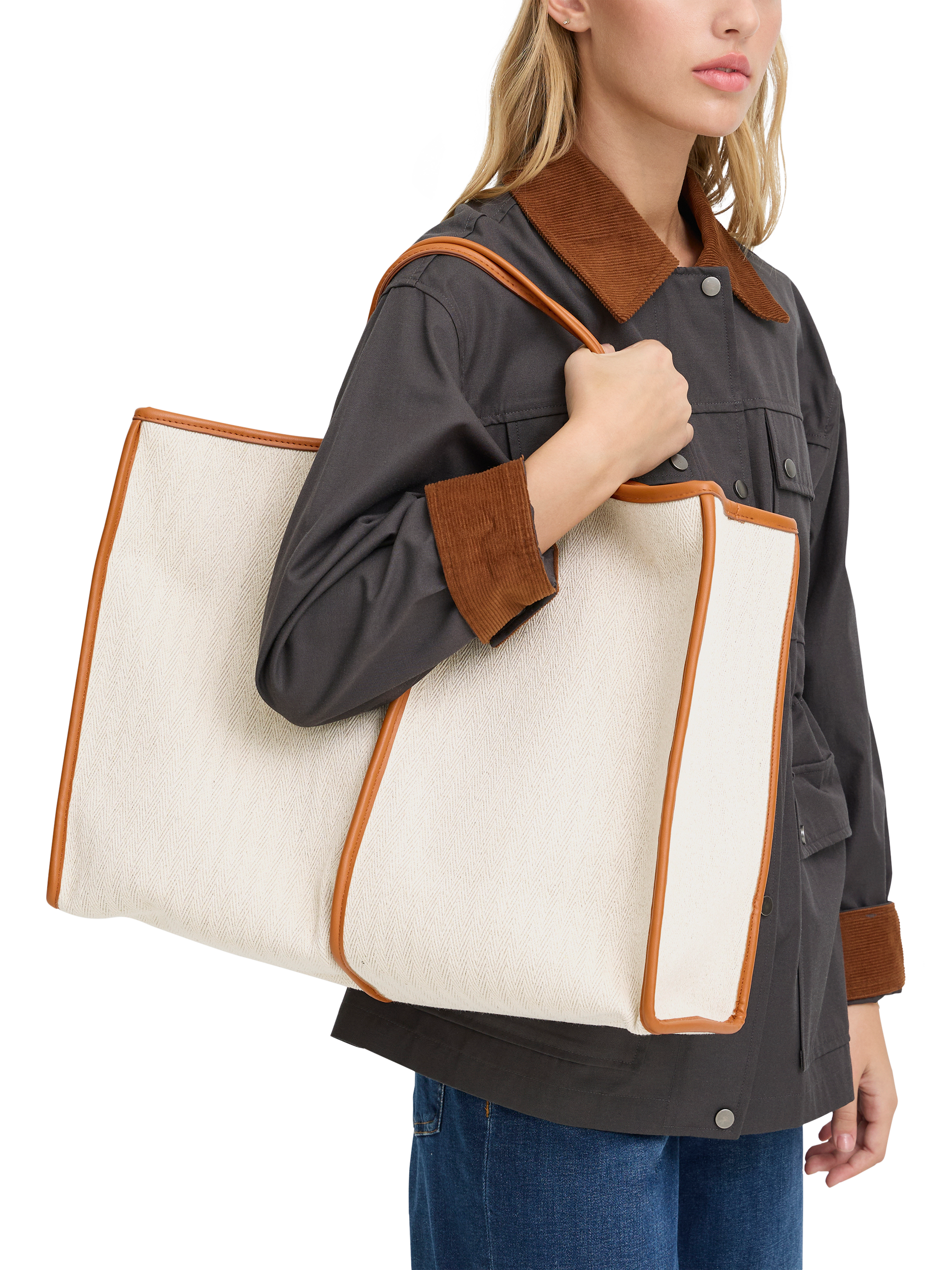 A classic tote by ICHI, designed with a contrast trim. Its roomy design keeps your essentials organised while a thoughtful open top makes access effortless. Lightweight and comfortable, it fits seamlessly into your everyday routine.