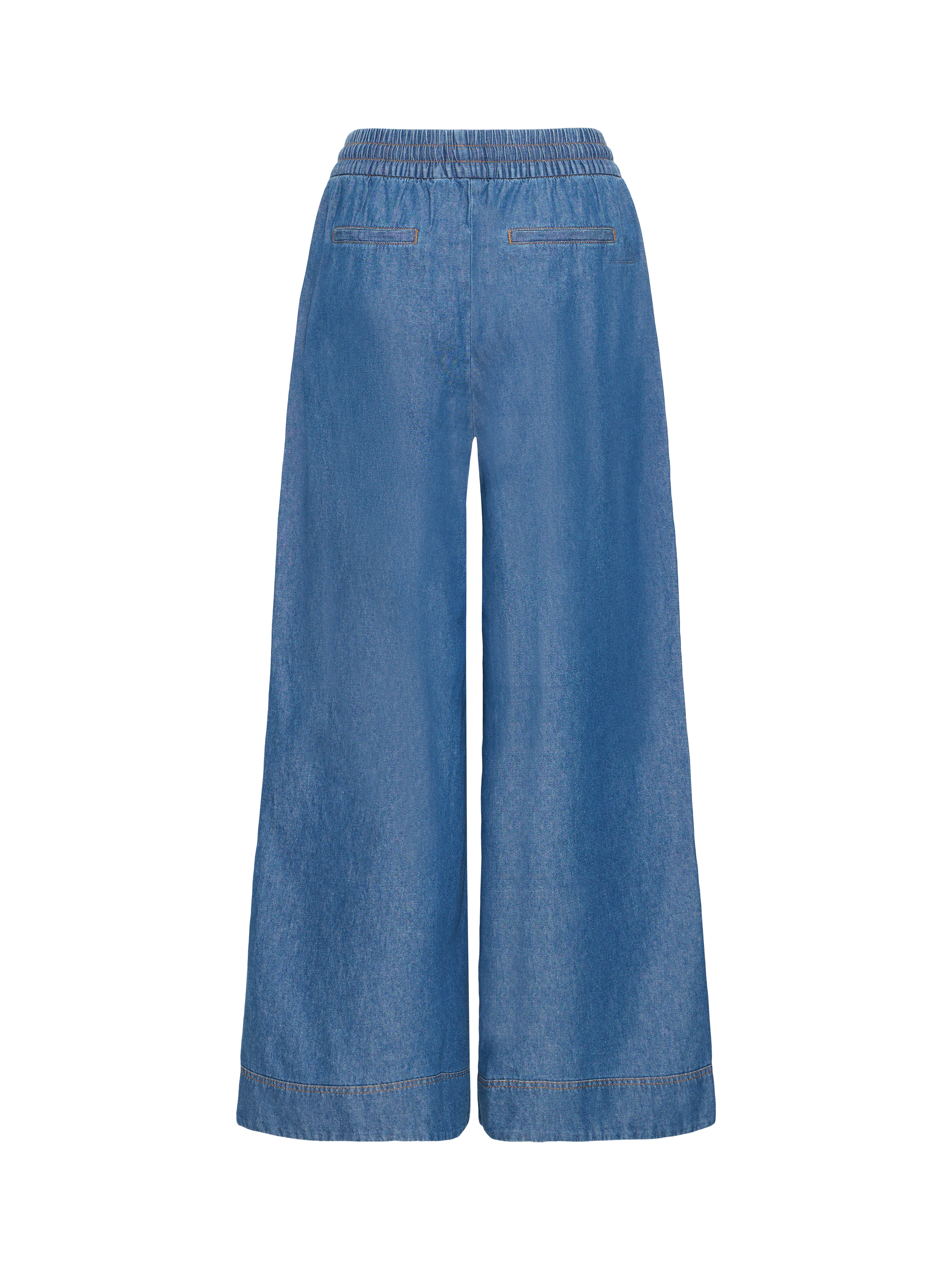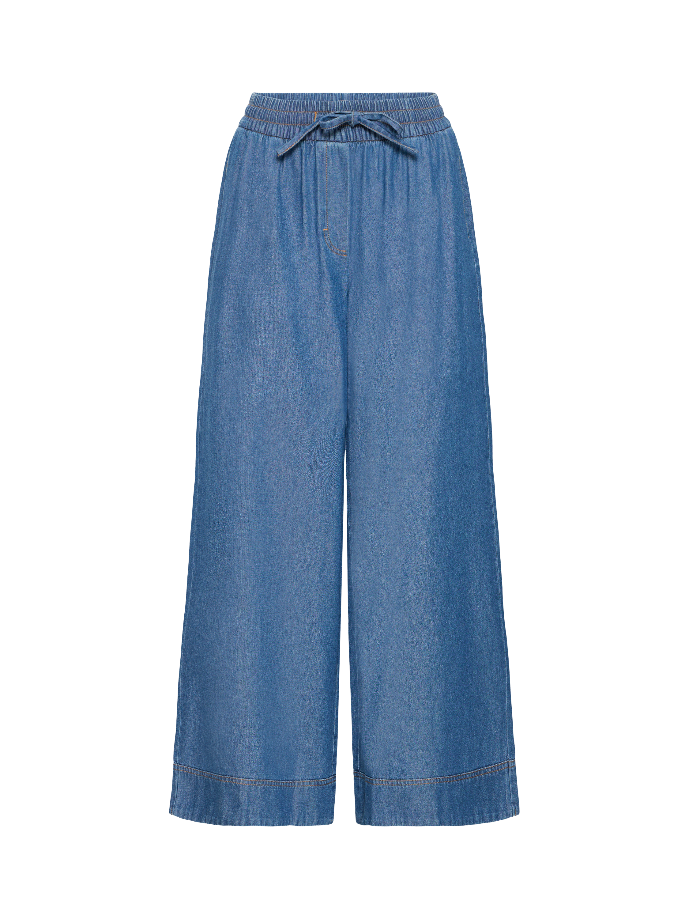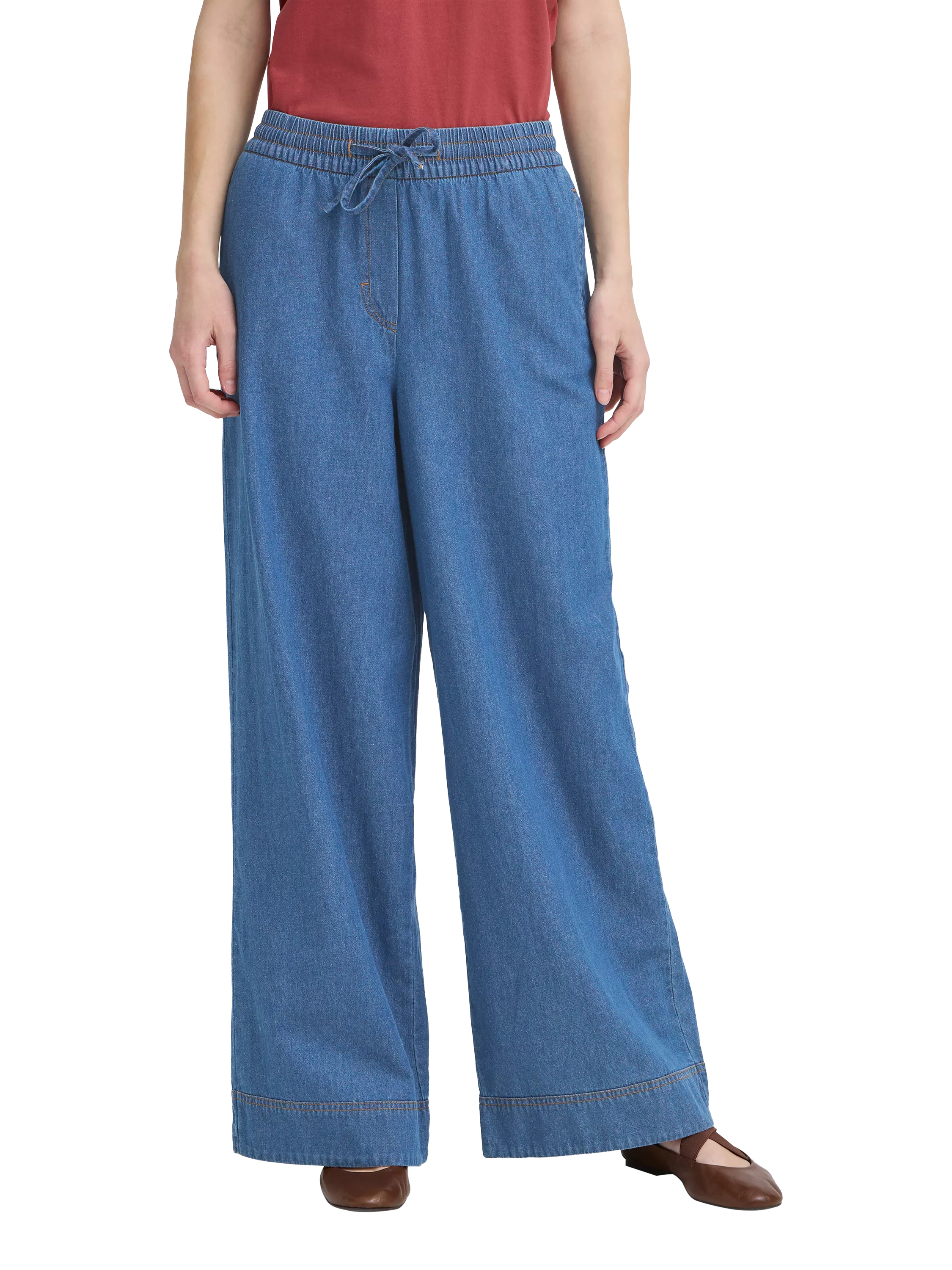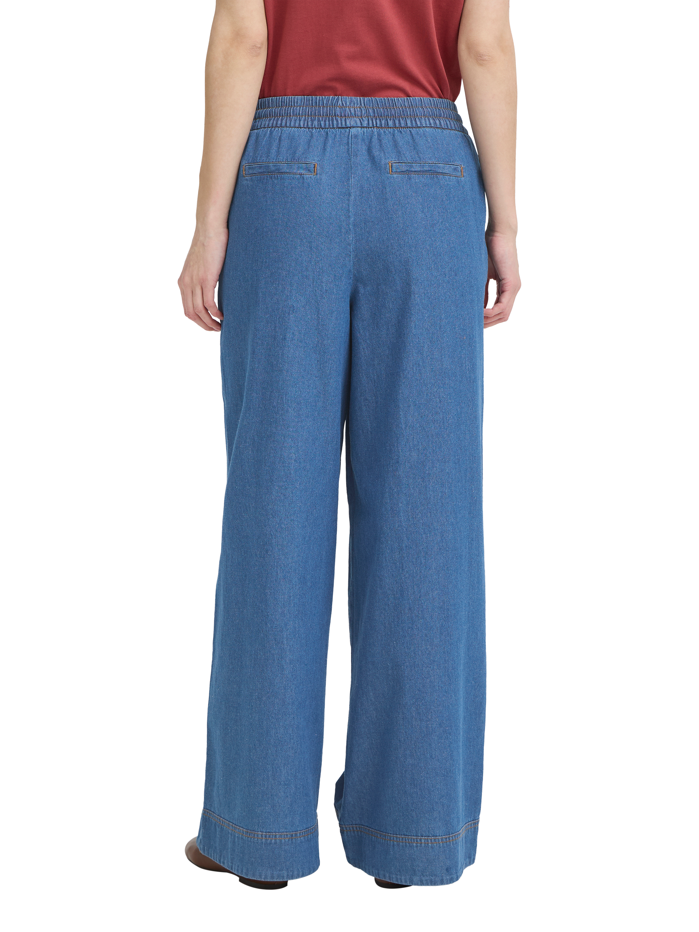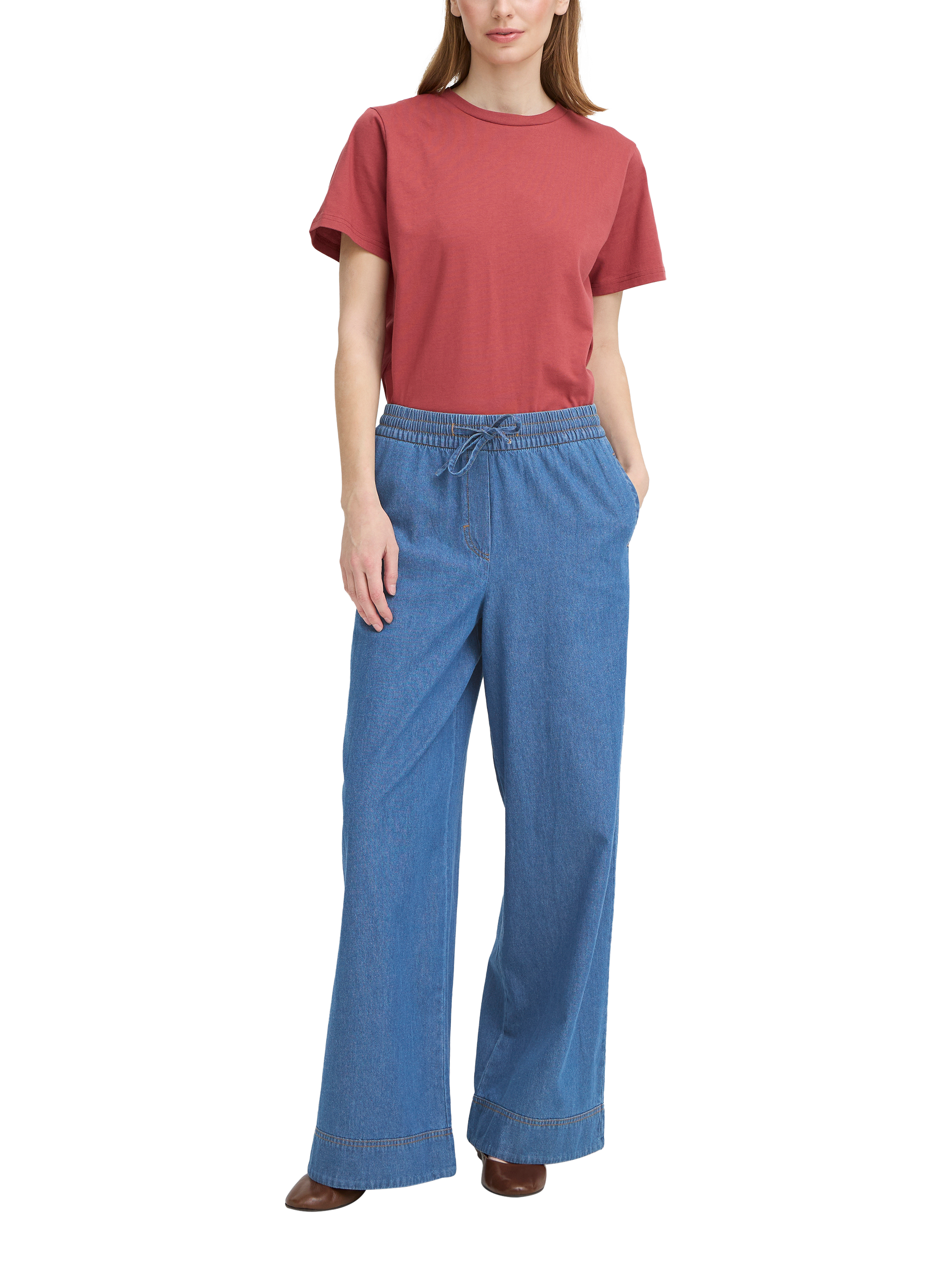 A pair of characteristically wide legged jeans from ICHI. Made from pure cotton with a comfortable elasticated mid rise waist with a drawstring, they fall to a regular length.