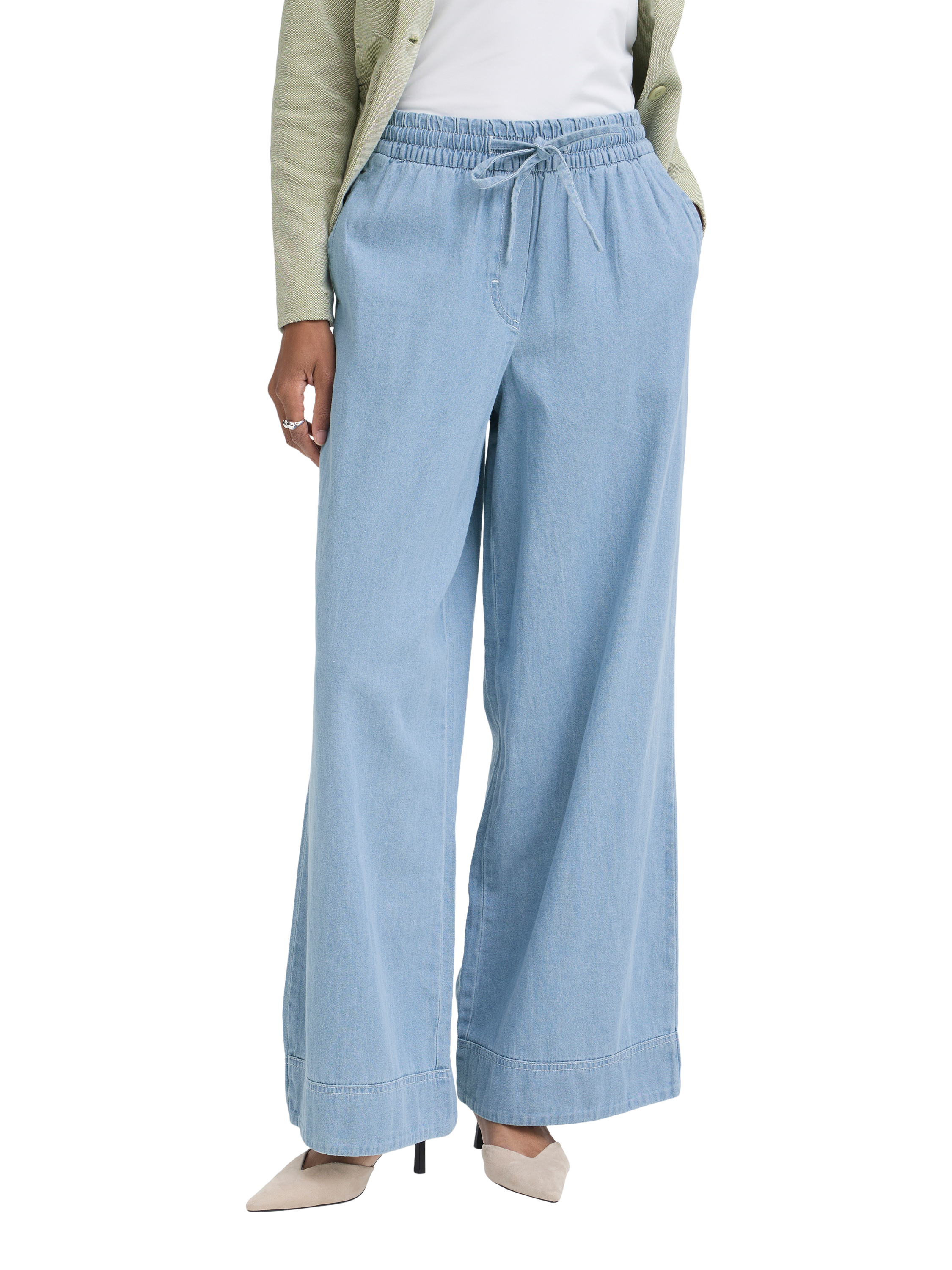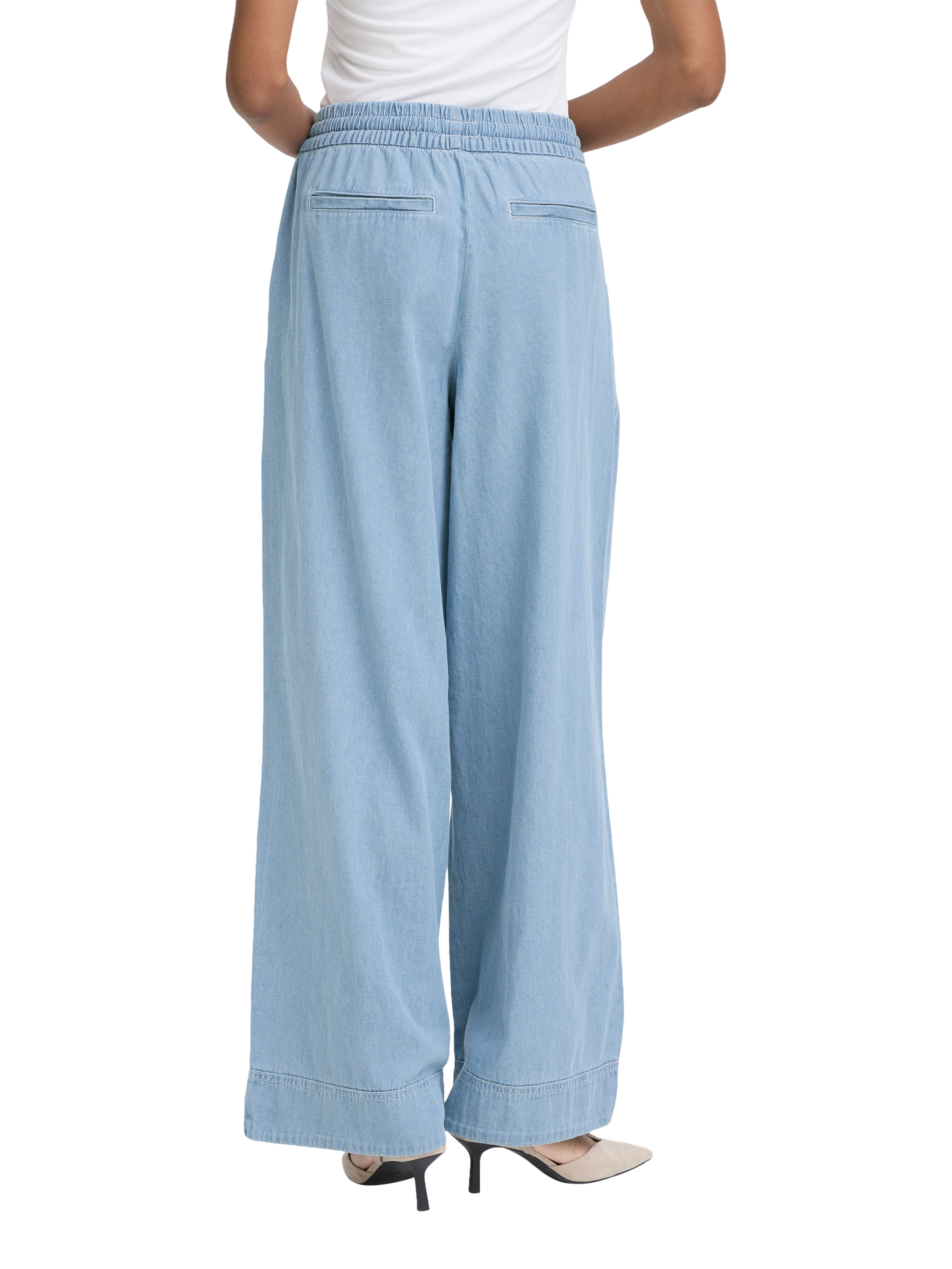 ICHIArcher Wide Leg Trousers, Light Blue Washed
