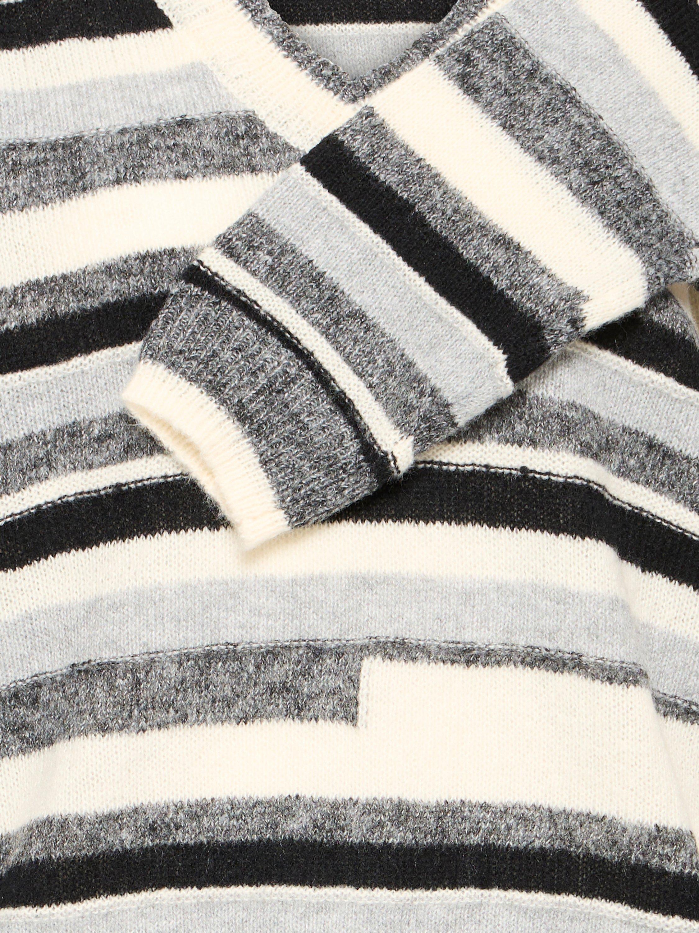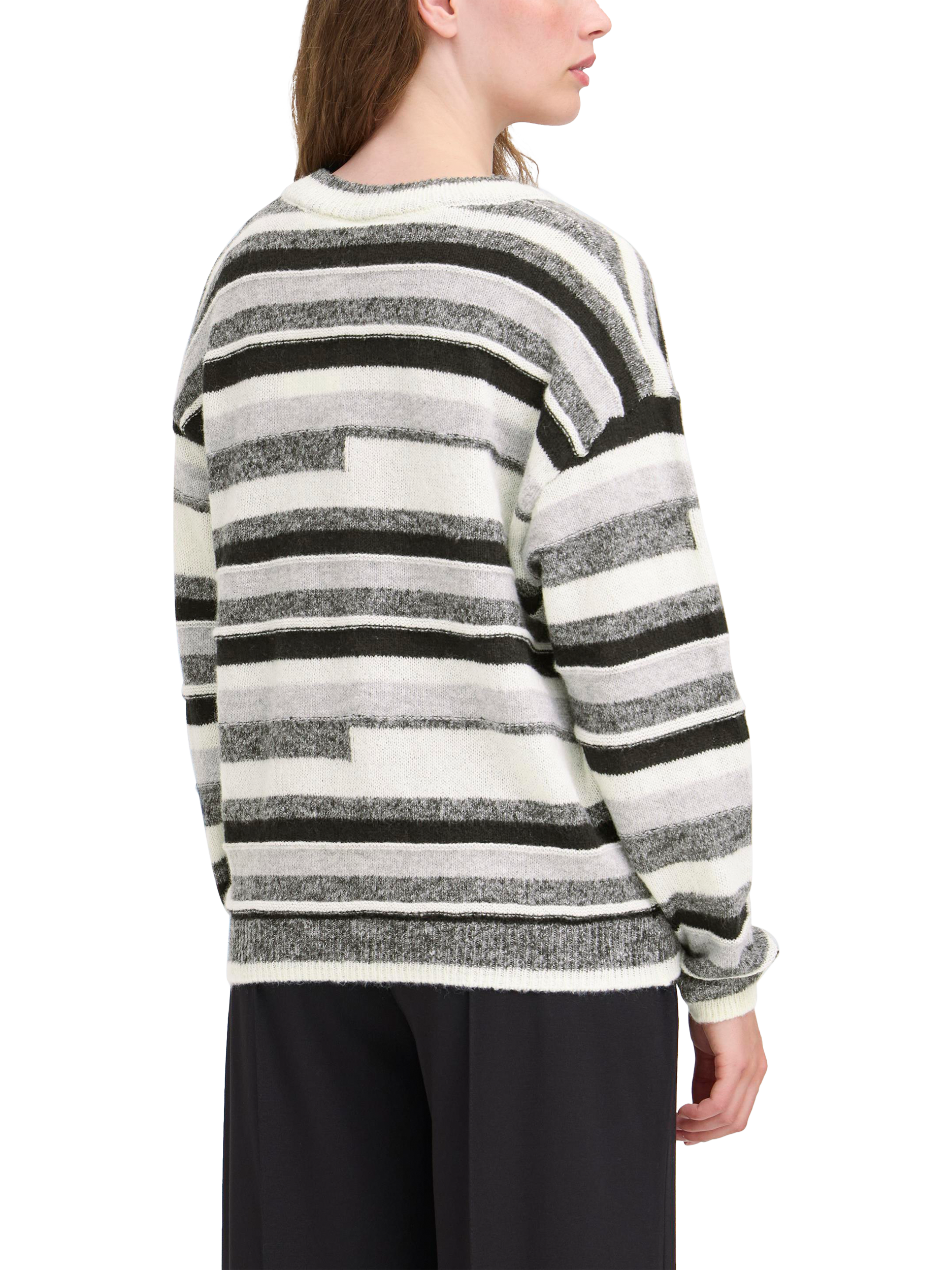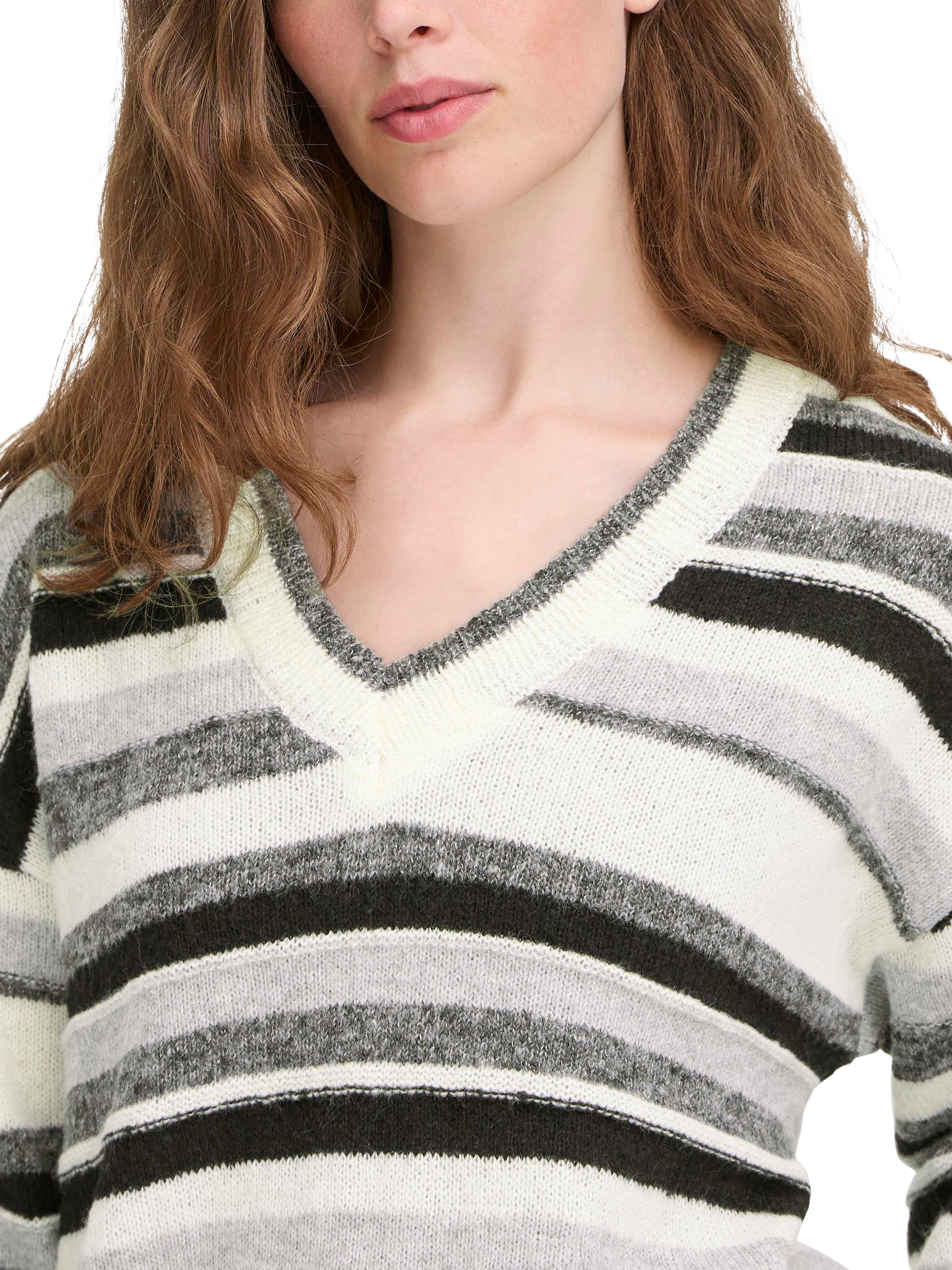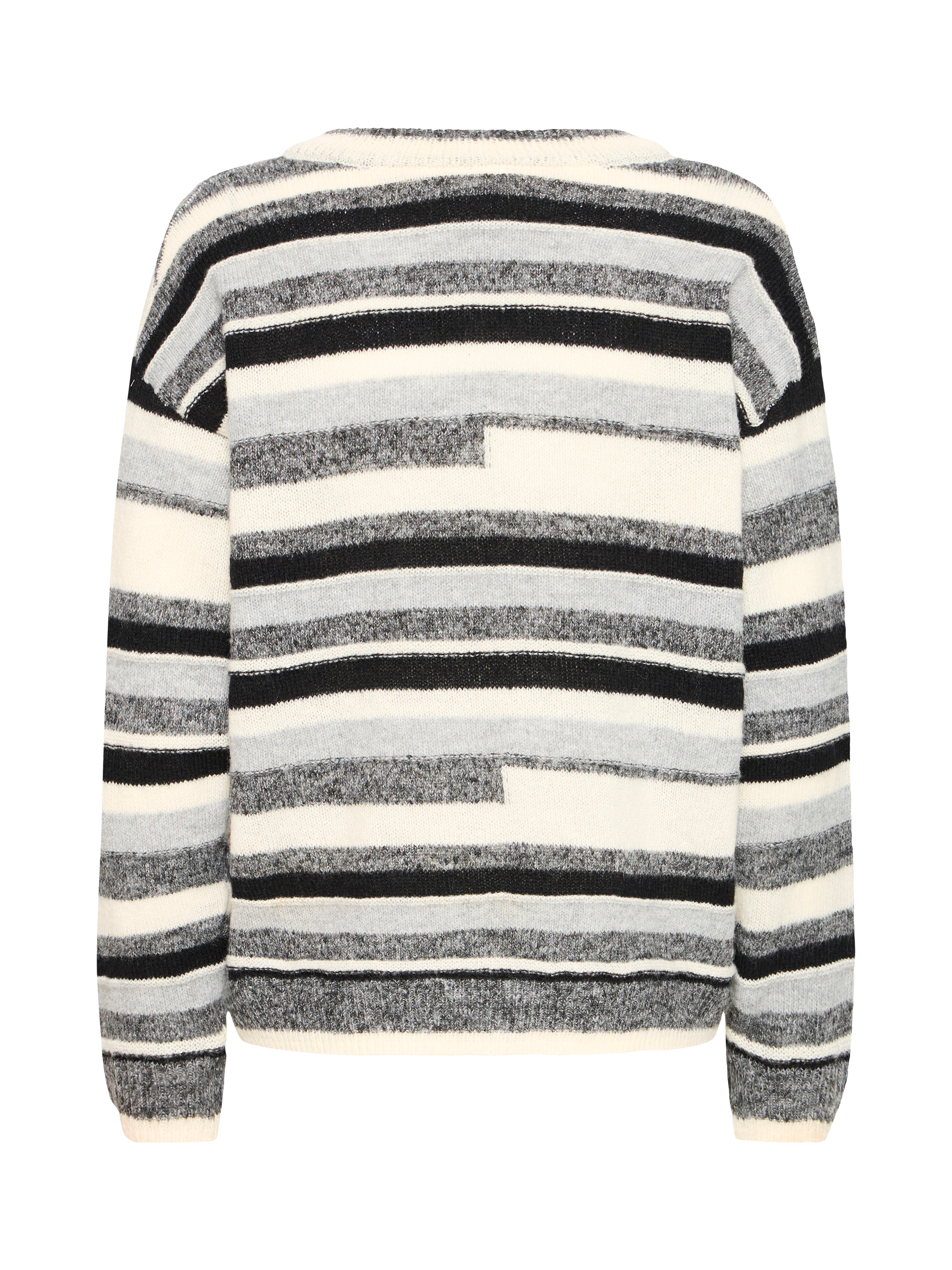 ICHI’s striped jumper. Its V-neck and comfortable fit welcome every moment, whether you are heading out or staying in. Elevate any day by pairing it easily with work or weekend looks.
