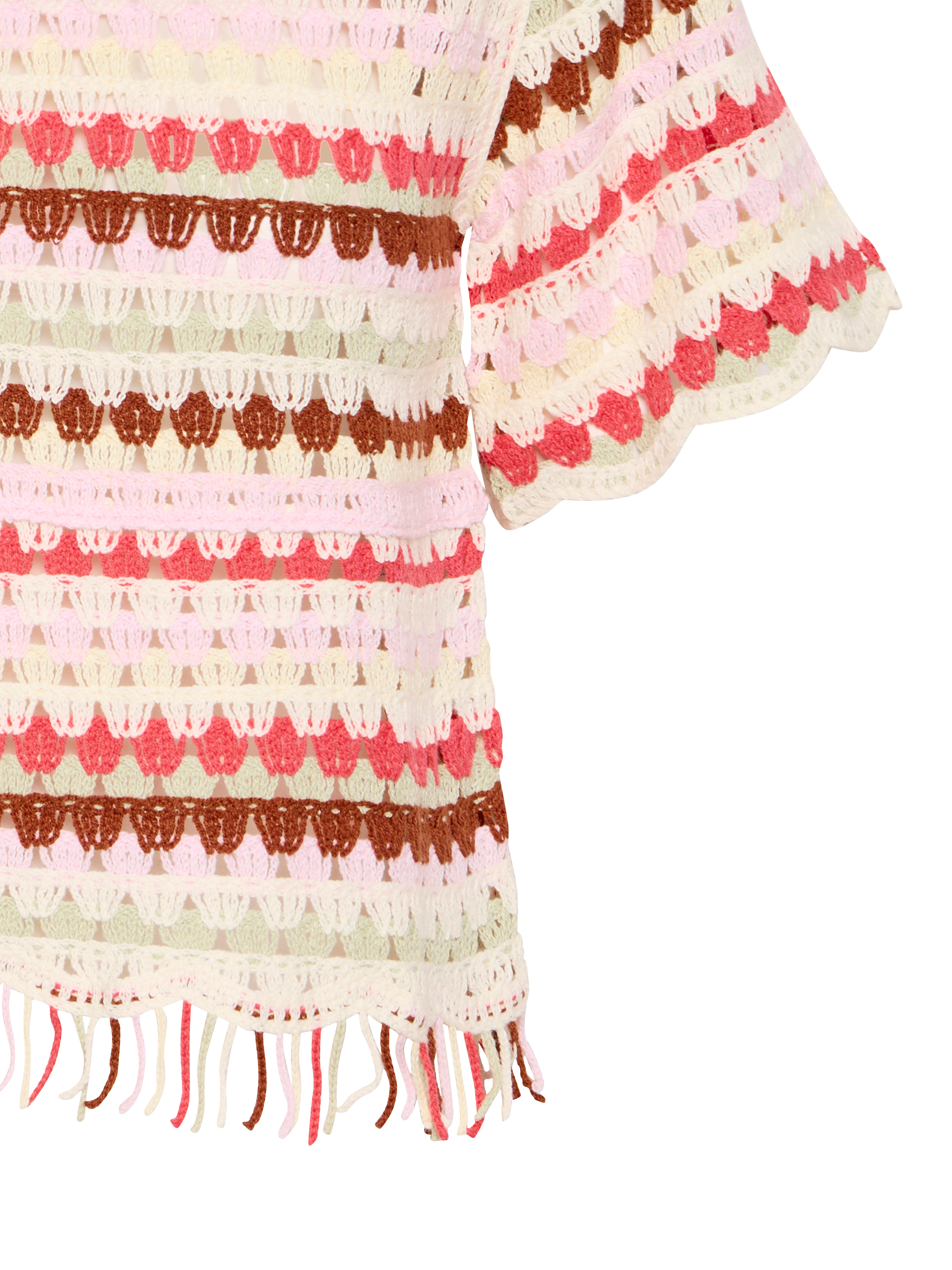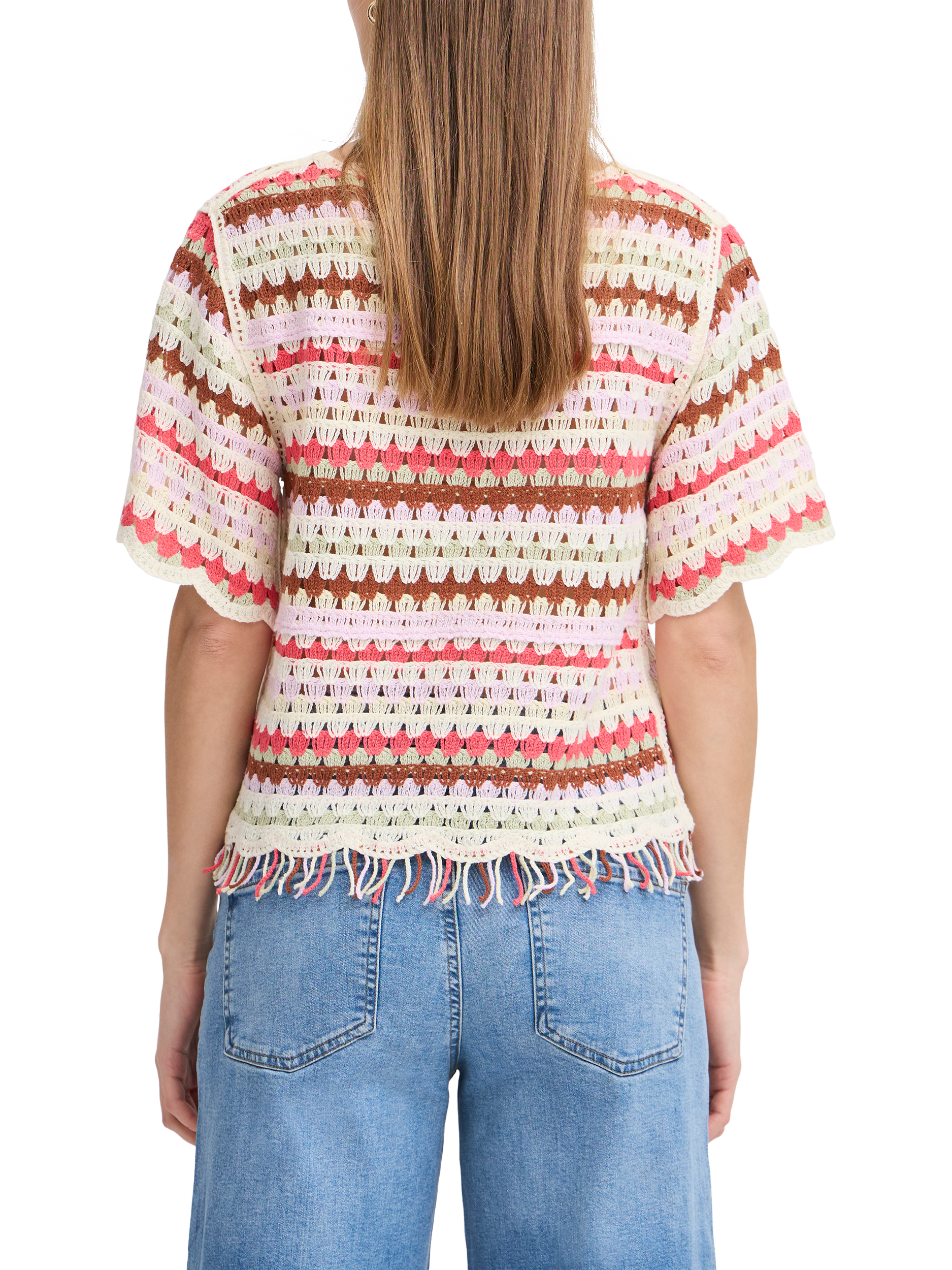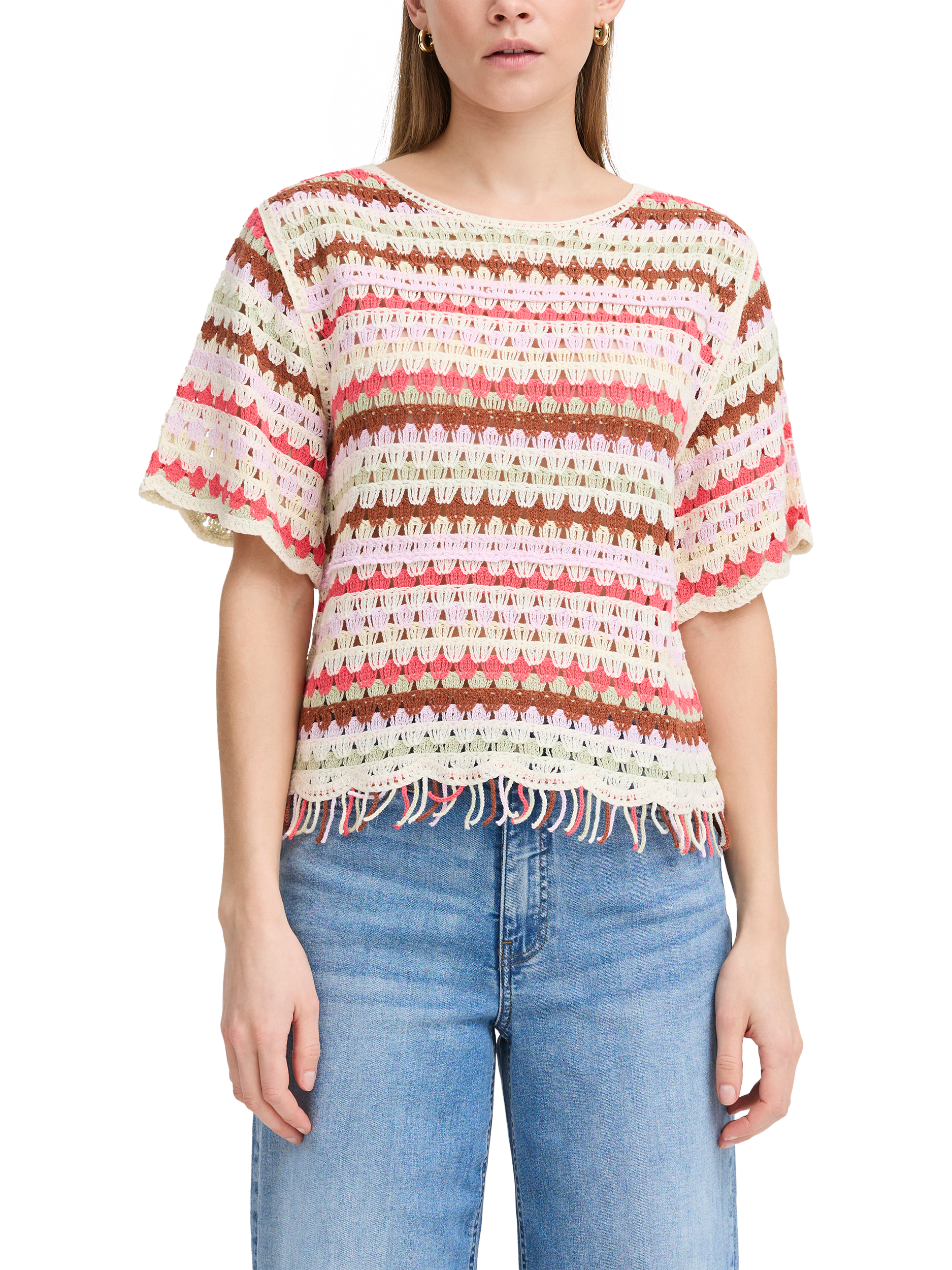 Nice and simple with a round neckline and short sleeves, this stripe crochet jumper by ICHI is whipped up from a cotton-blend fabric for its soft and long-lasting qualities.