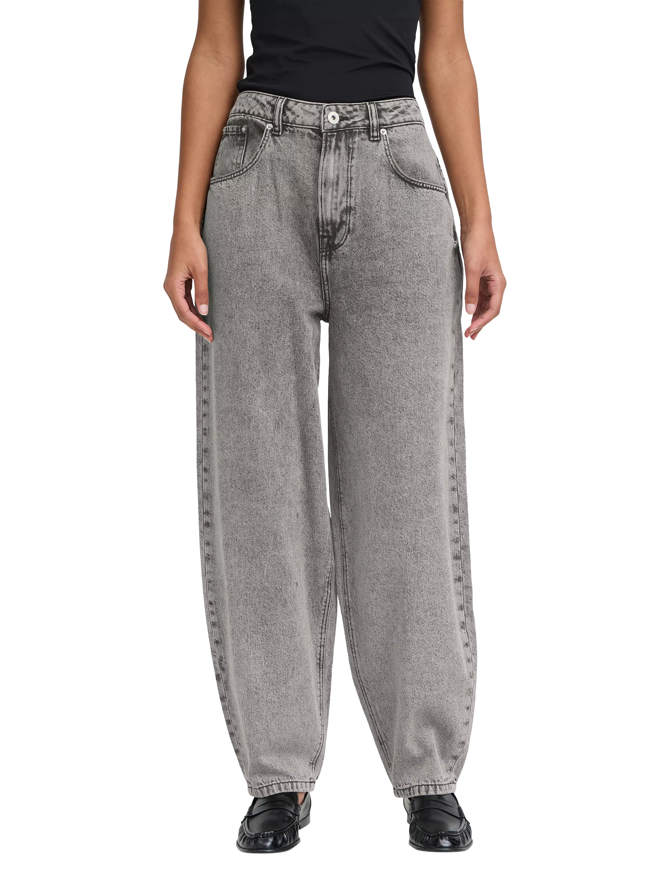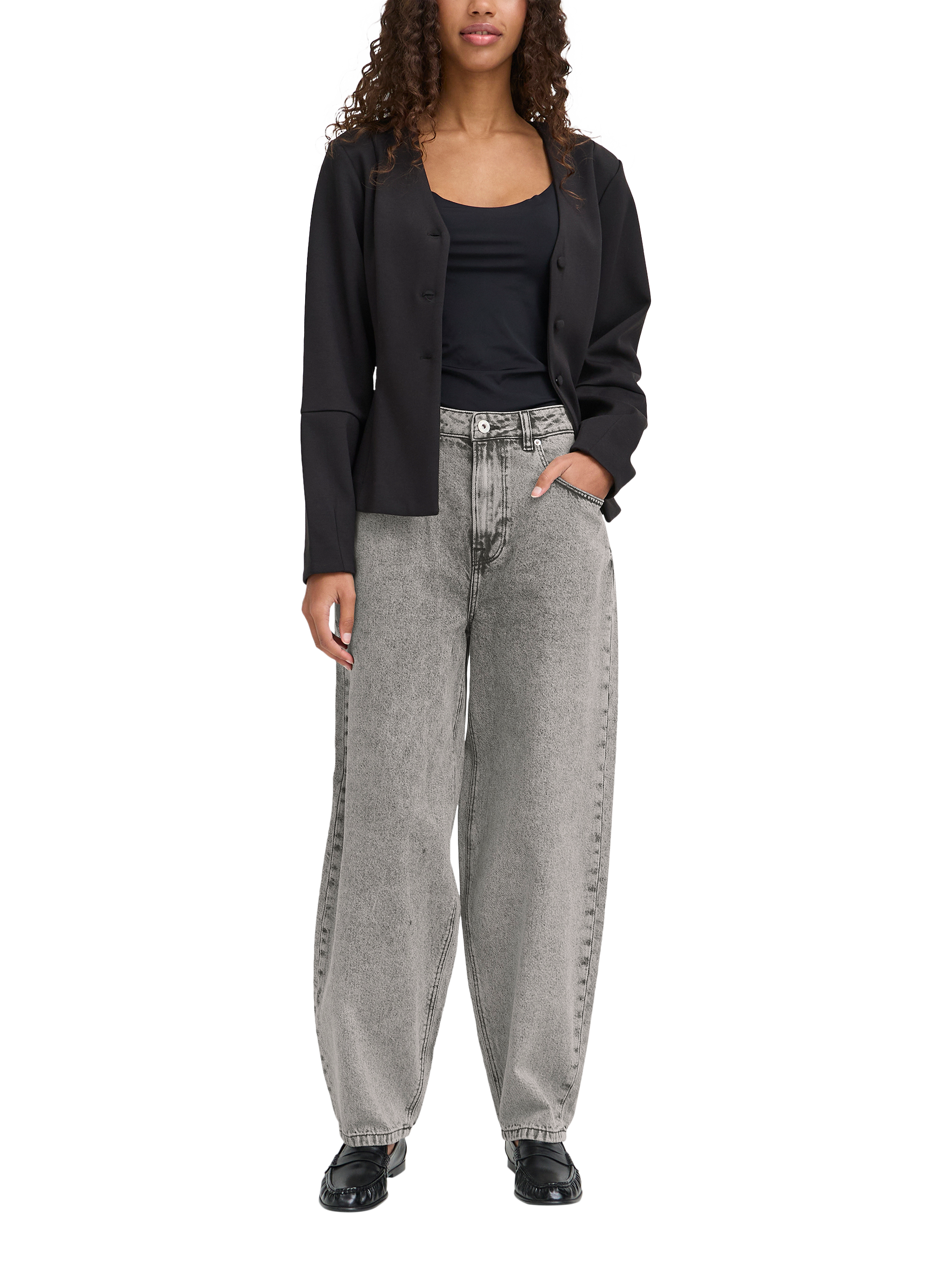A wide, curved pair of barrel leg jeans from ICHI. Made from pure cotton with a super comfortable high rise and a classic zip fly, they fall to a regular length.