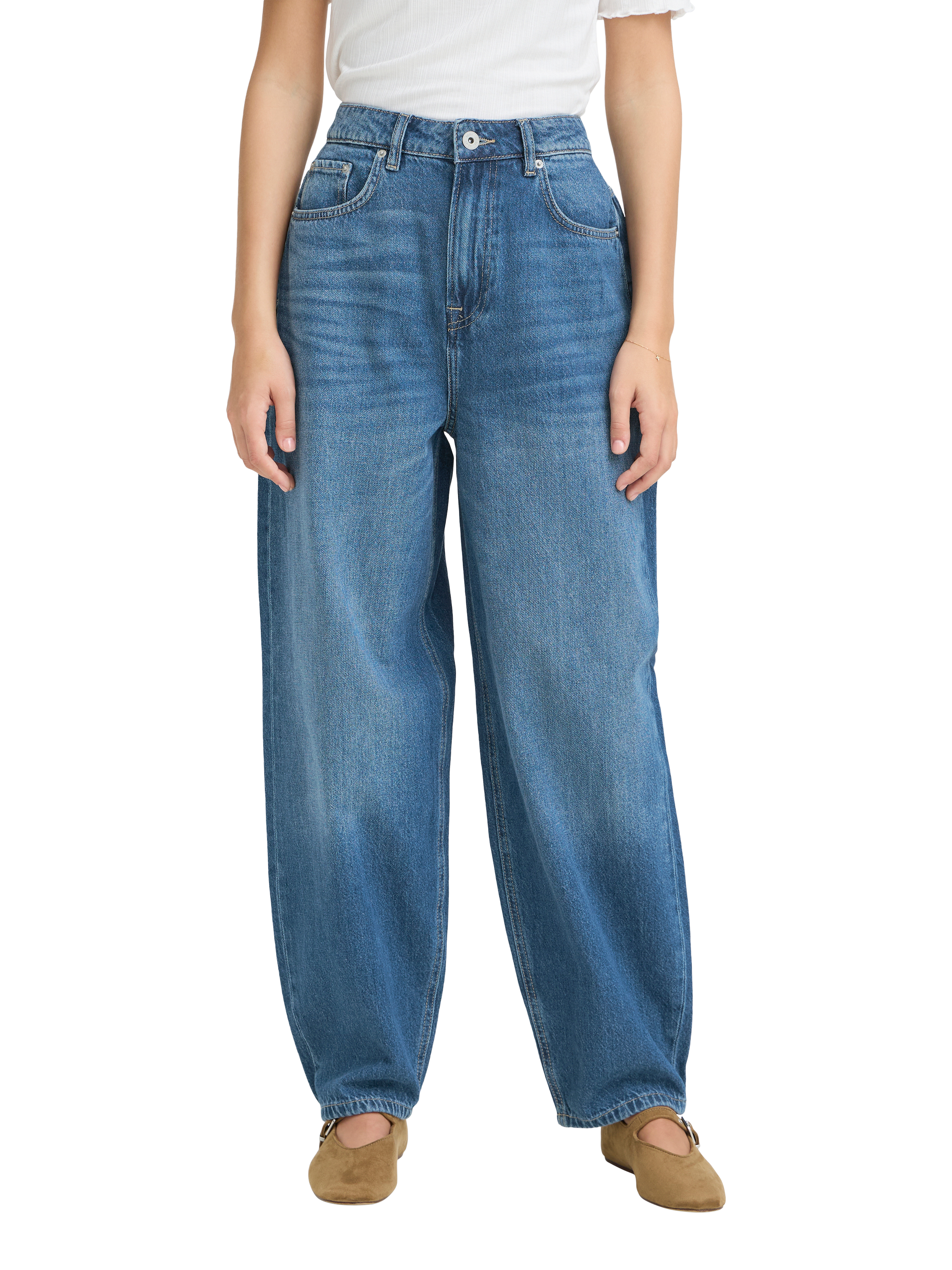 ICHIBerisel High Rise Balloon Jeans, Washed Mid Blue