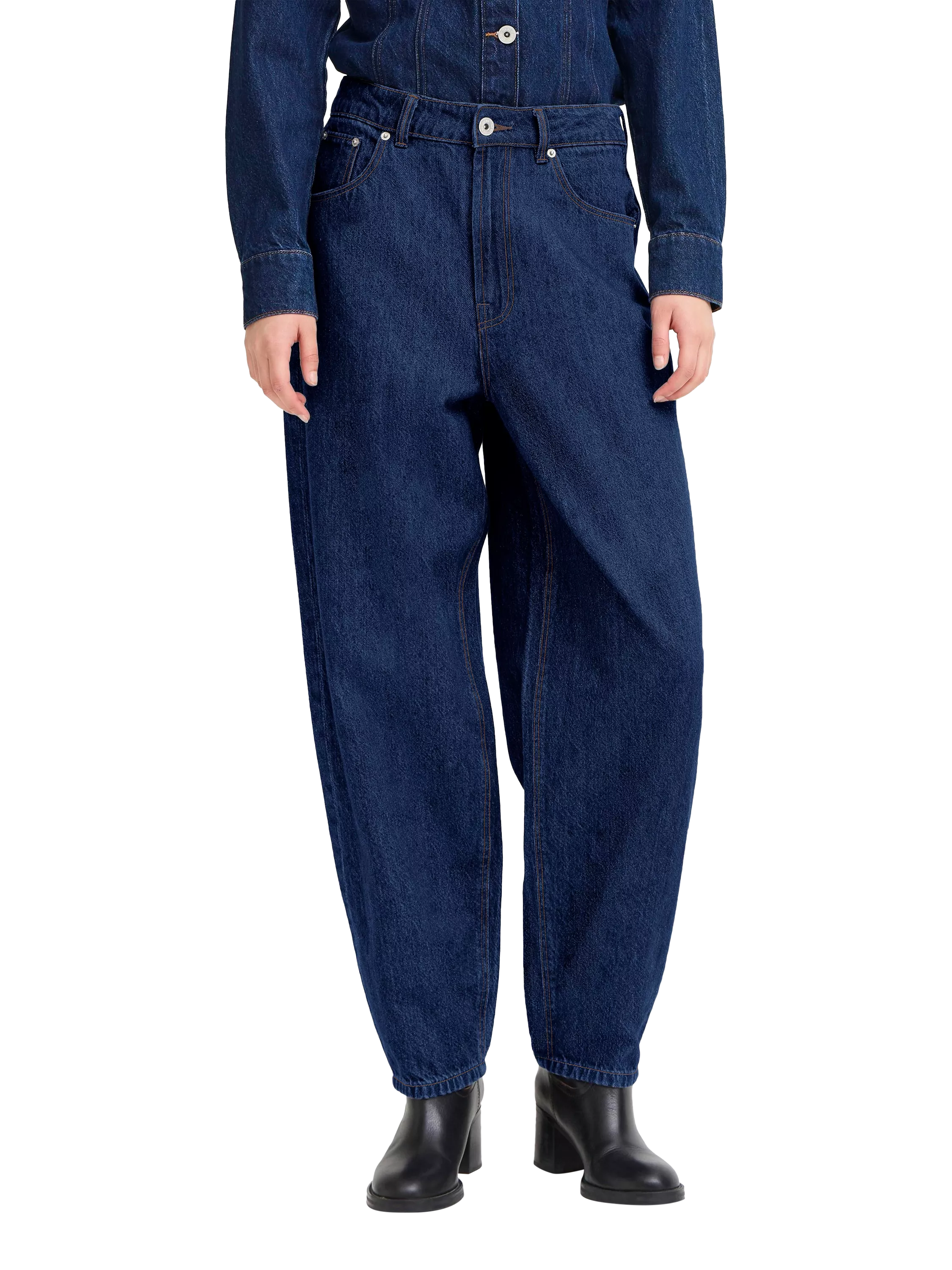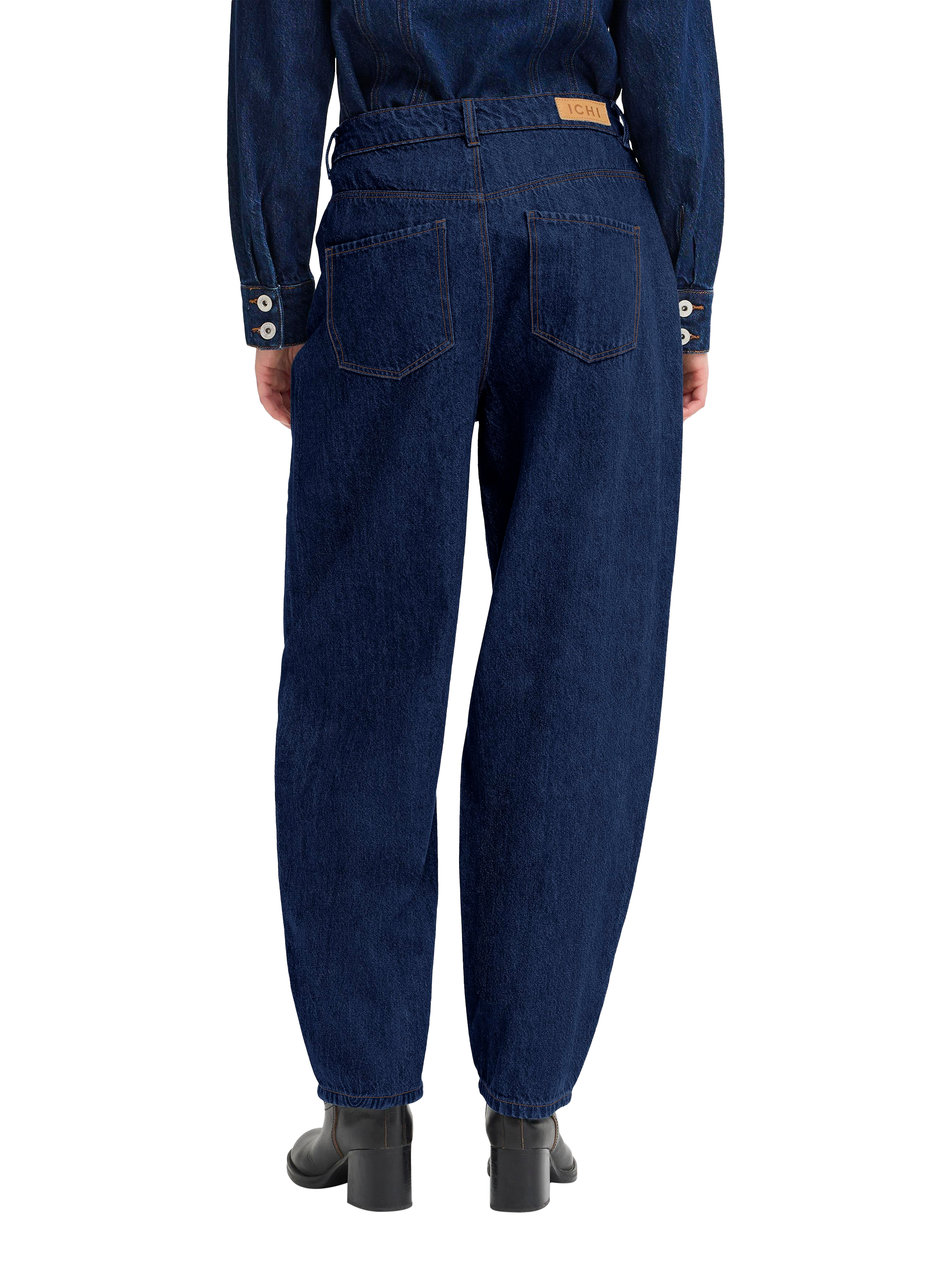 A pair of parachute leg jeans from ICHI. Made in denim with a mid rise and a zip fastening, they fall to a regular length.