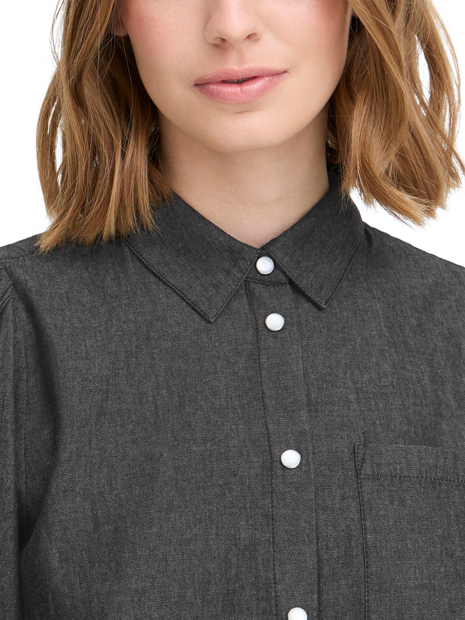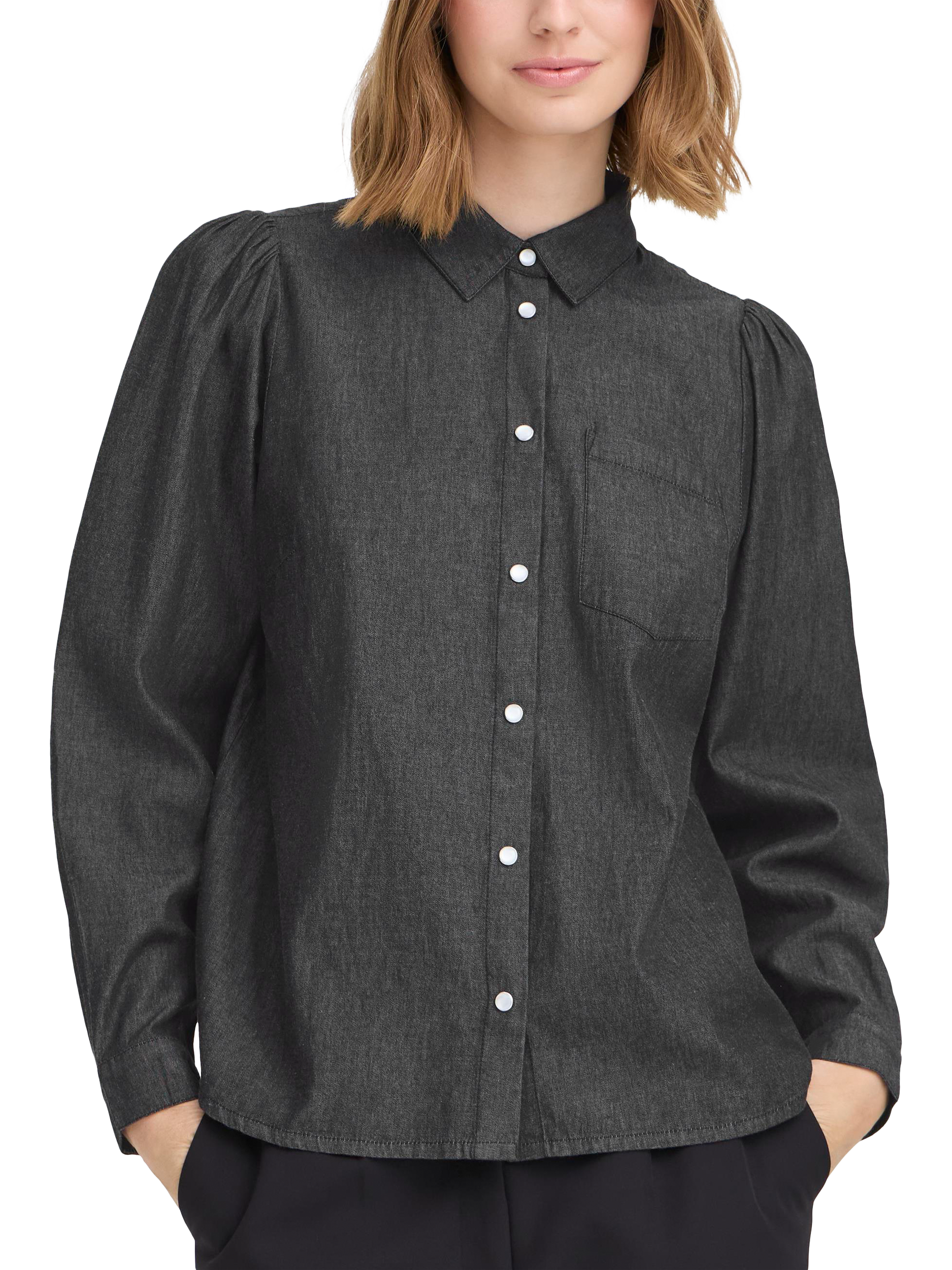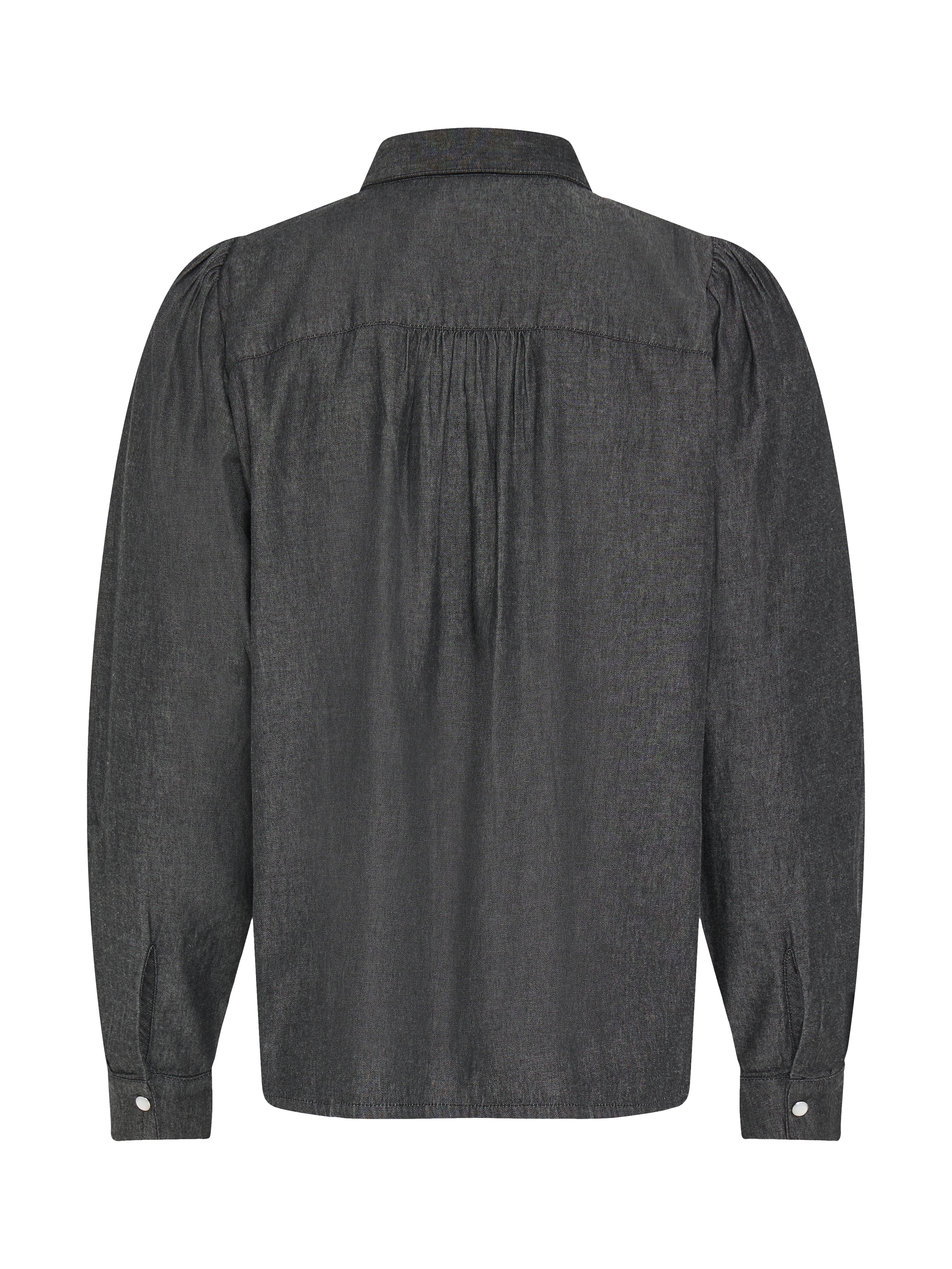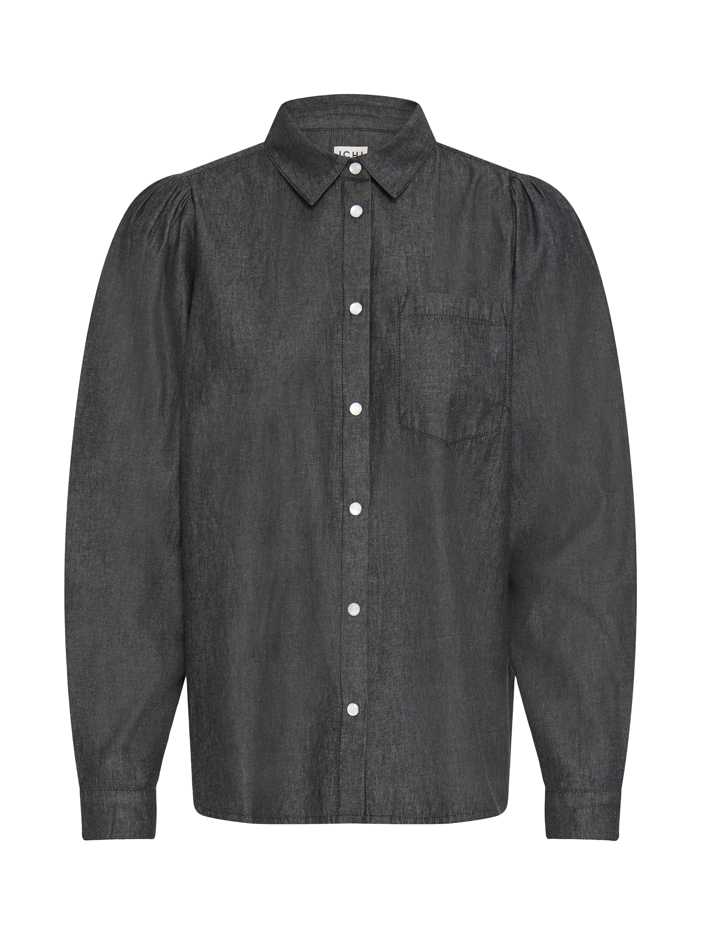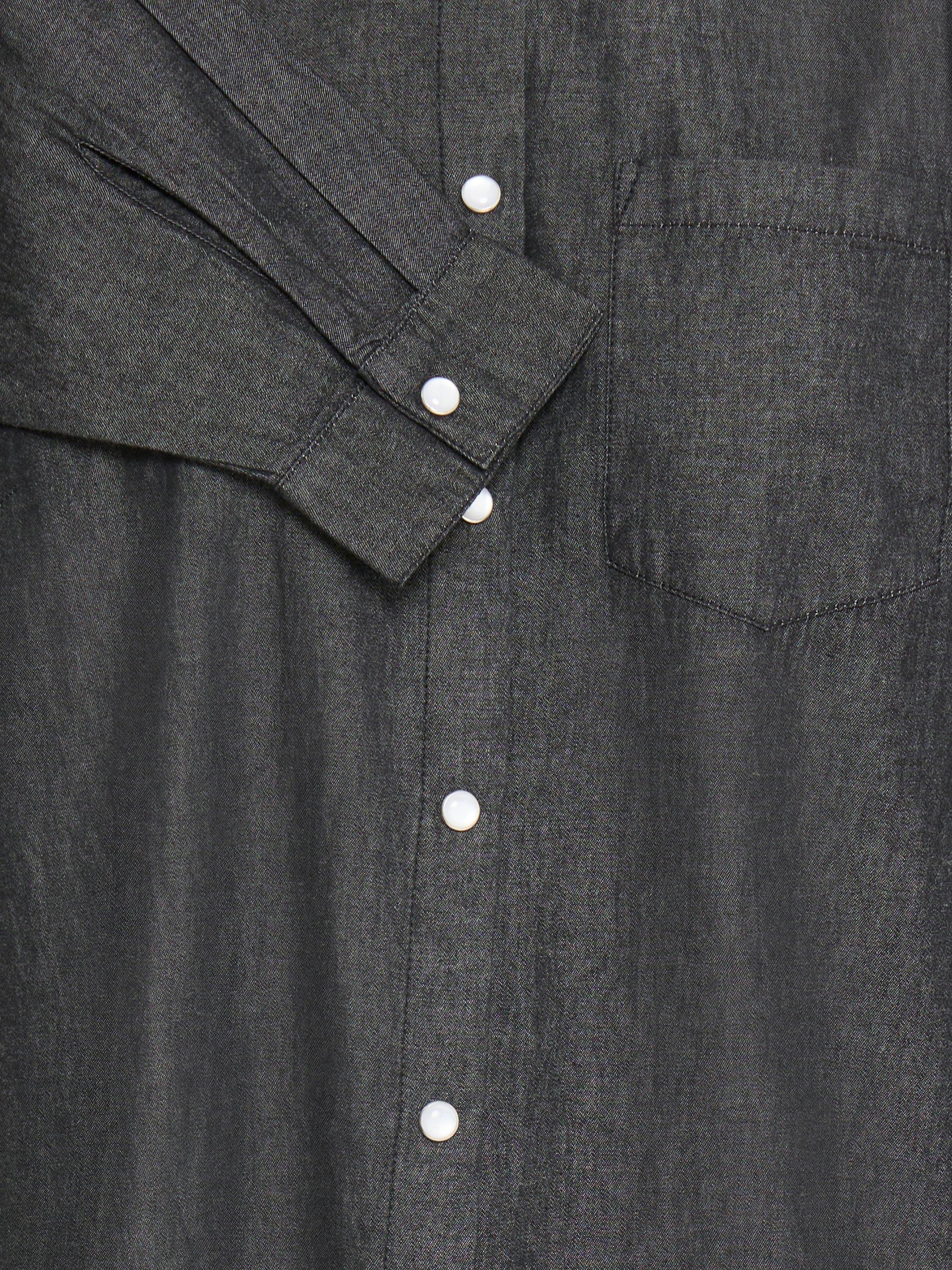 ICHIBorgie Collared Long Sleeve Shirt, Washed Black