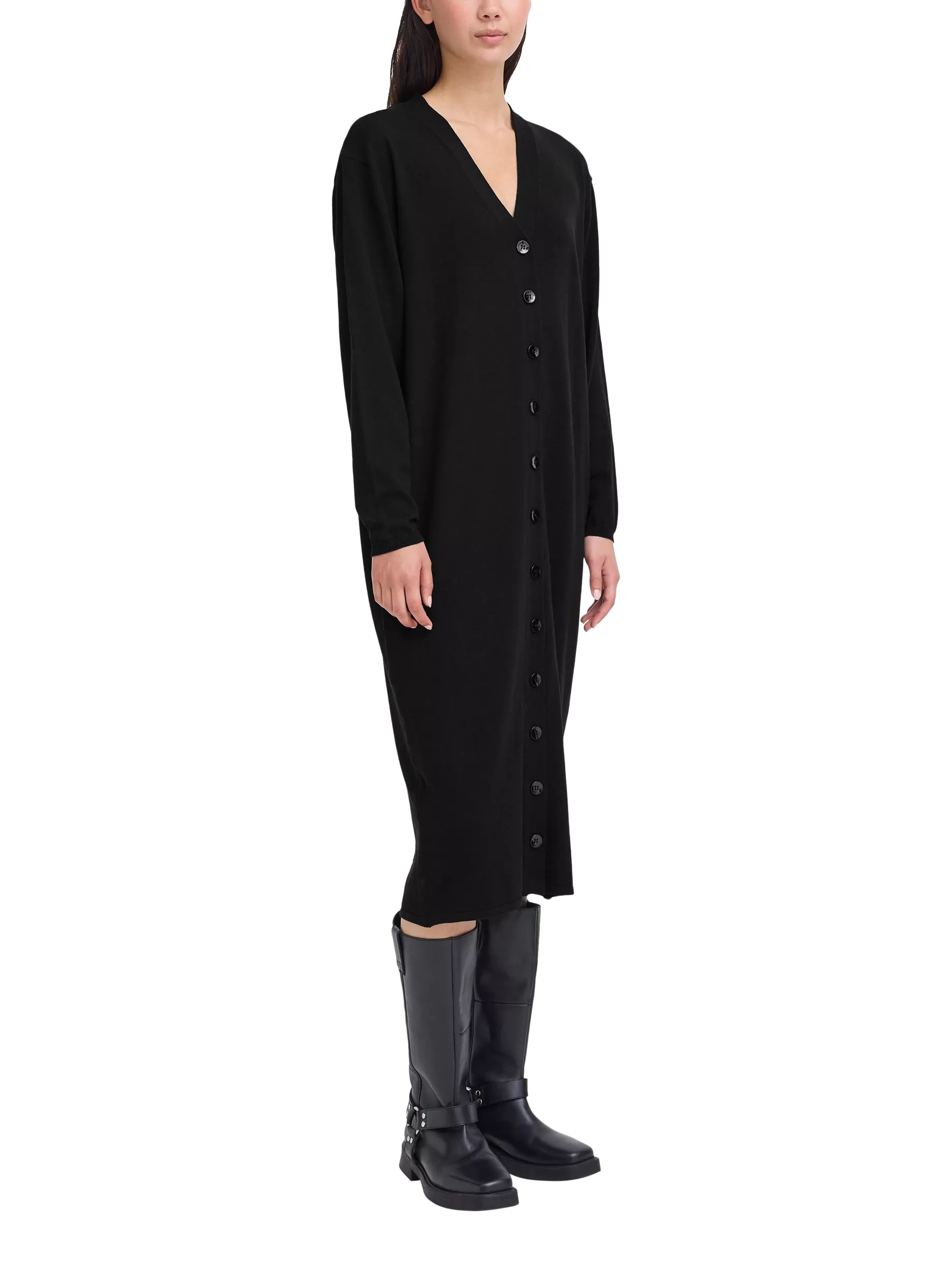 One to cosy up in. This long sleeved midi dress from ICHI has a V-neckline whilst the plain colour means it goes with all your accessories.
