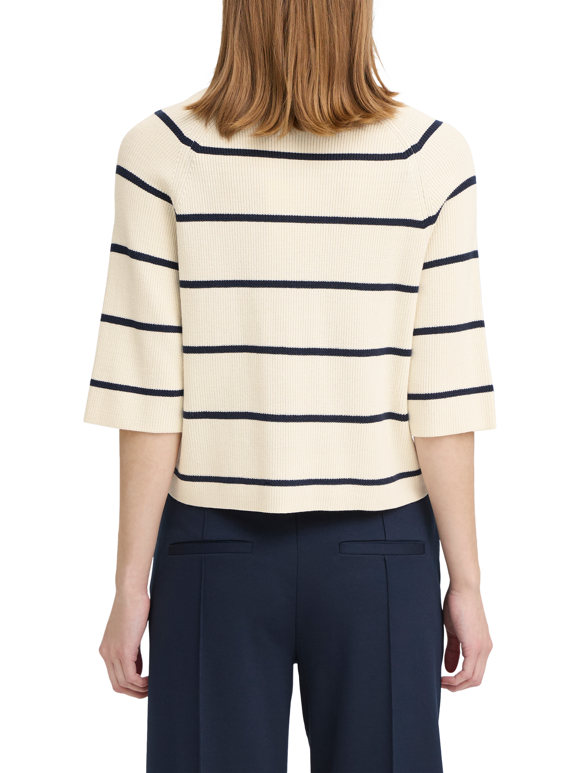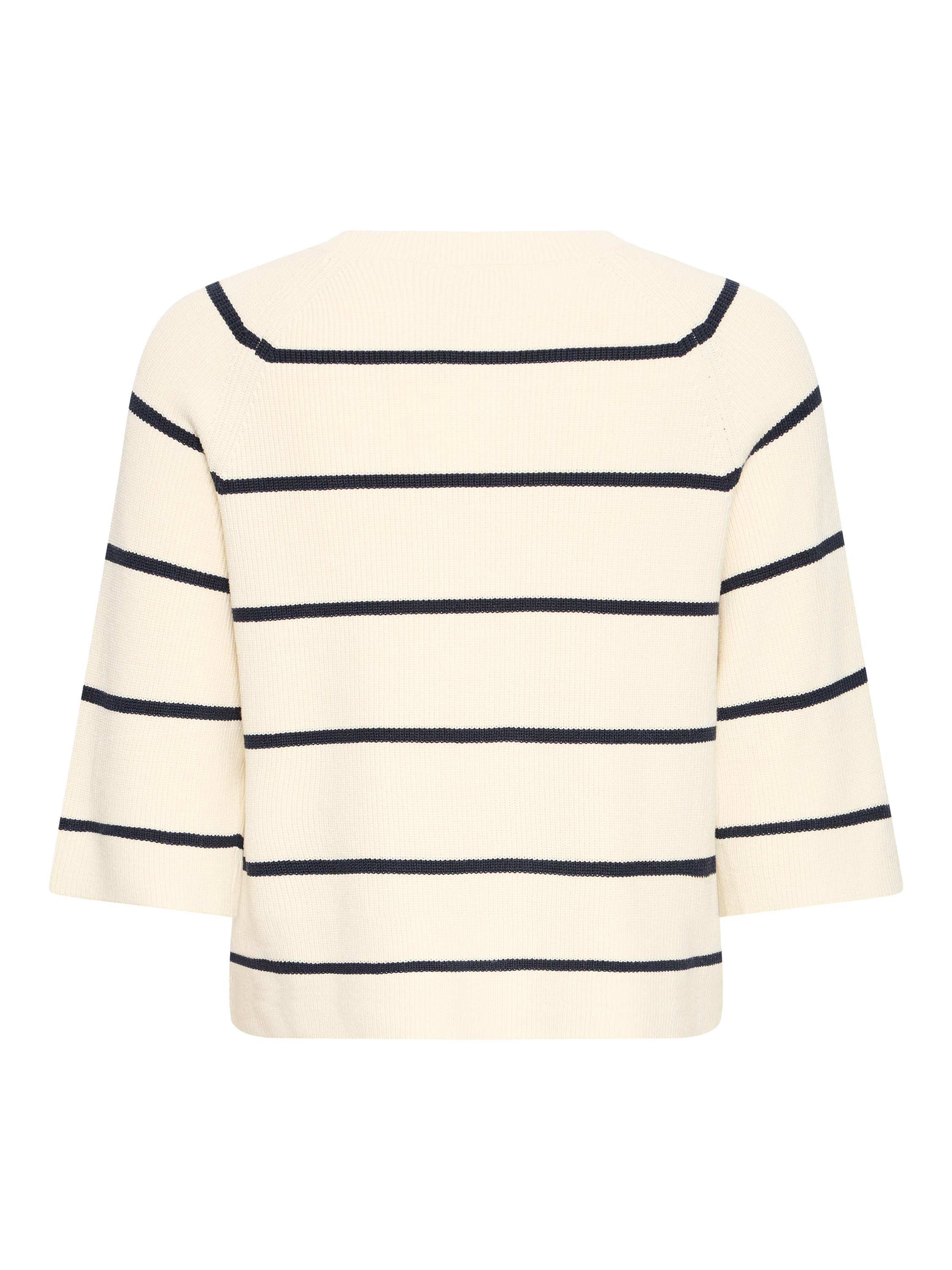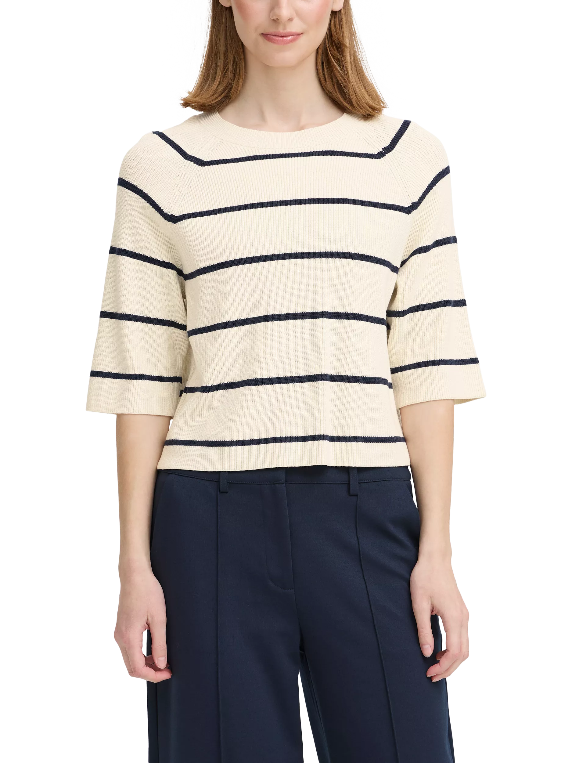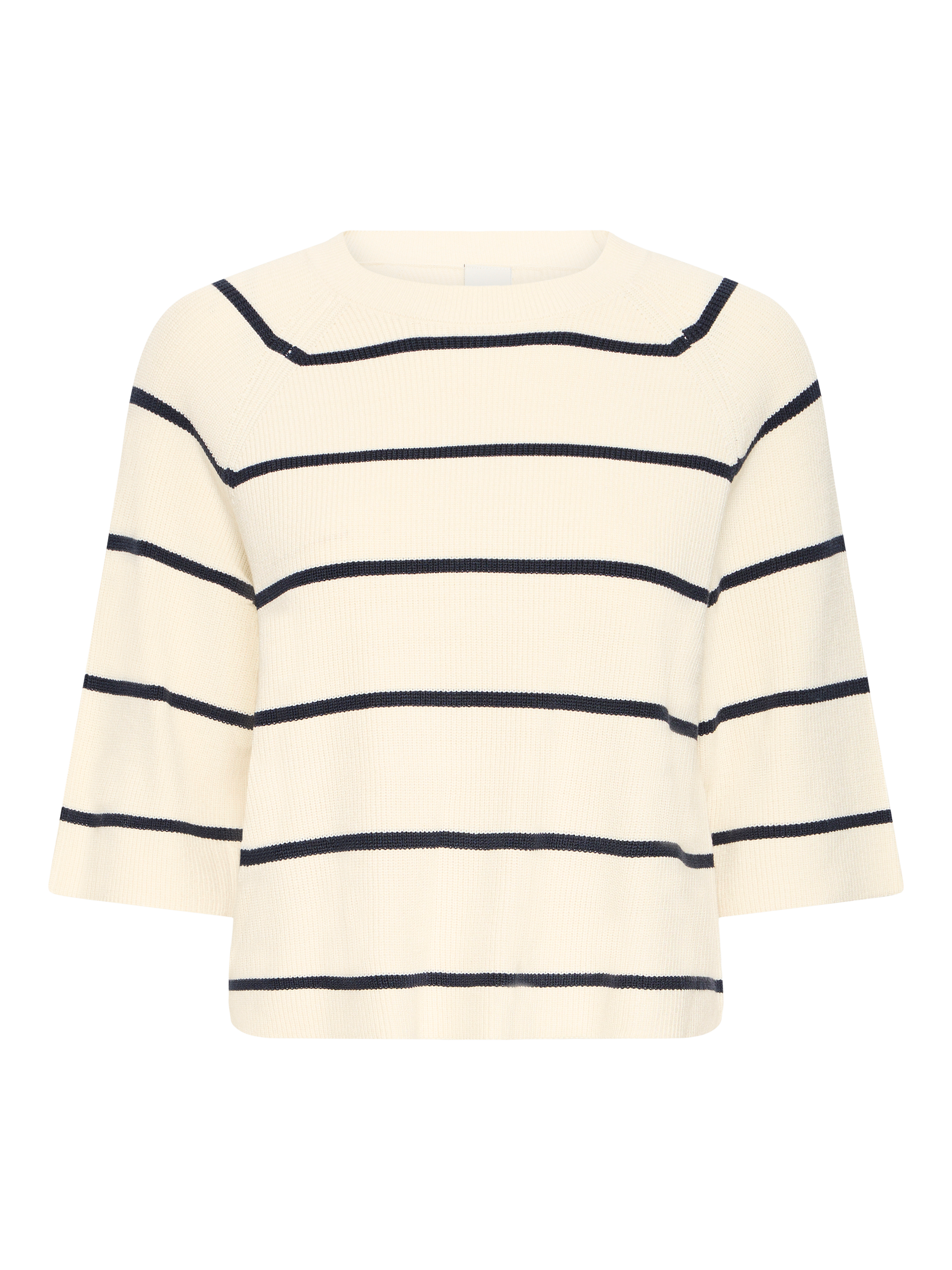 This boxy-fit striped ICHI jumper keeps you comfortable throughout the day with its soft viscose blend, three quarter sleeves, and classic crew neck. Finished in a plain design that's easy to pair with anything.