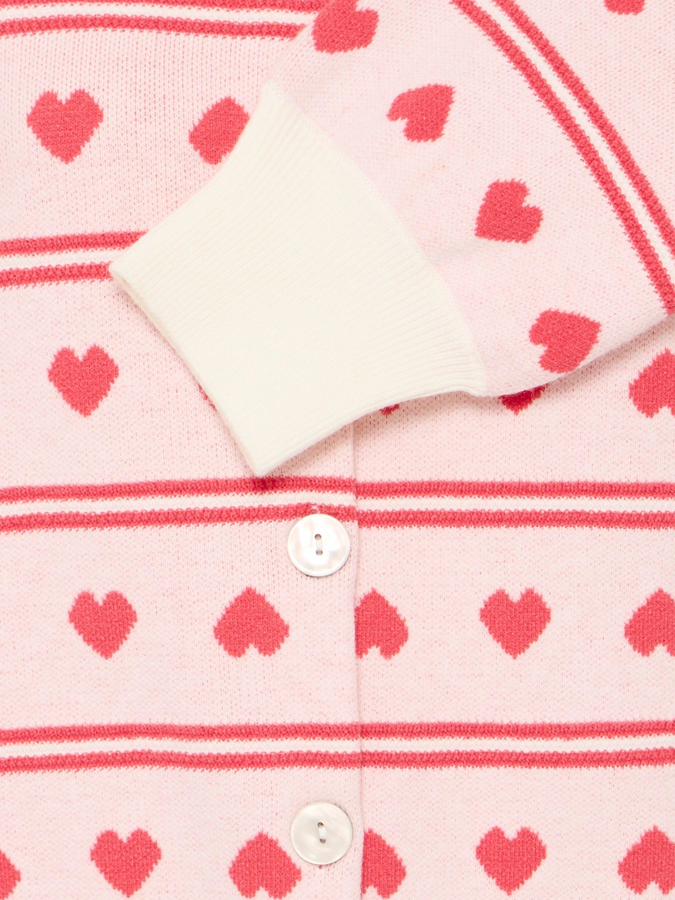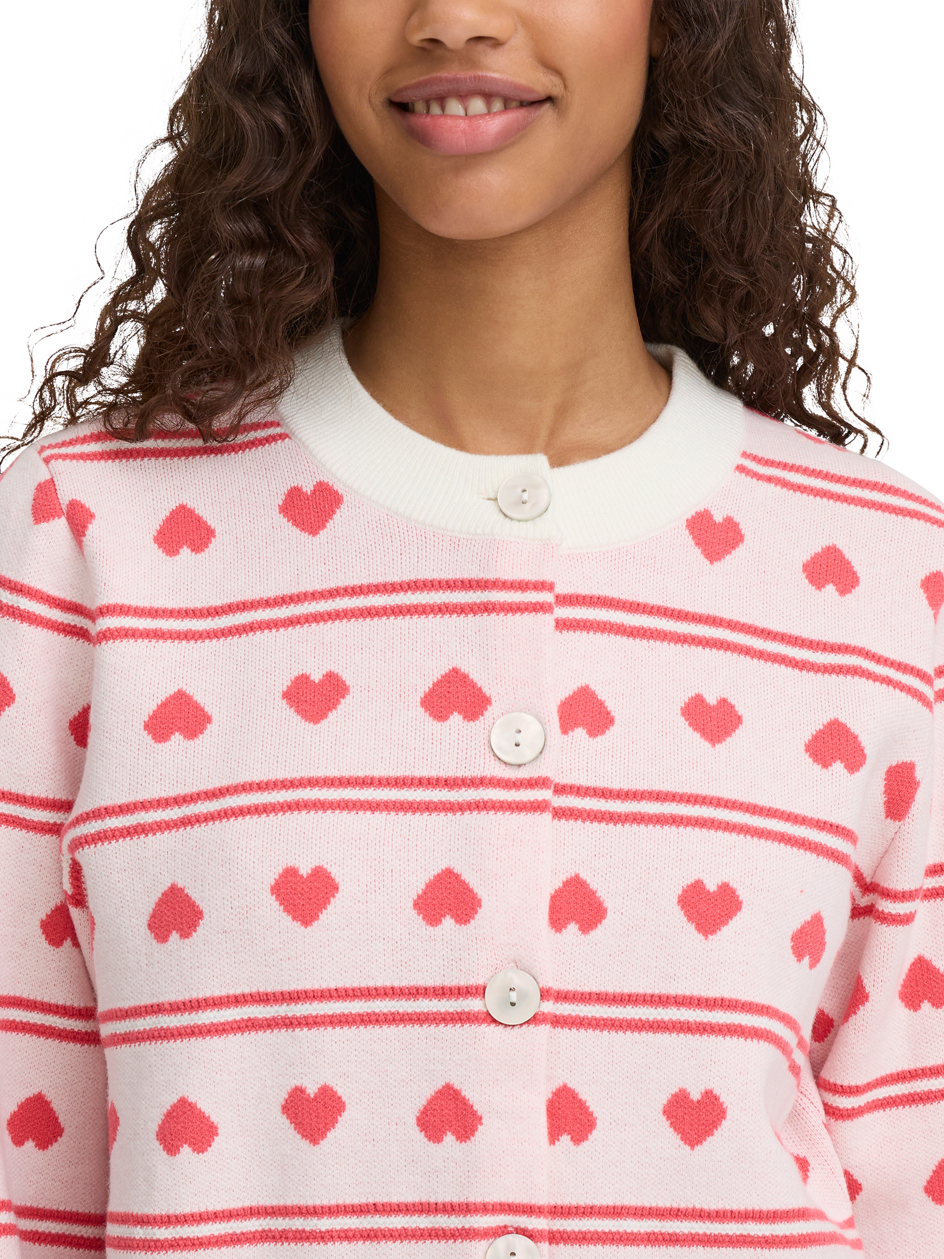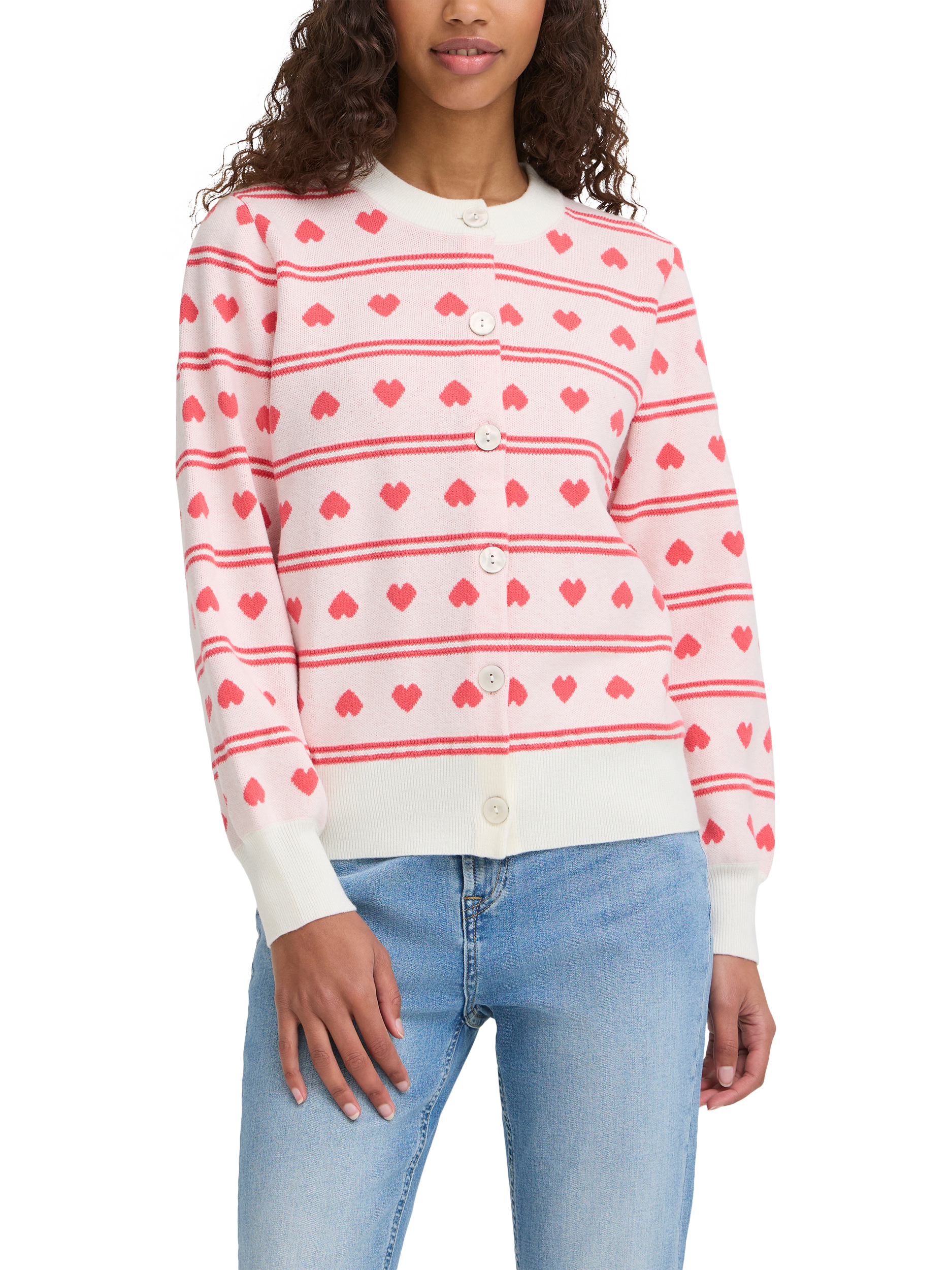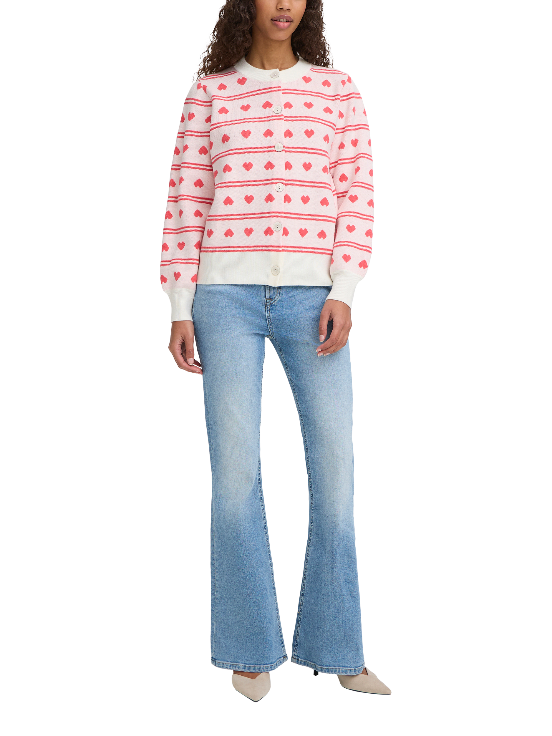A heart-patterned cardigan by ICHI. Its medium weight keeps you comfortable, while the soft knit and relaxed fit let you wear it your way all day.