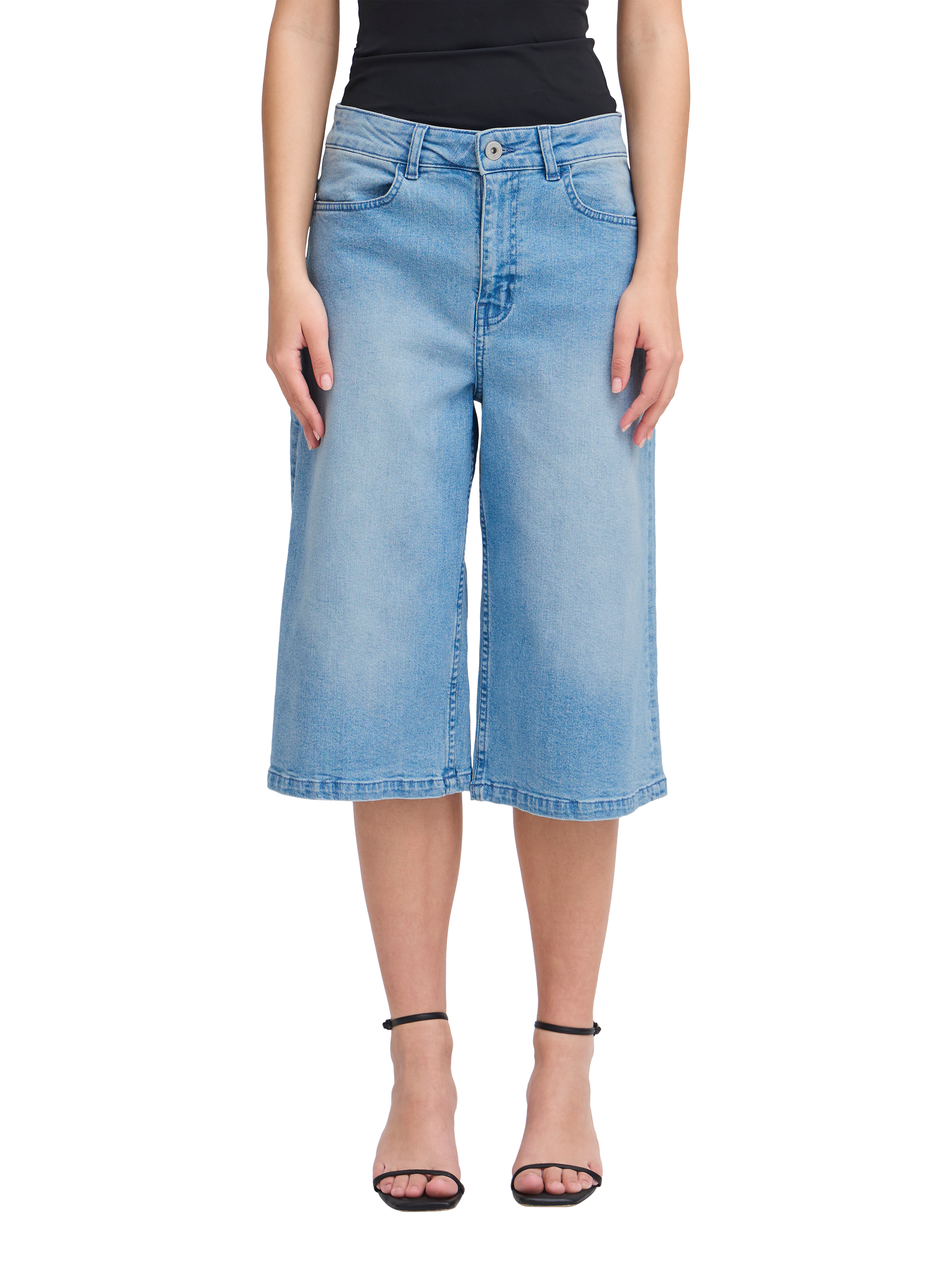 An effortless choice for when the temperature rises, these high-waisted shorts from ICHI are spun from a cotton-blend and fall to the knee. Designed for casual elegance on relaxed days, accent with a Panama hat, an oversized tee and sandals.