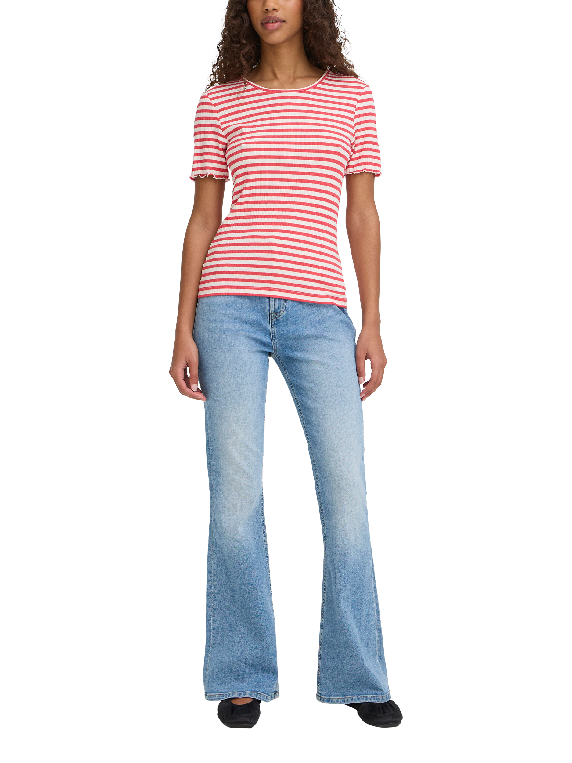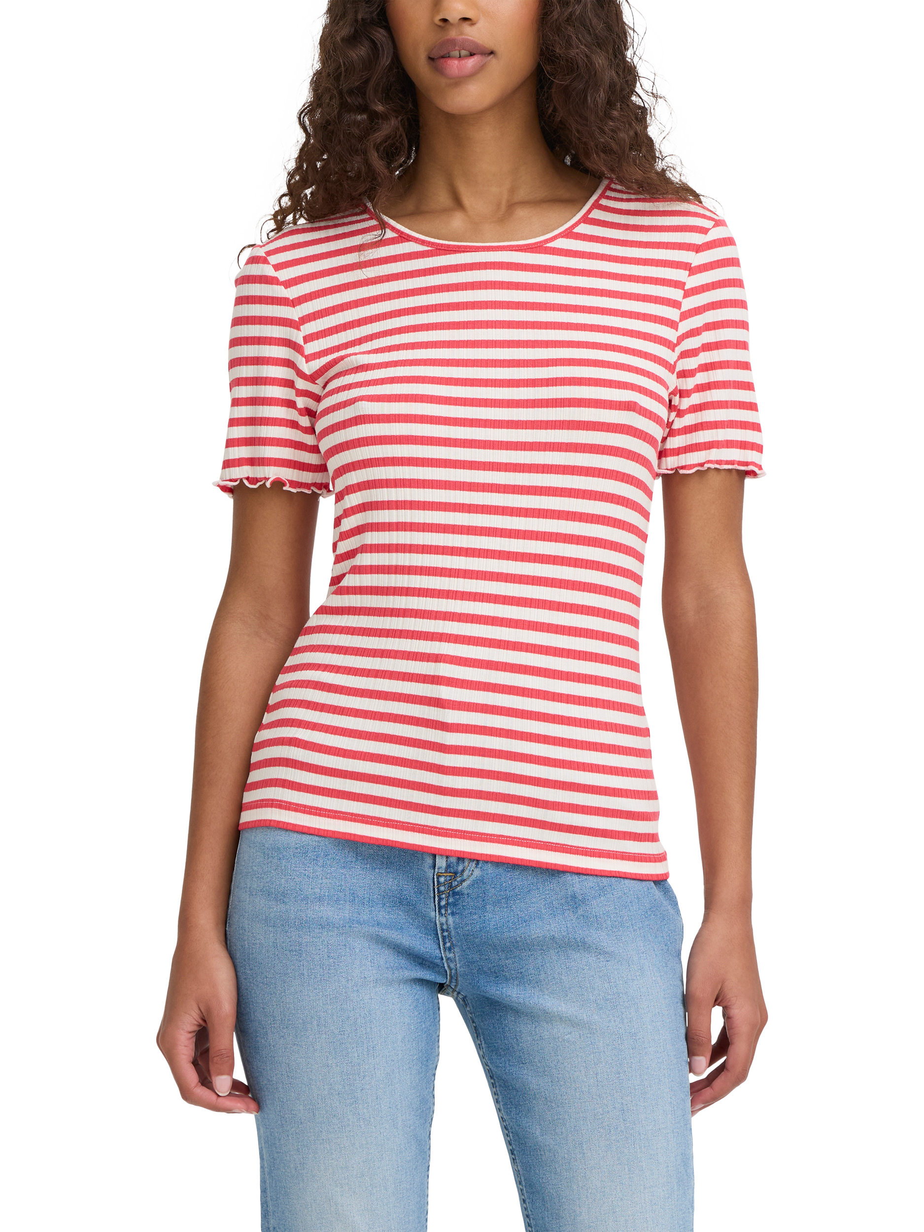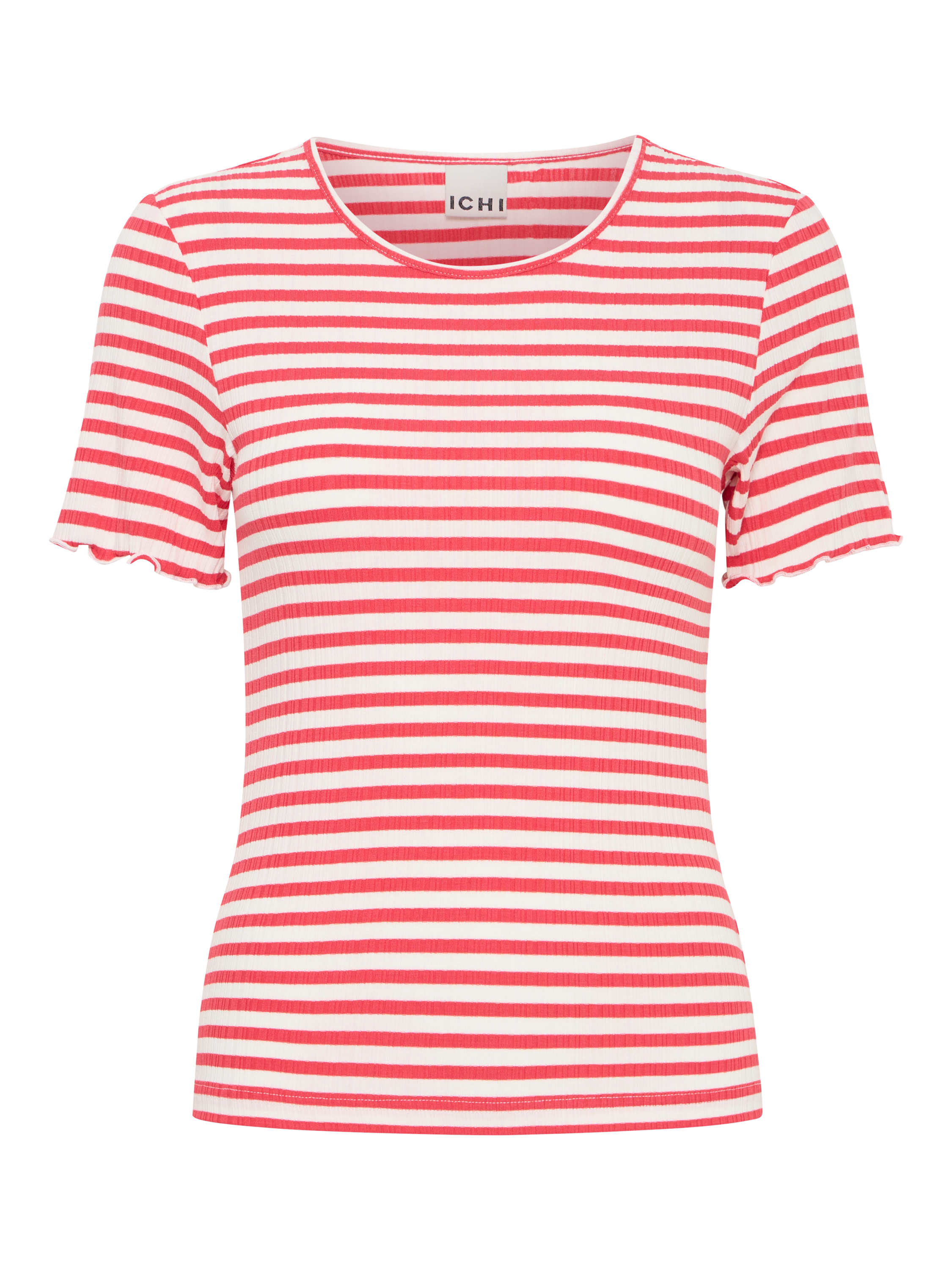 A softly ribbed T-shirt from ICHI, made from a soft viscose blend in a fitted shape. Featuring a gentle round neck and short sleeves, it's designed with neat stripes for modern ease.