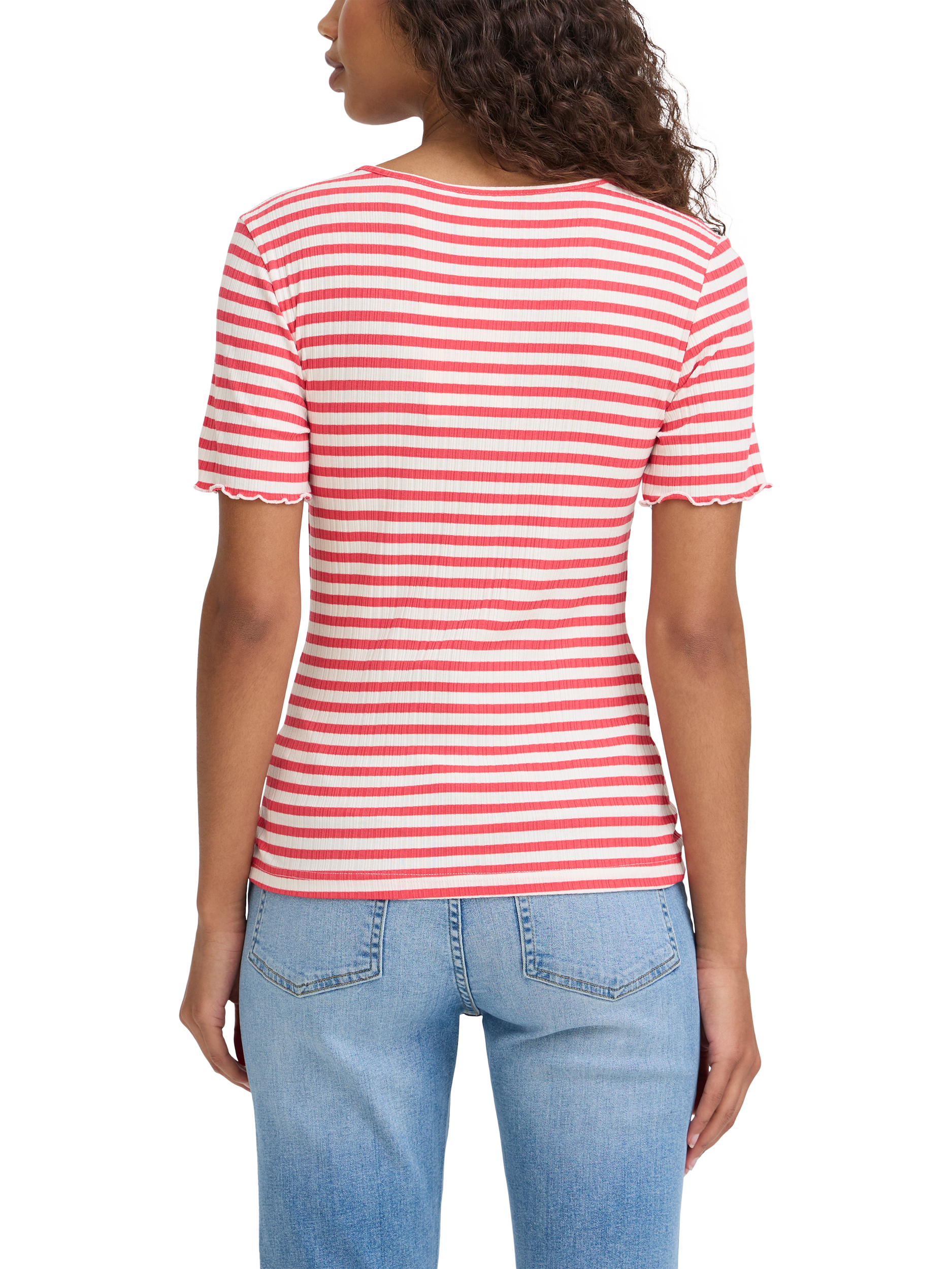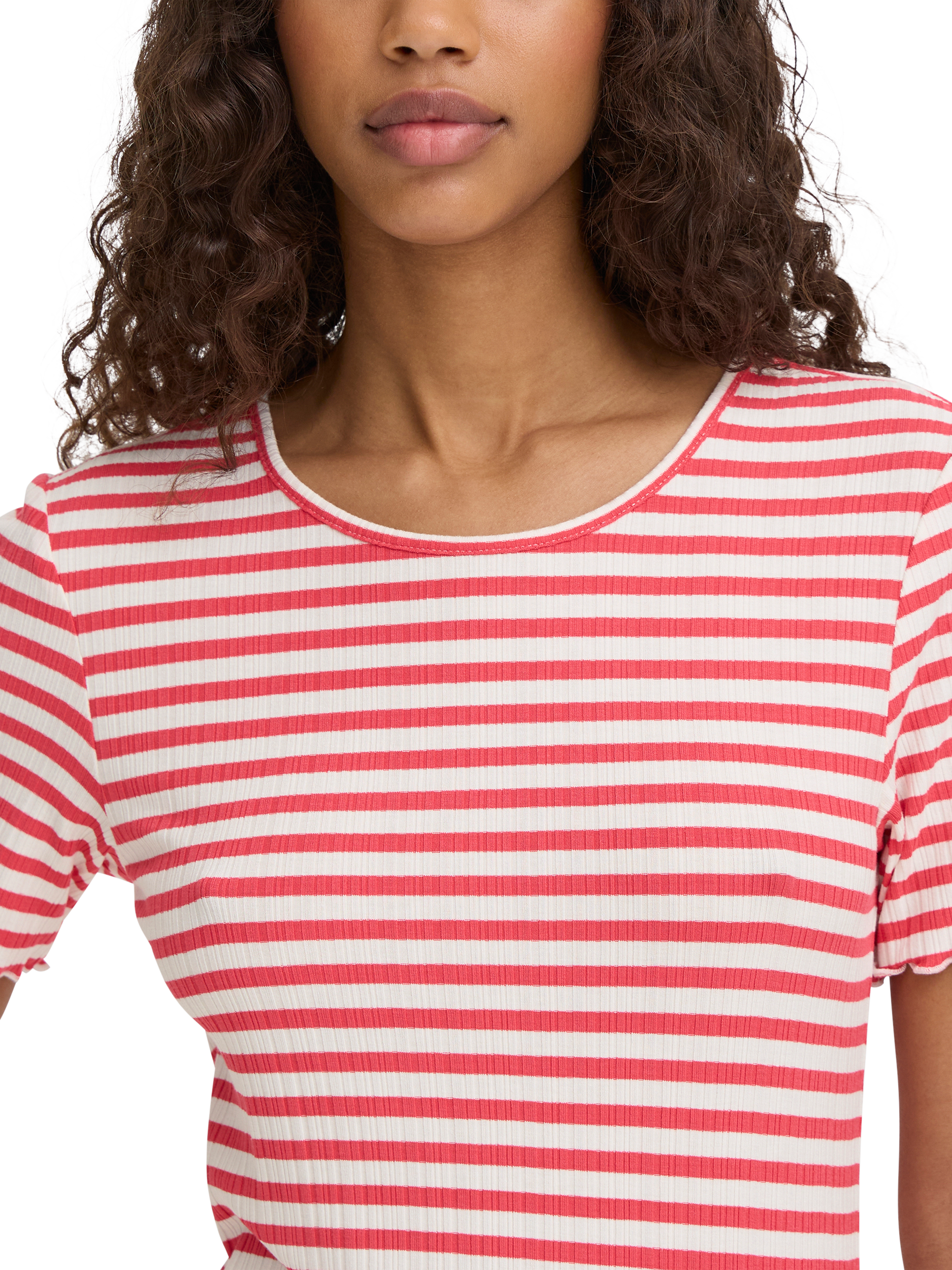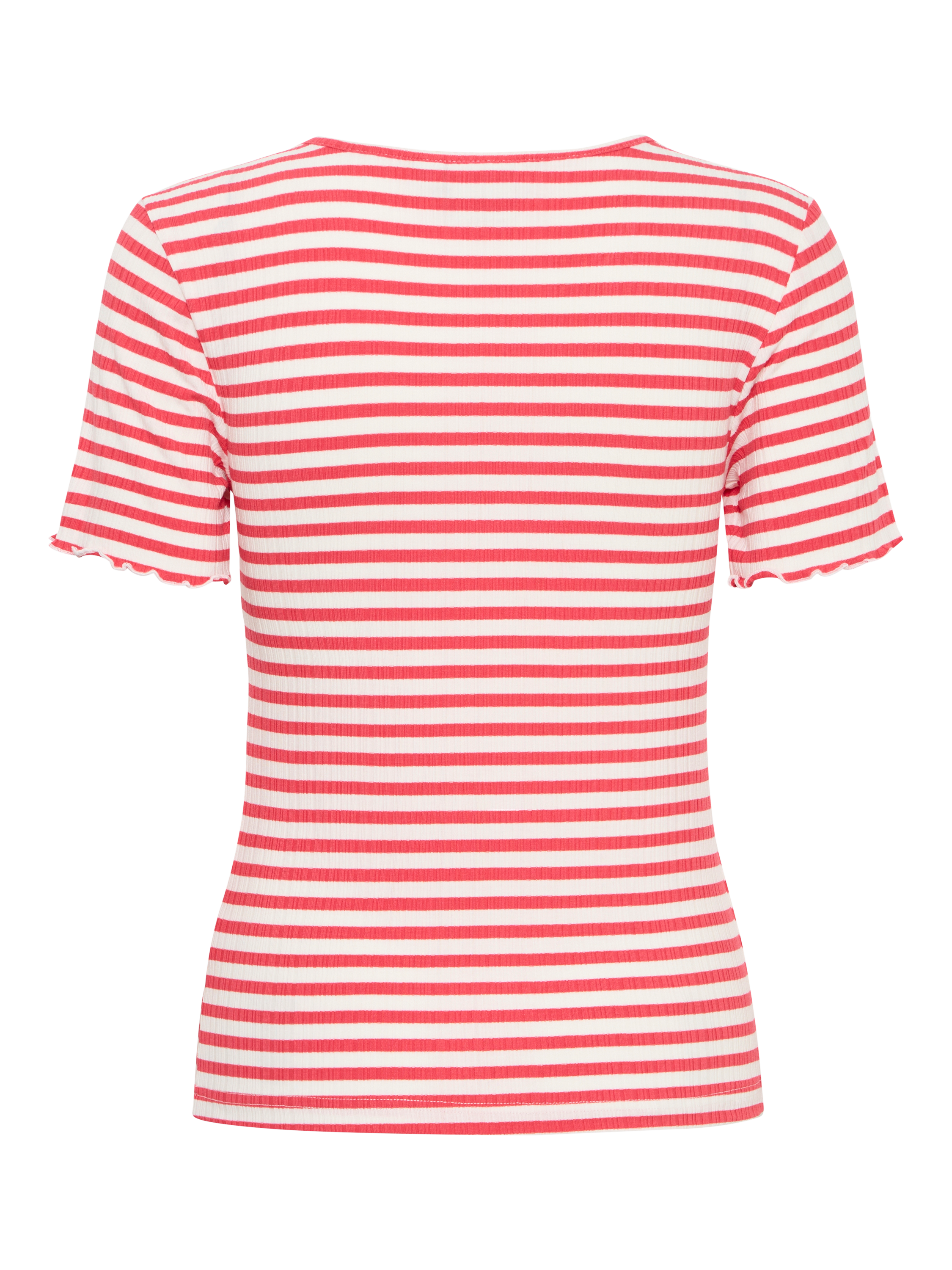 A softly ribbed T-shirt from ICHI, made from a soft viscose blend in a fitted shape. Featuring a gentle round neck and short sleeves, it's designed with neat stripes for modern ease.