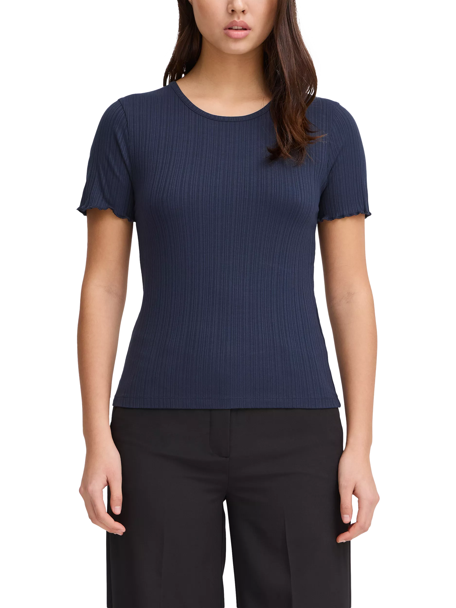 Bolstering your daytime collection, this t-shirt by ICHI makes for the perfect companion to patterned layers. Cut with a fuss-free round neck and short sleeves, it is made from a light yet durable blended fabric.