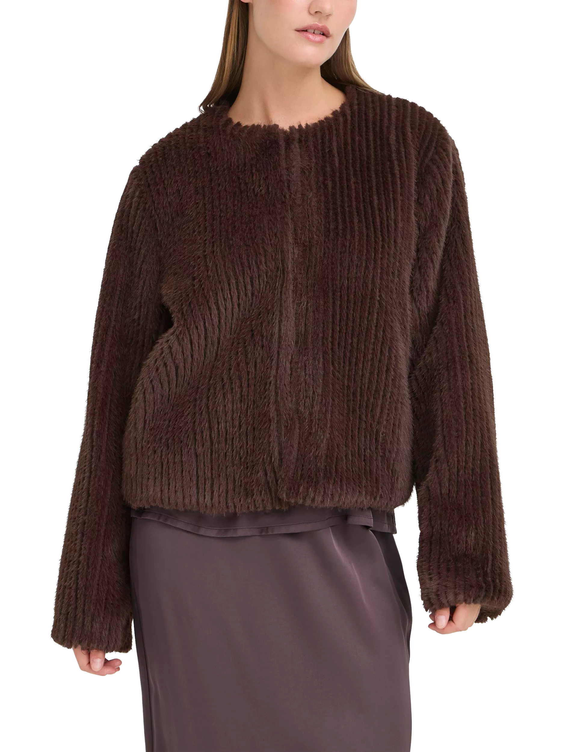 All about texture, this faux fur coat from ICHI sits at the hip for versatile coverage.