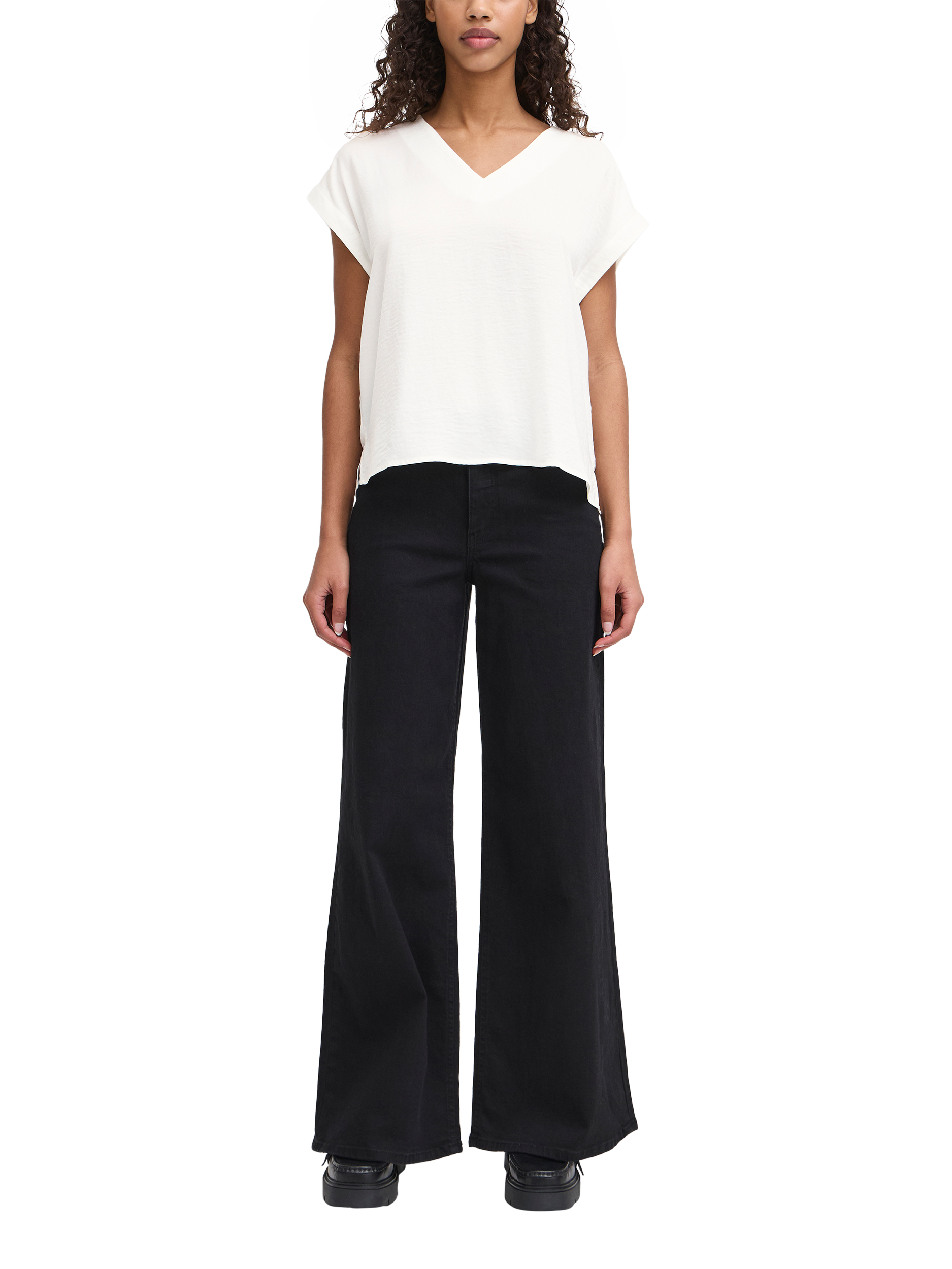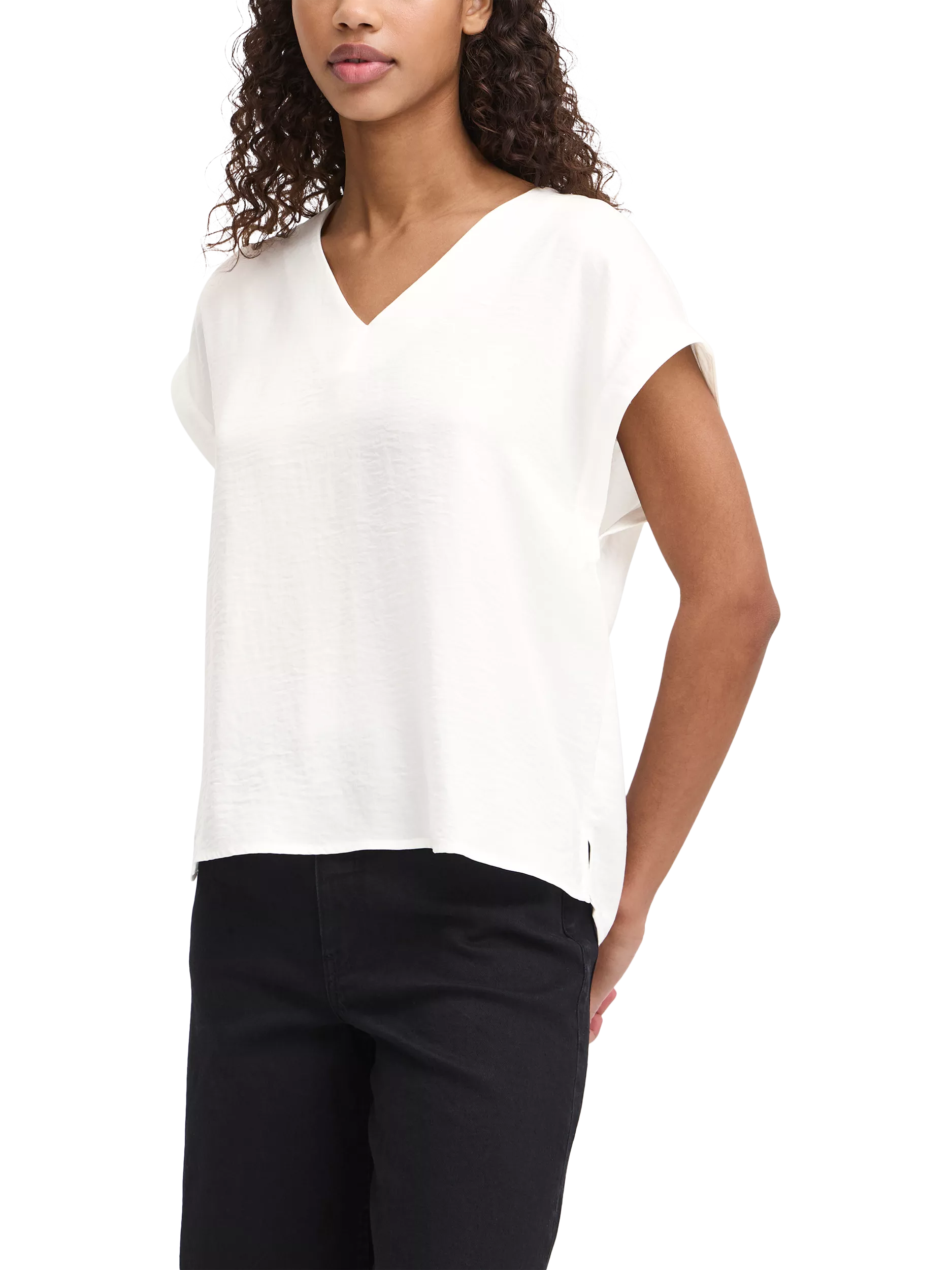 An essential addition to your wardrobe, this v-neck top from ICHI is free-from-fuss for timeless appeal. Framed with a classic v-neckline and short sleeves, it's ideal for relaxed daytime wear.