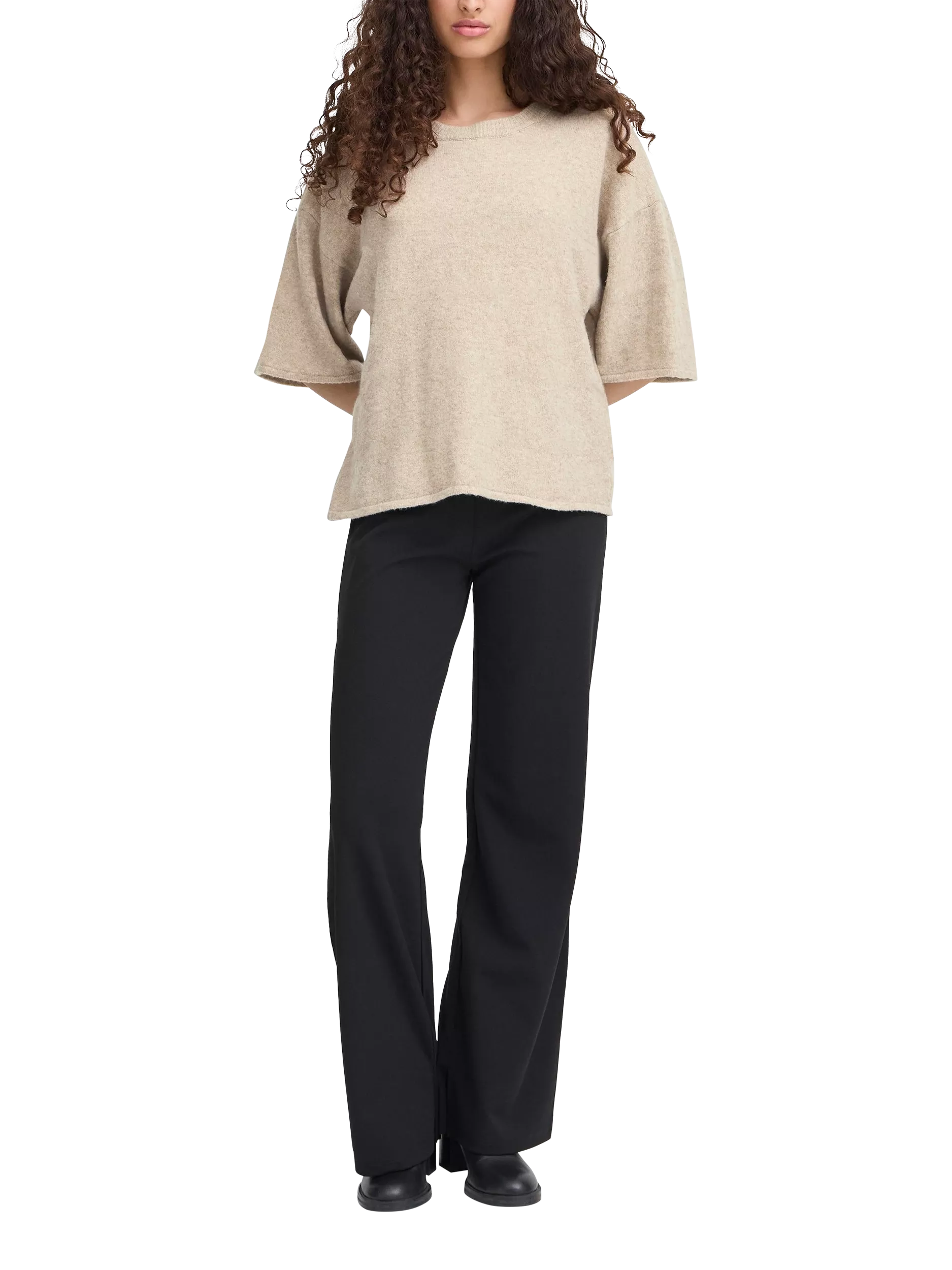 Layering up with a round neckline and short sleeves, this mid-weight striped jumper by ICHI is blended with wool for cosy wear.