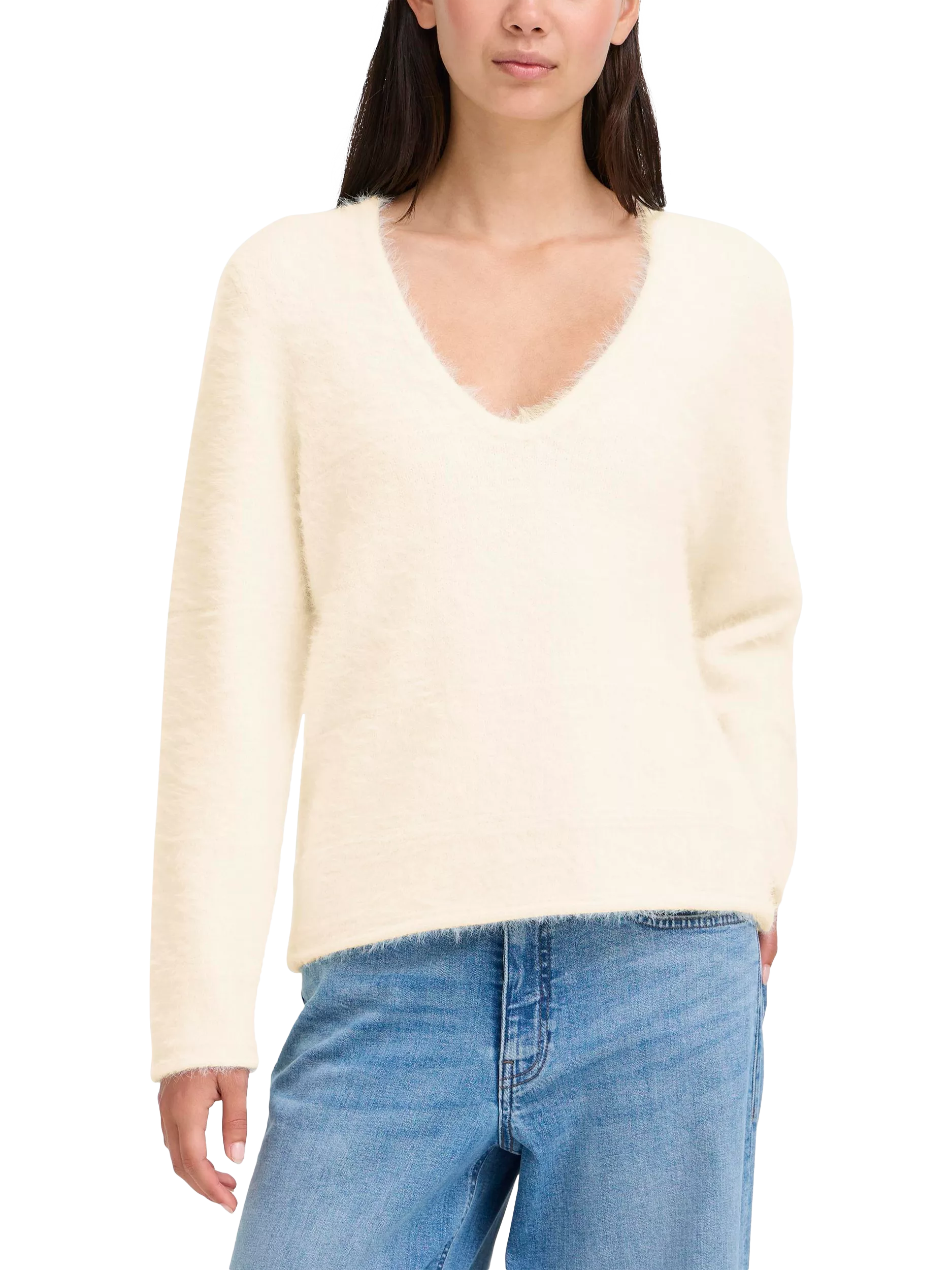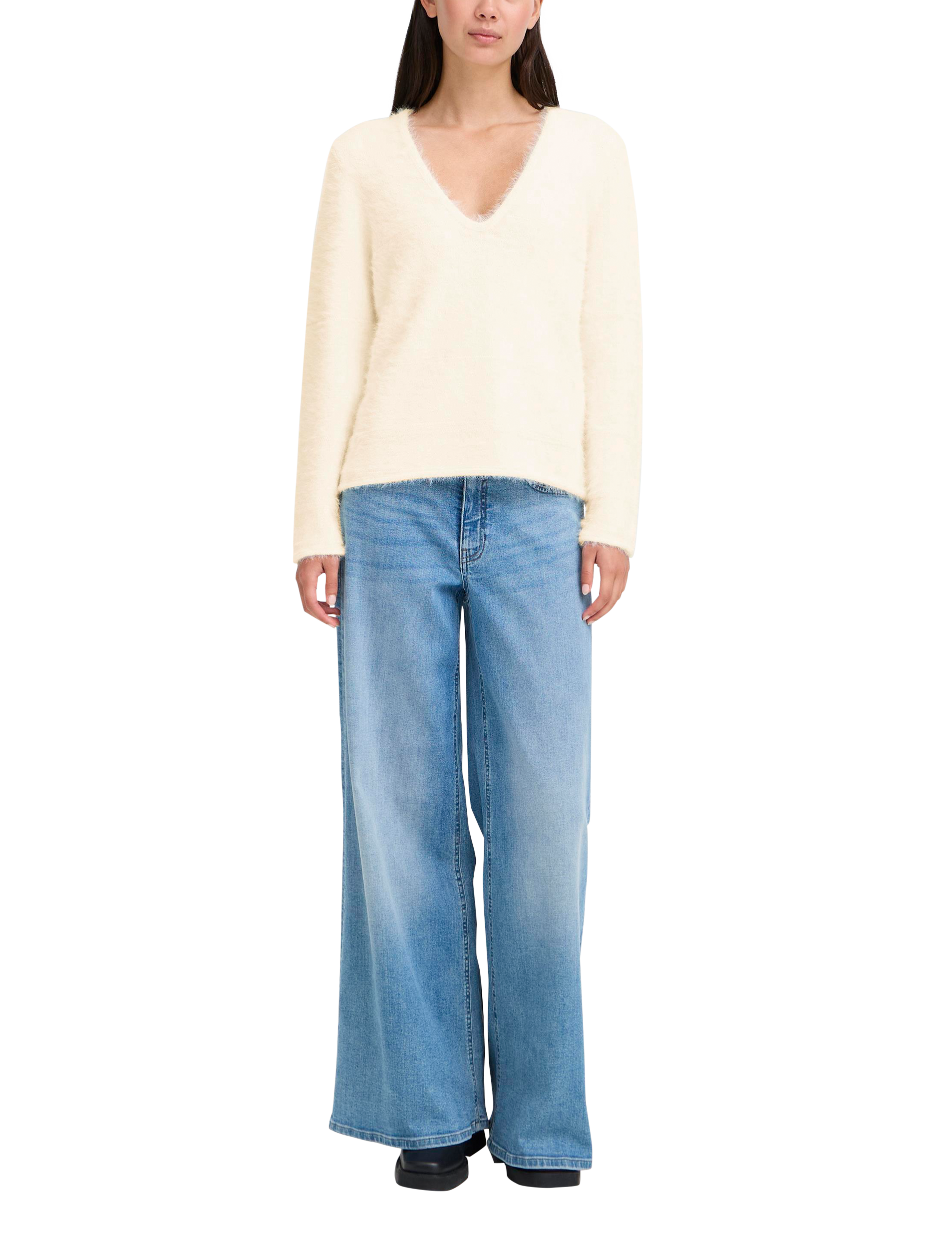 This medium-weight ICHI jumper adds unexpected flair to your wardrobe. Its V-neck and textured design create a fresh silhouette, making it perfect for layering or effortless day-to-night style. Soft, comfortable and ready for wherever your day takes you.