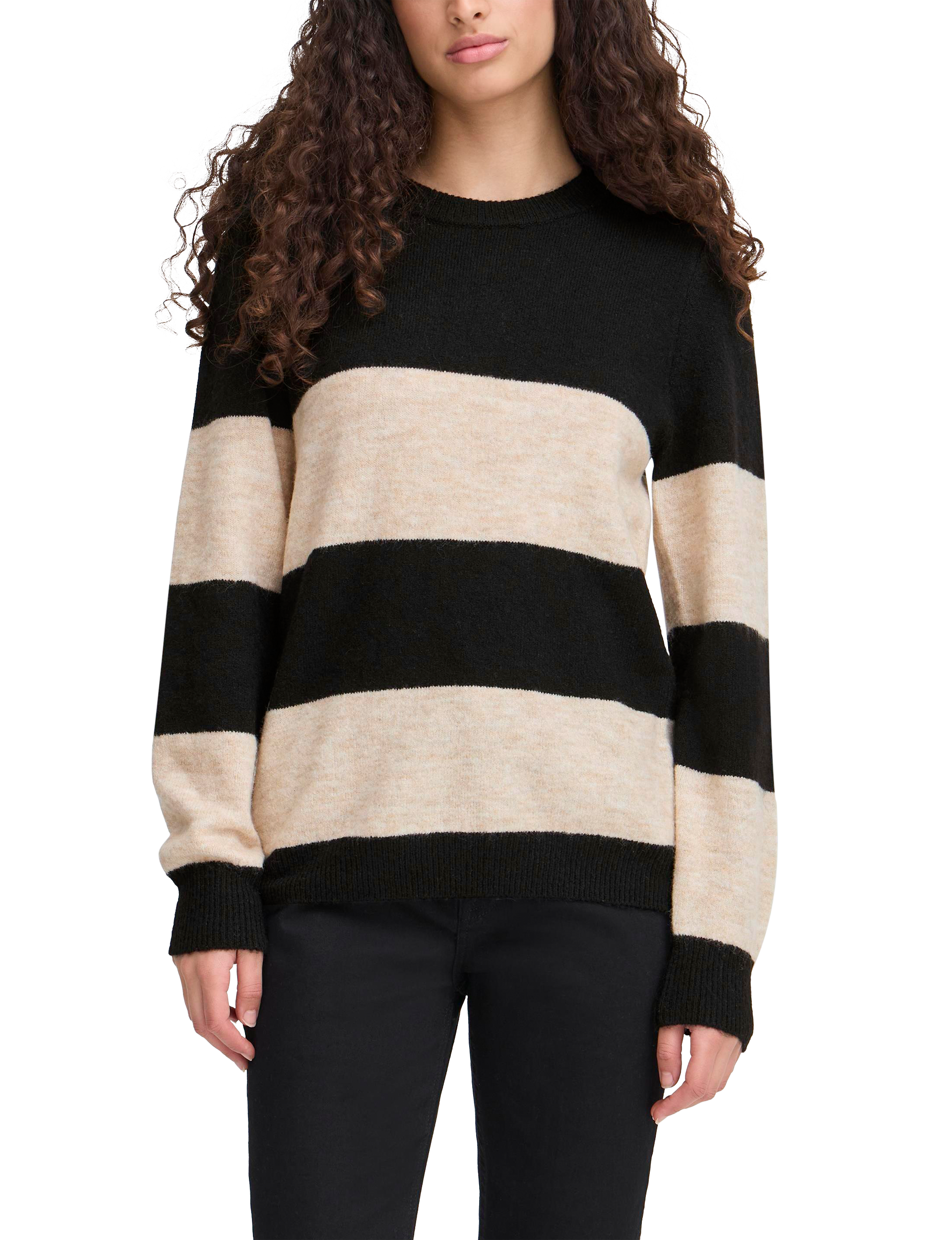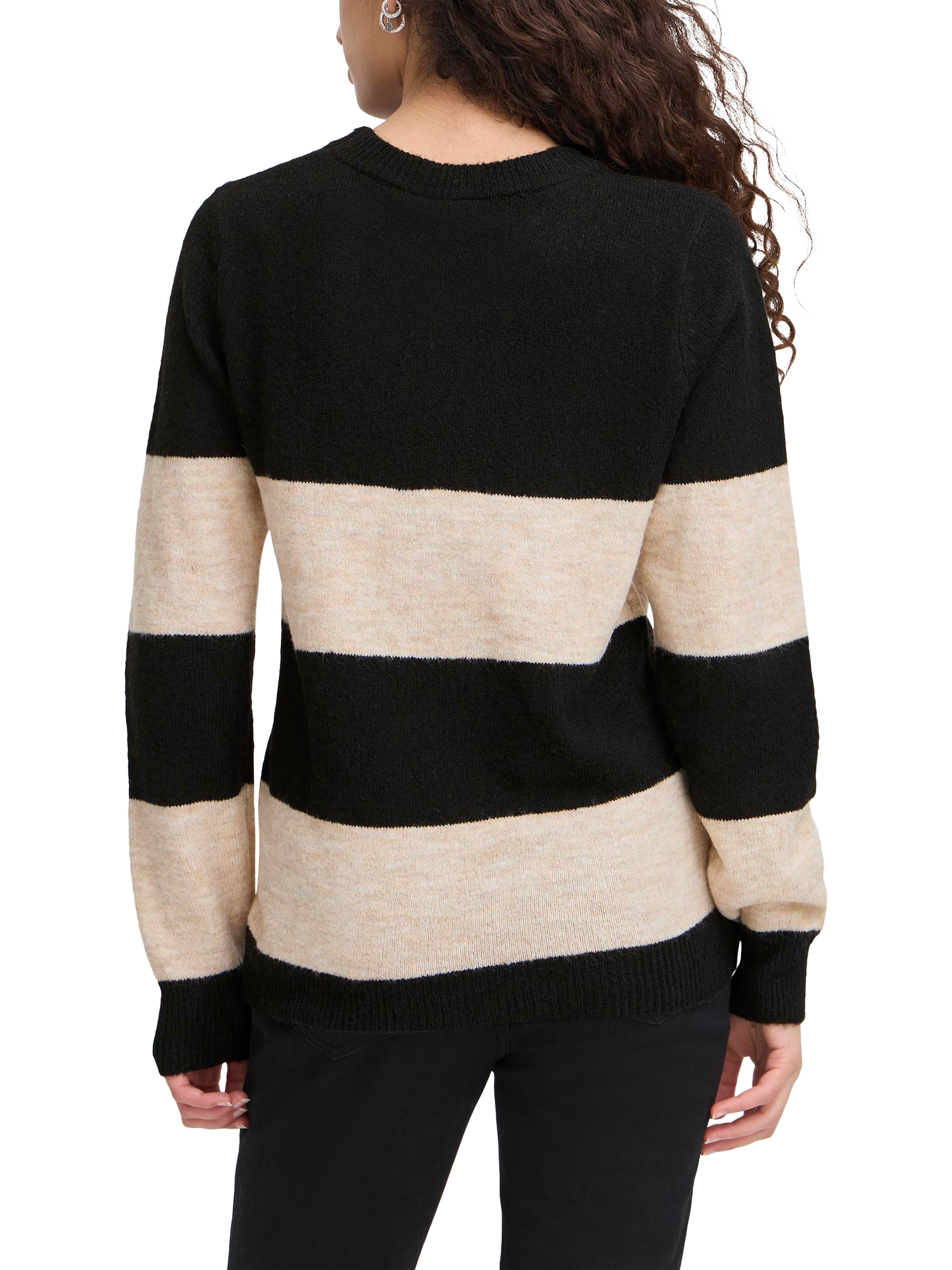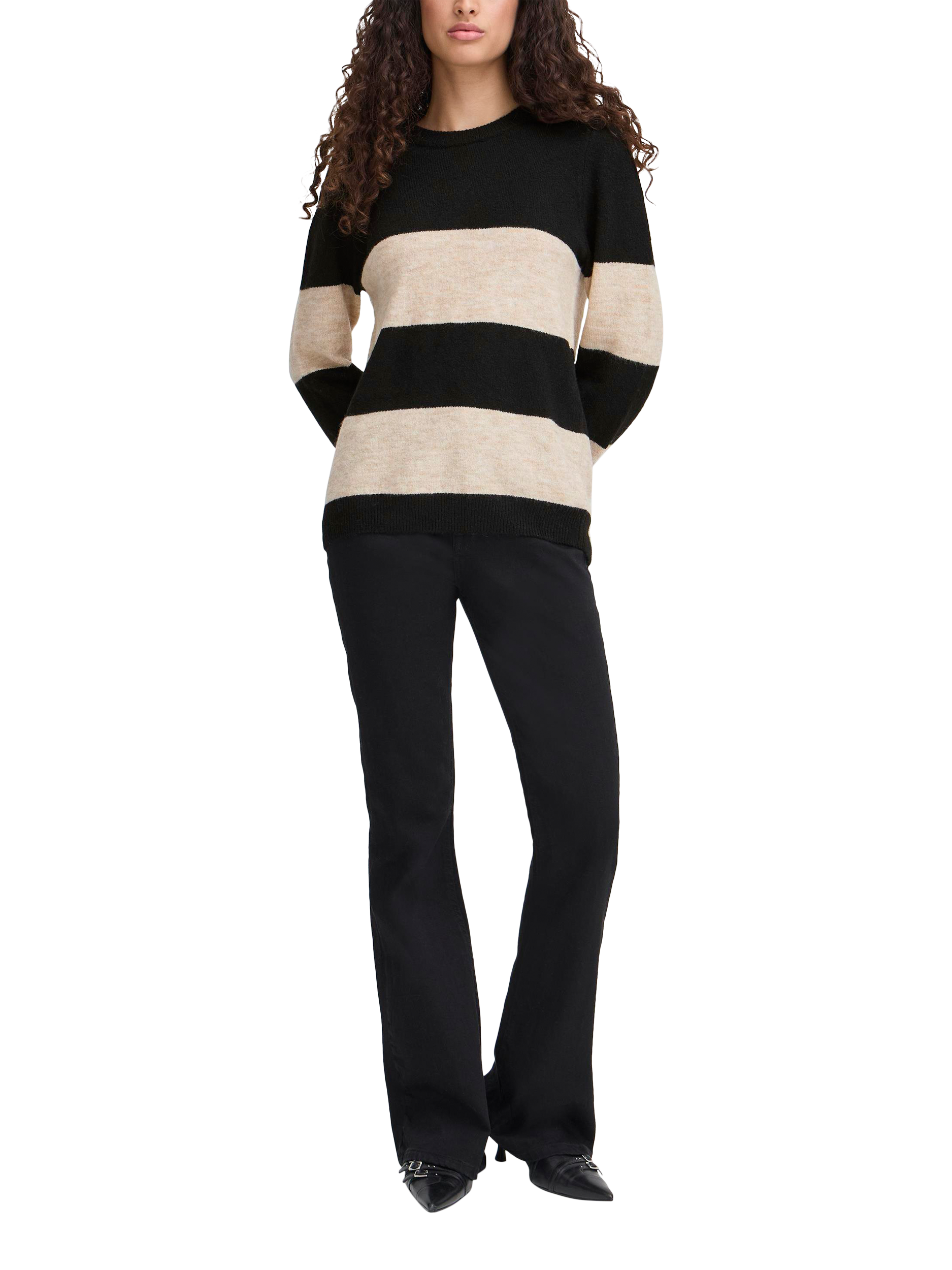 Shaped with a crew neckline and long sleeves, this mid-weight stripe print jumper from ICHI will keep up with you whatever you do in a robust and long-lasting fabric. Ideal for layering or wearing solo.