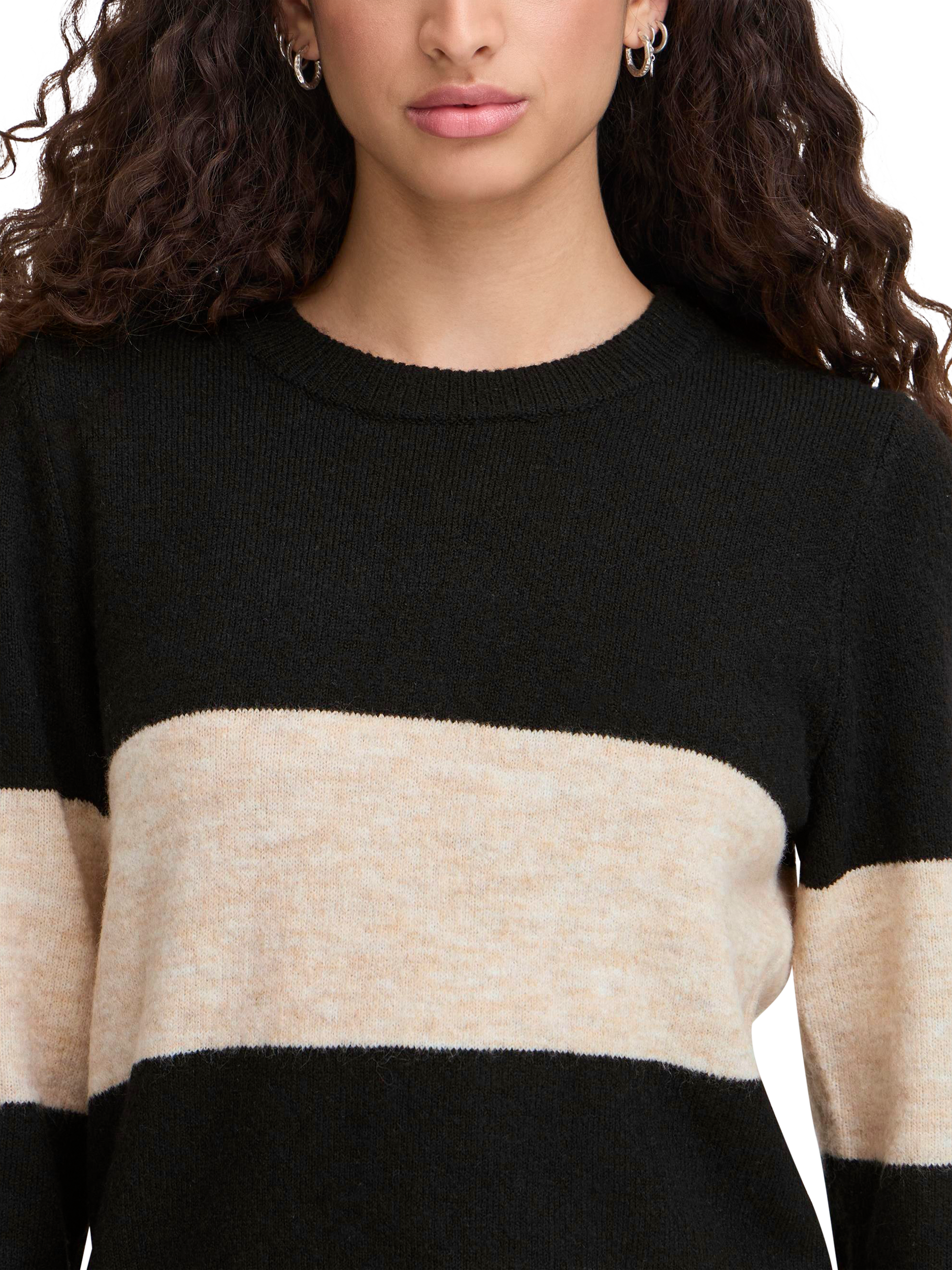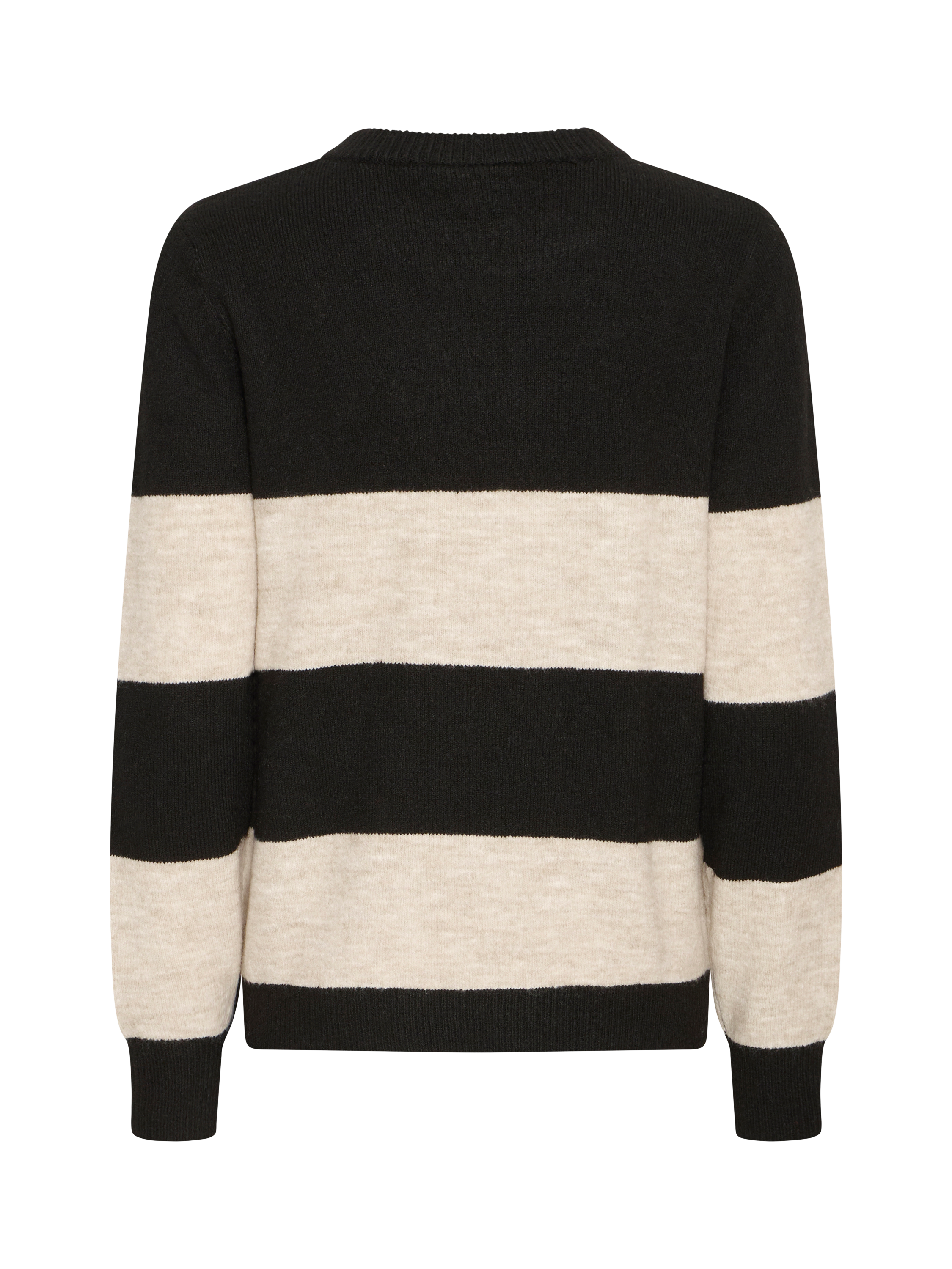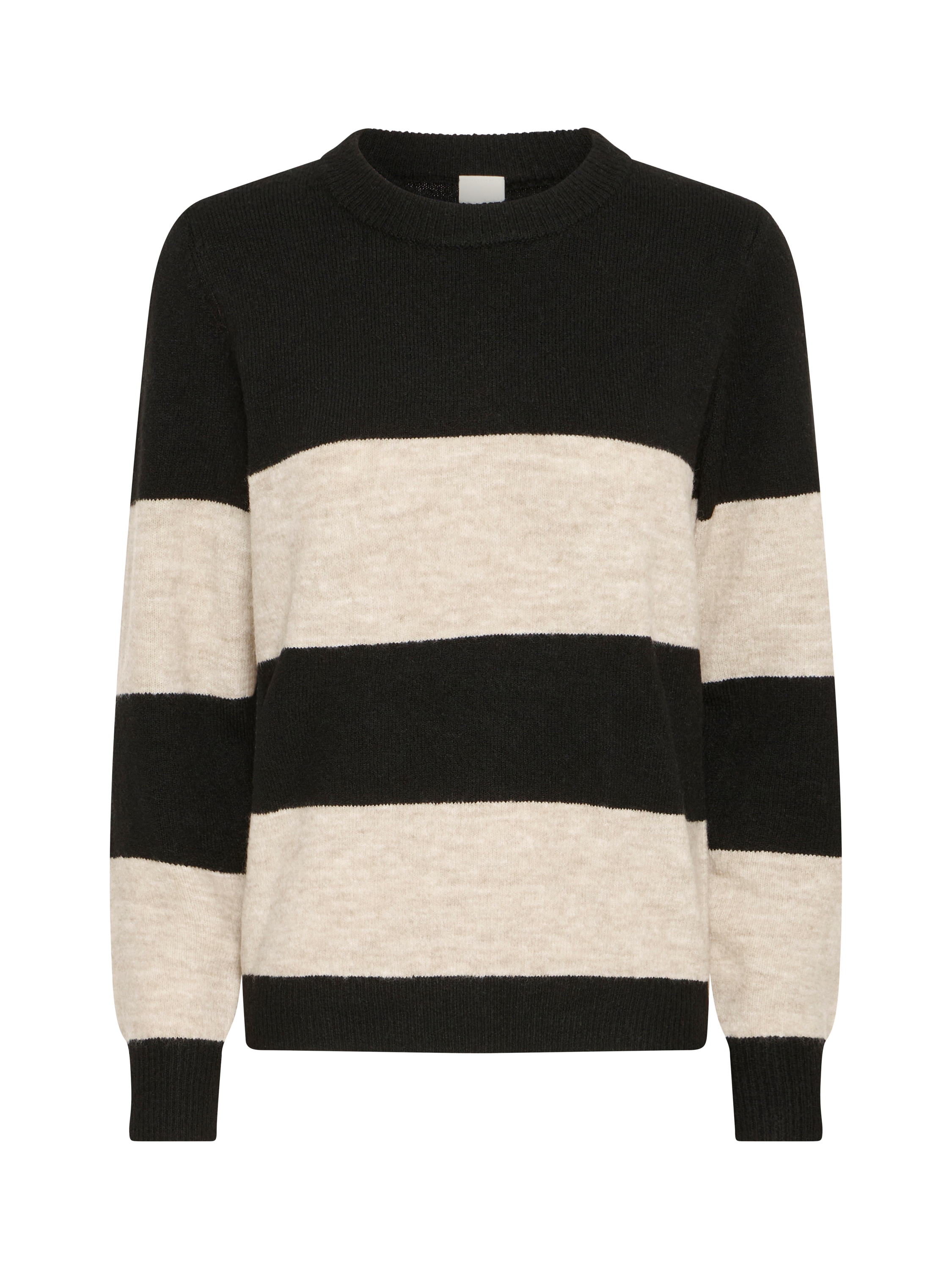 Shaped with a crew neckline and long sleeves, this mid-weight stripe print jumper from ICHI will keep up with you whatever you do in a robust and long-lasting fabric. Ideal for layering or wearing solo.