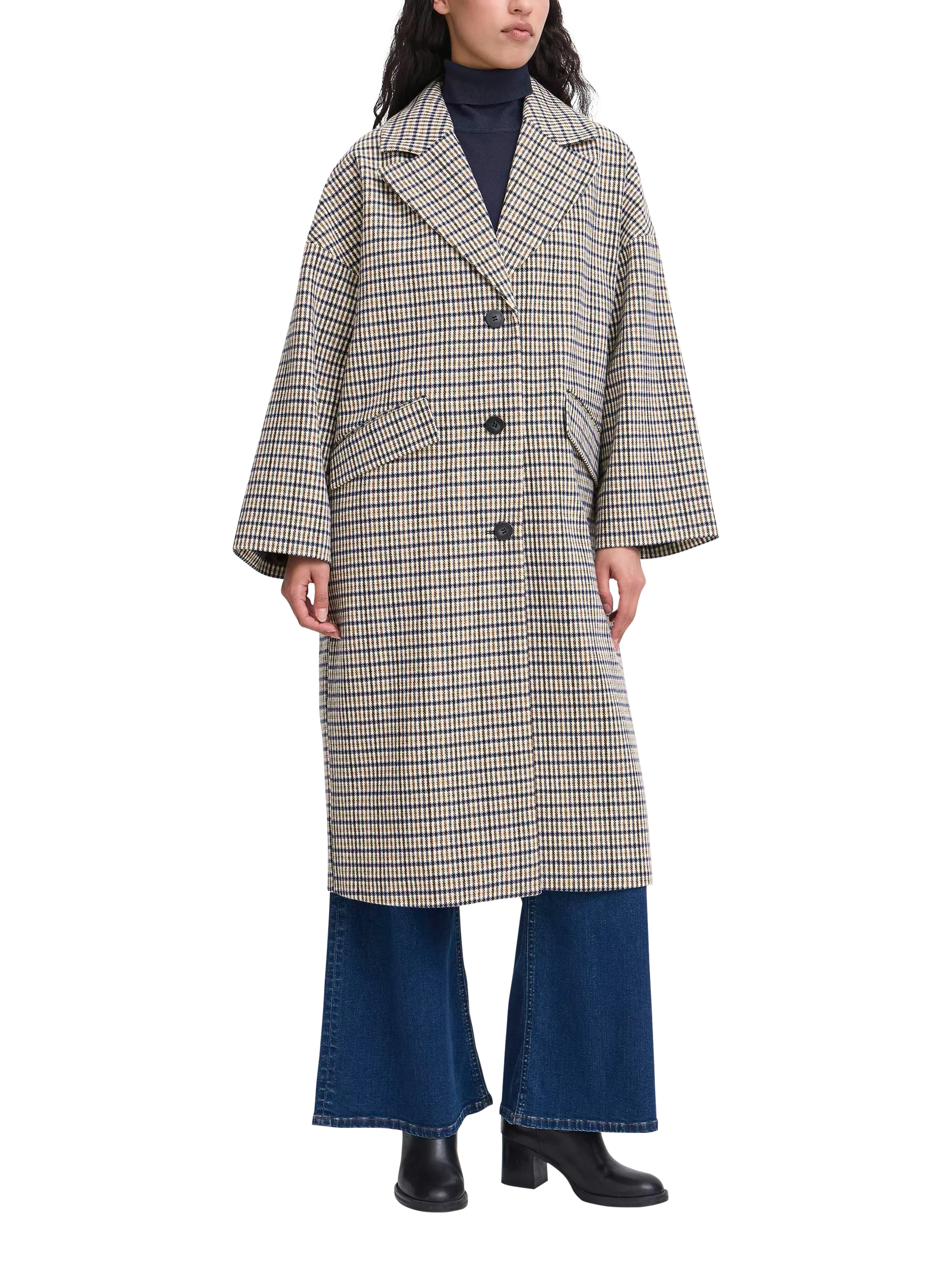 ICHIEmmalu Check Kimono Sleeve Coat, Dark Navy/Multi